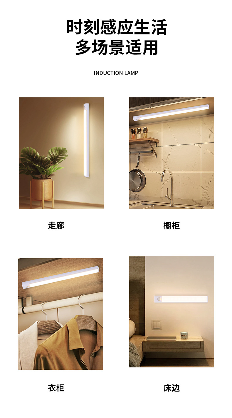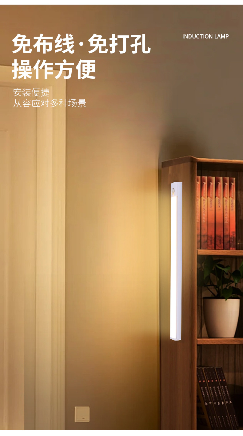 초박형 지능형 인체 유도 크로스 보더 Led 라이트 스트립 자기 접착 자체 접착 테이프 충전식 와인 캐비닛 옷장 라이트 스트립스토어 가기