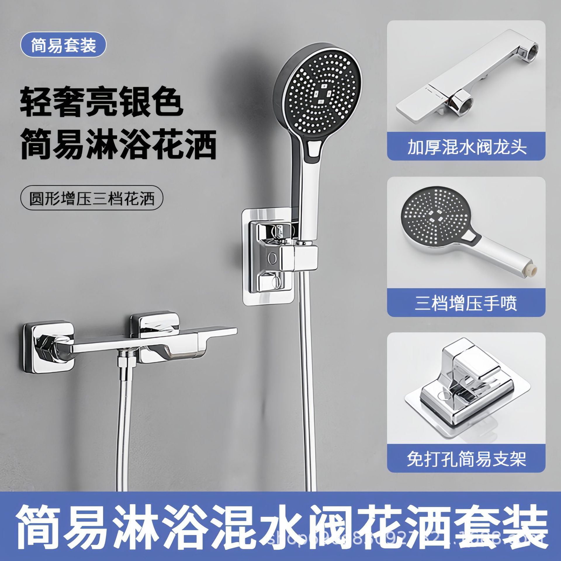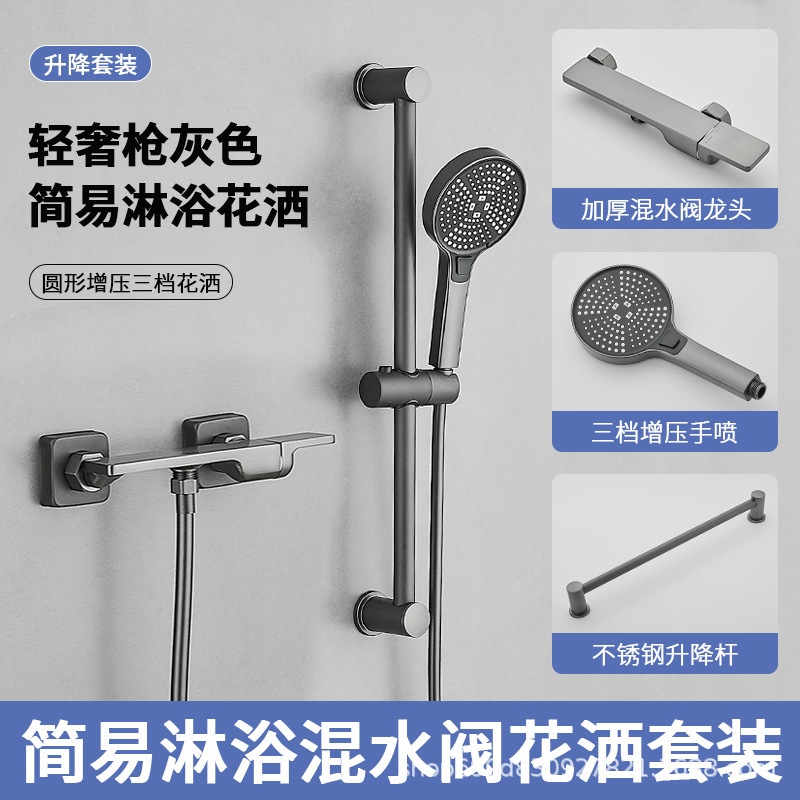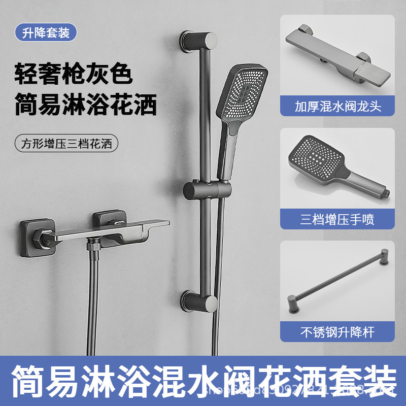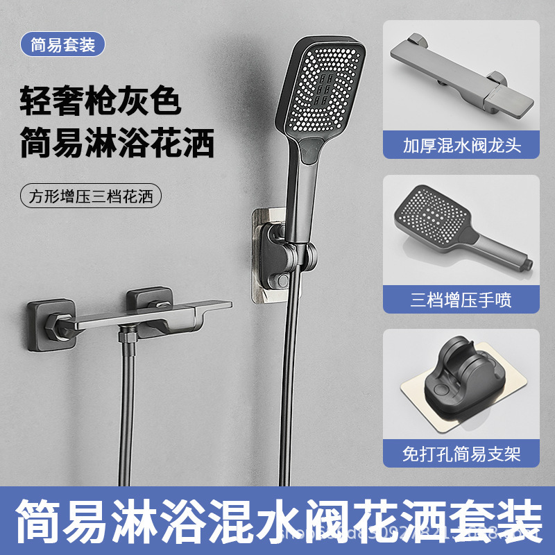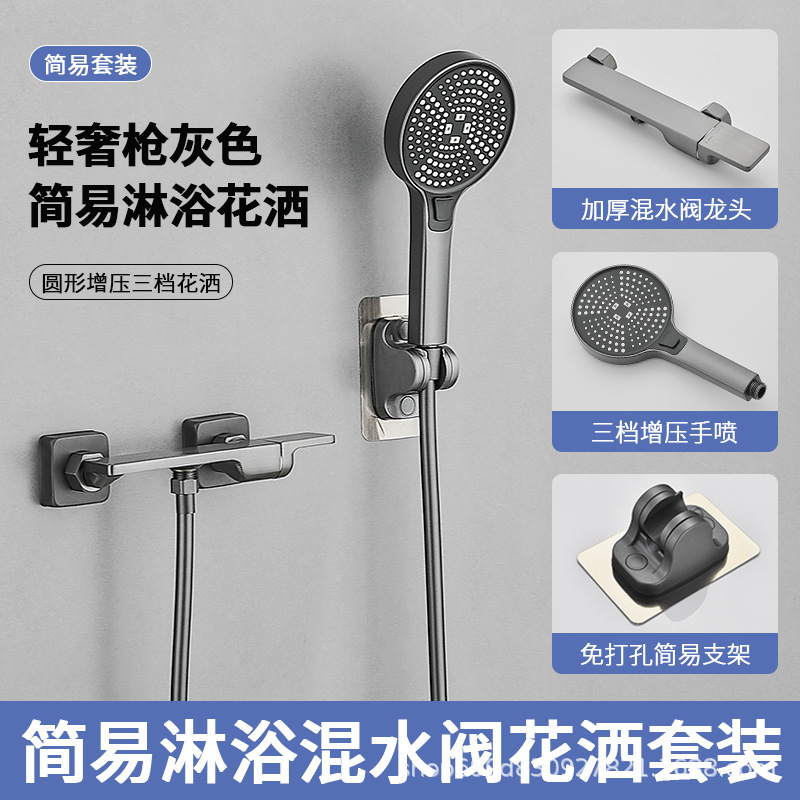 Hangji 구리 샤워 헤드 세트 간단한 혼합 밸브 수도꼭지 뜨거운 물과 차가운 목욕 욕실 레인 부스터 욕실 작업