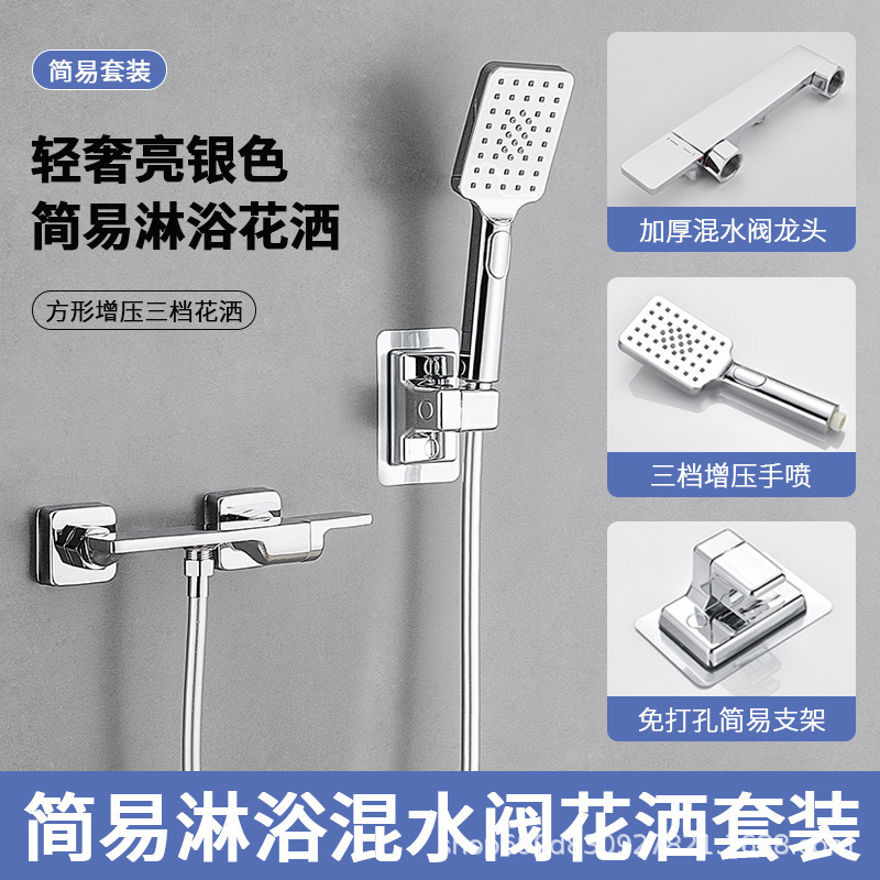 Hangji 구리 샤워 헤드 세트 간단한 혼합 밸브 수도꼭지 뜨거운 물과 차가운 목욕 욕실 레인 부스터 욕실 작업스토어 가기