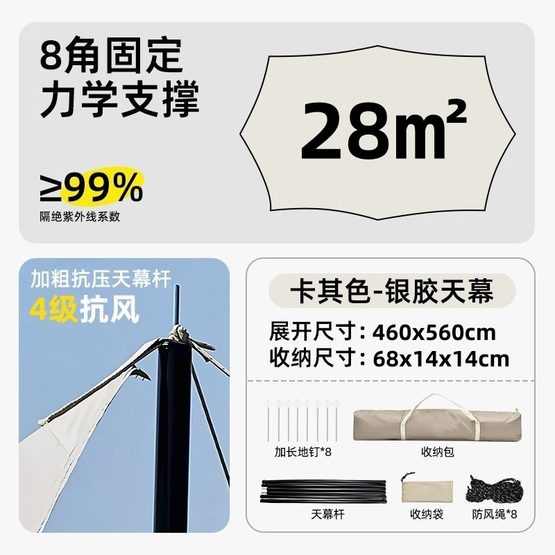 비닐 캐노피 텐트 야외 방수 및 자외선 차단 캠핑 팔각형 나비 차양 도매 공장 인터넷 연예인 크로스보더