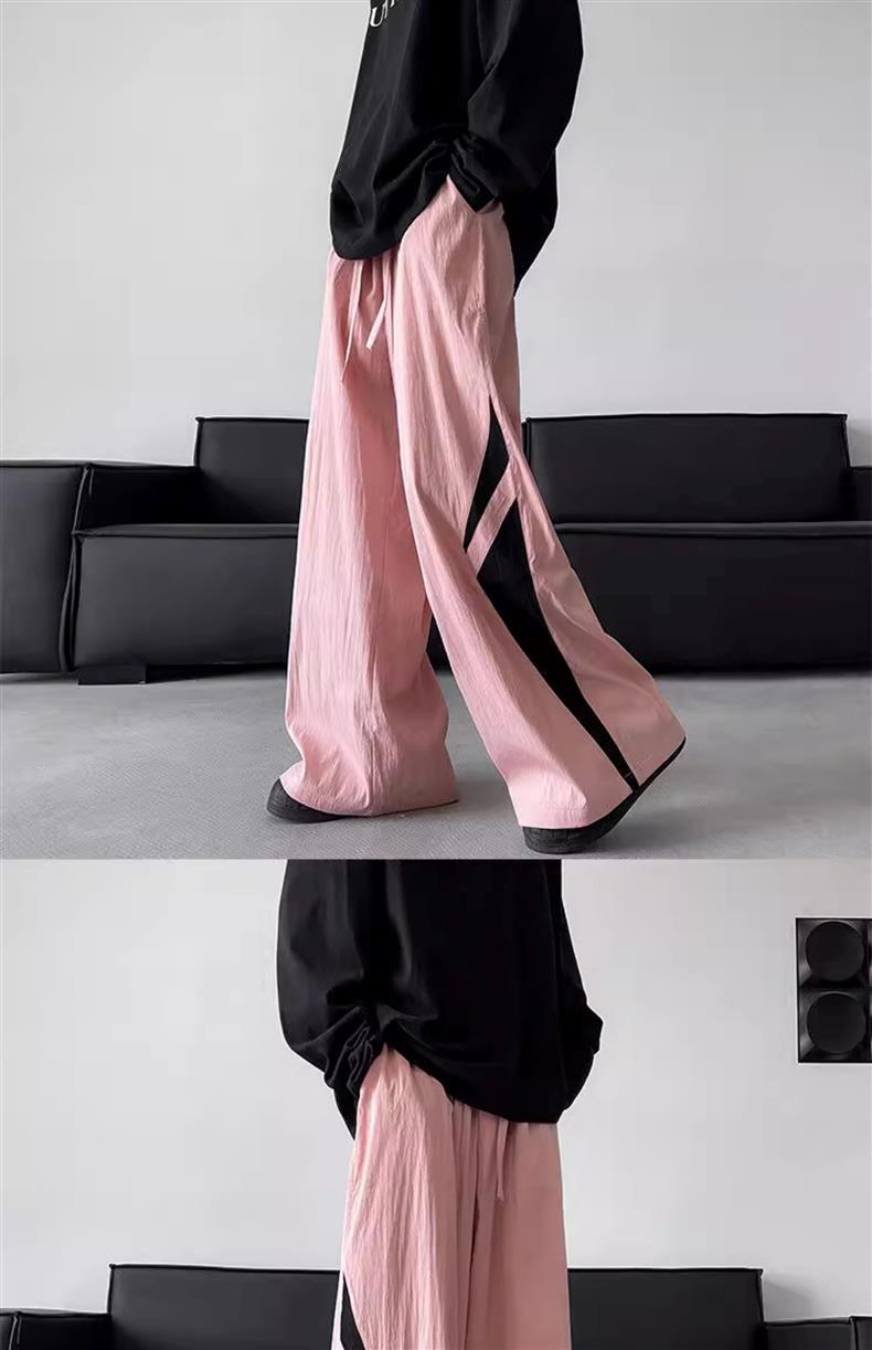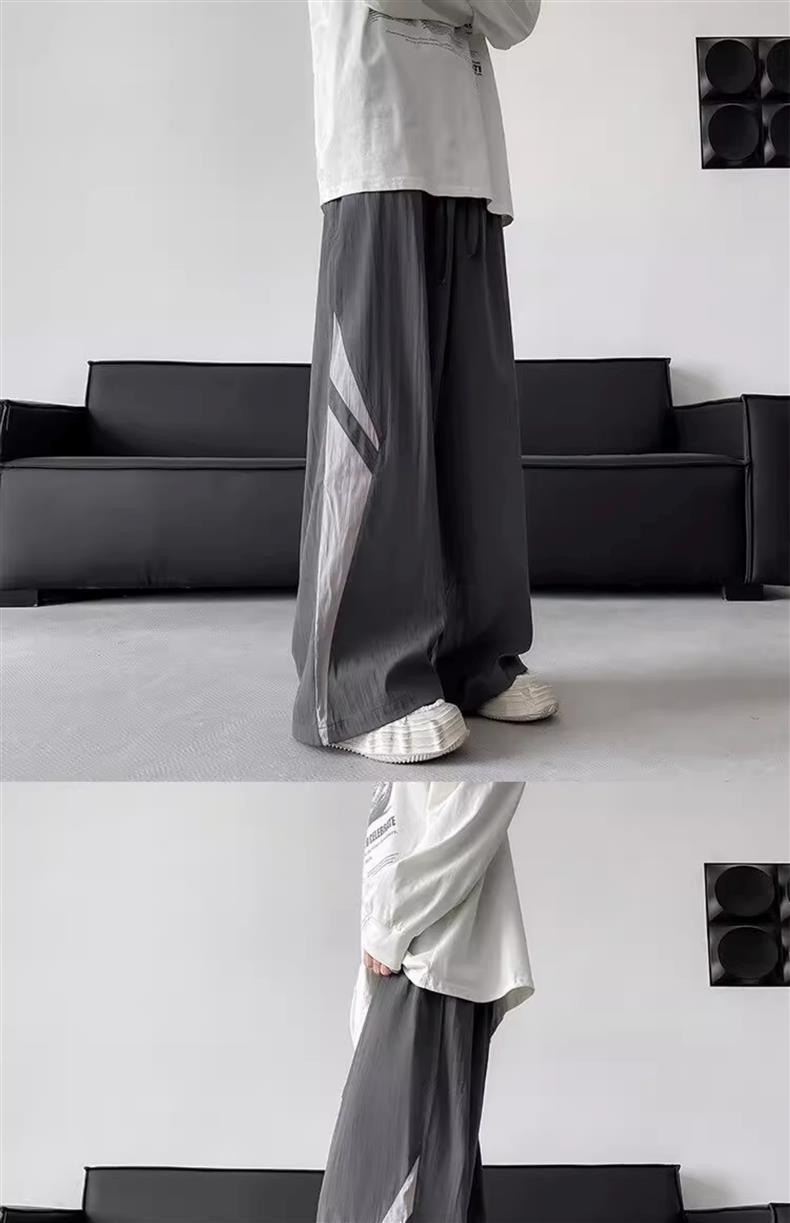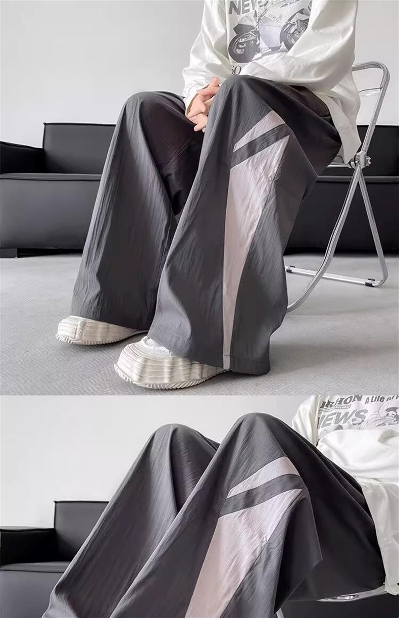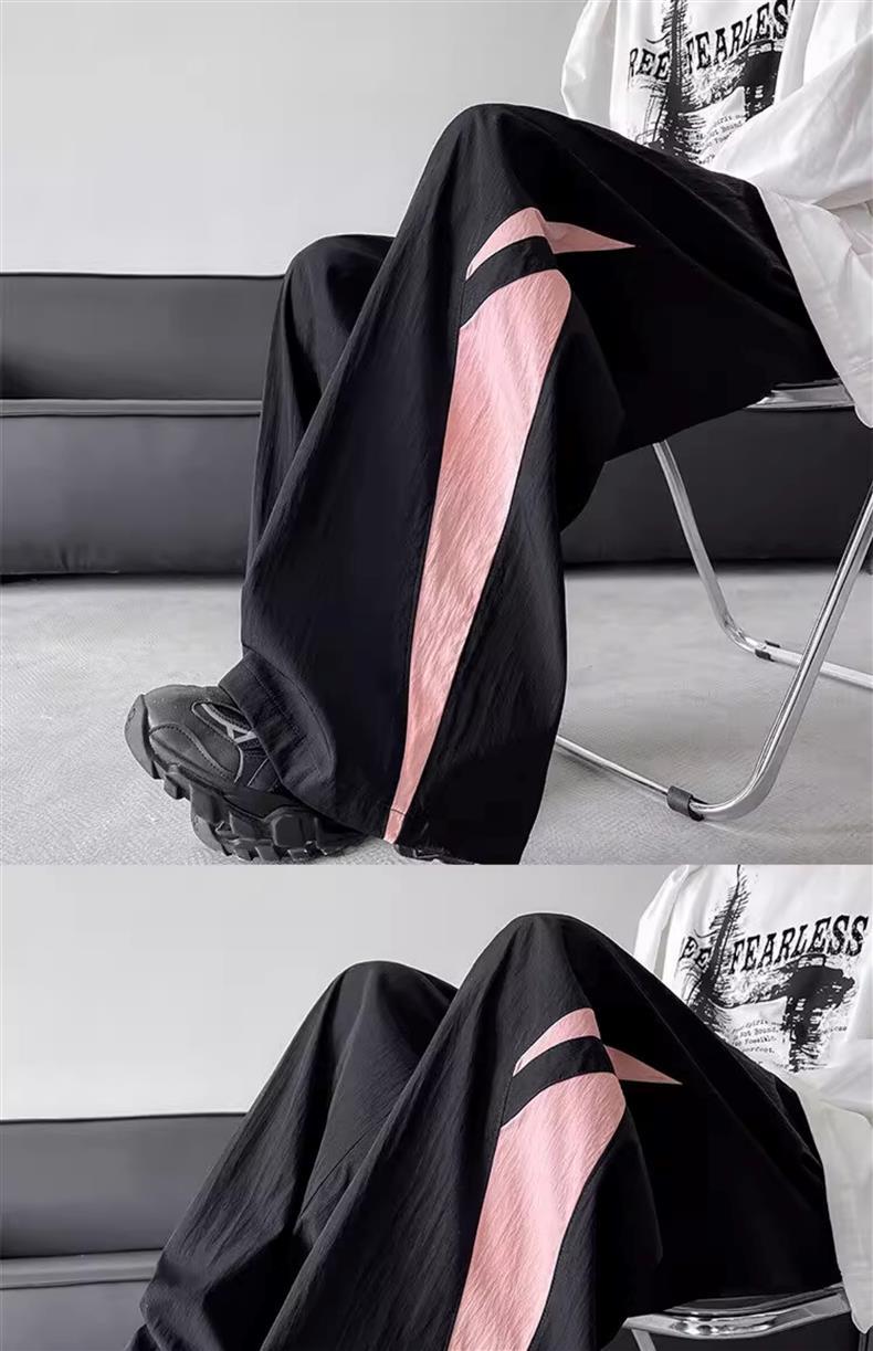 남아용 여름 얇은 속건성 낙하산 바지, 트렌디한 브랜드 루즈한 대비색 스플라이싱 청소년 스트레이트 와이드 레그 캐주얼 바지스토어 가기