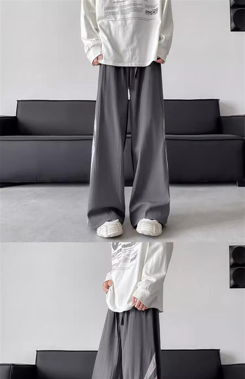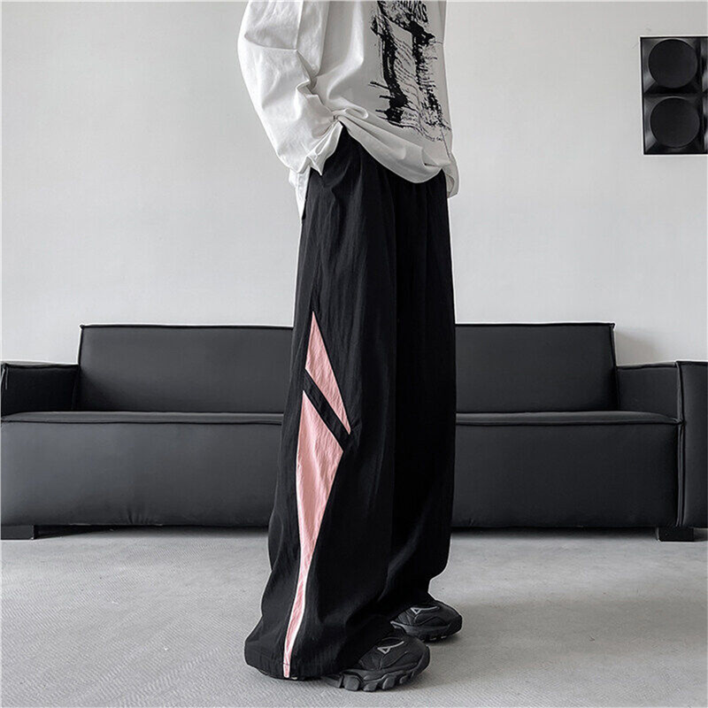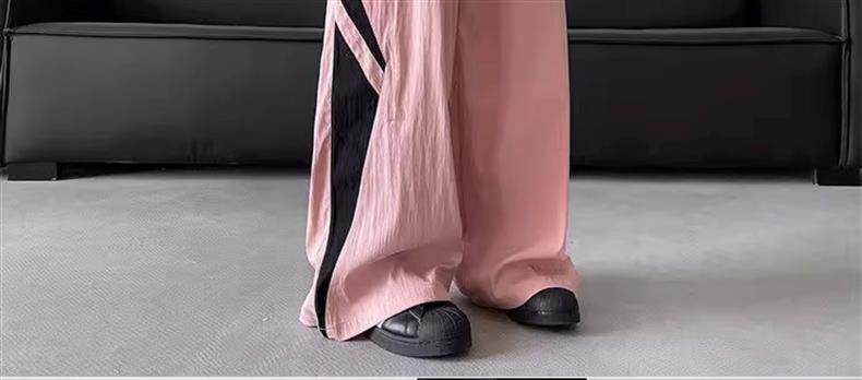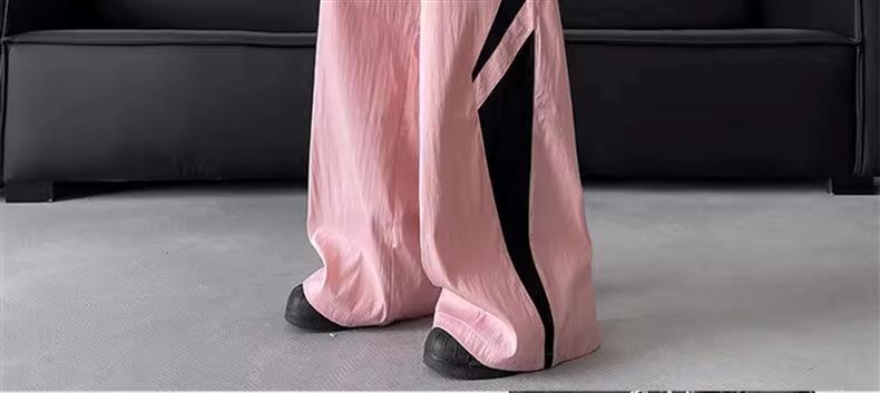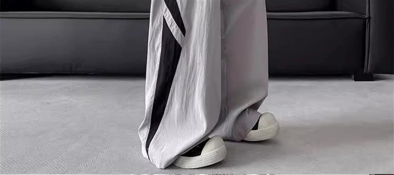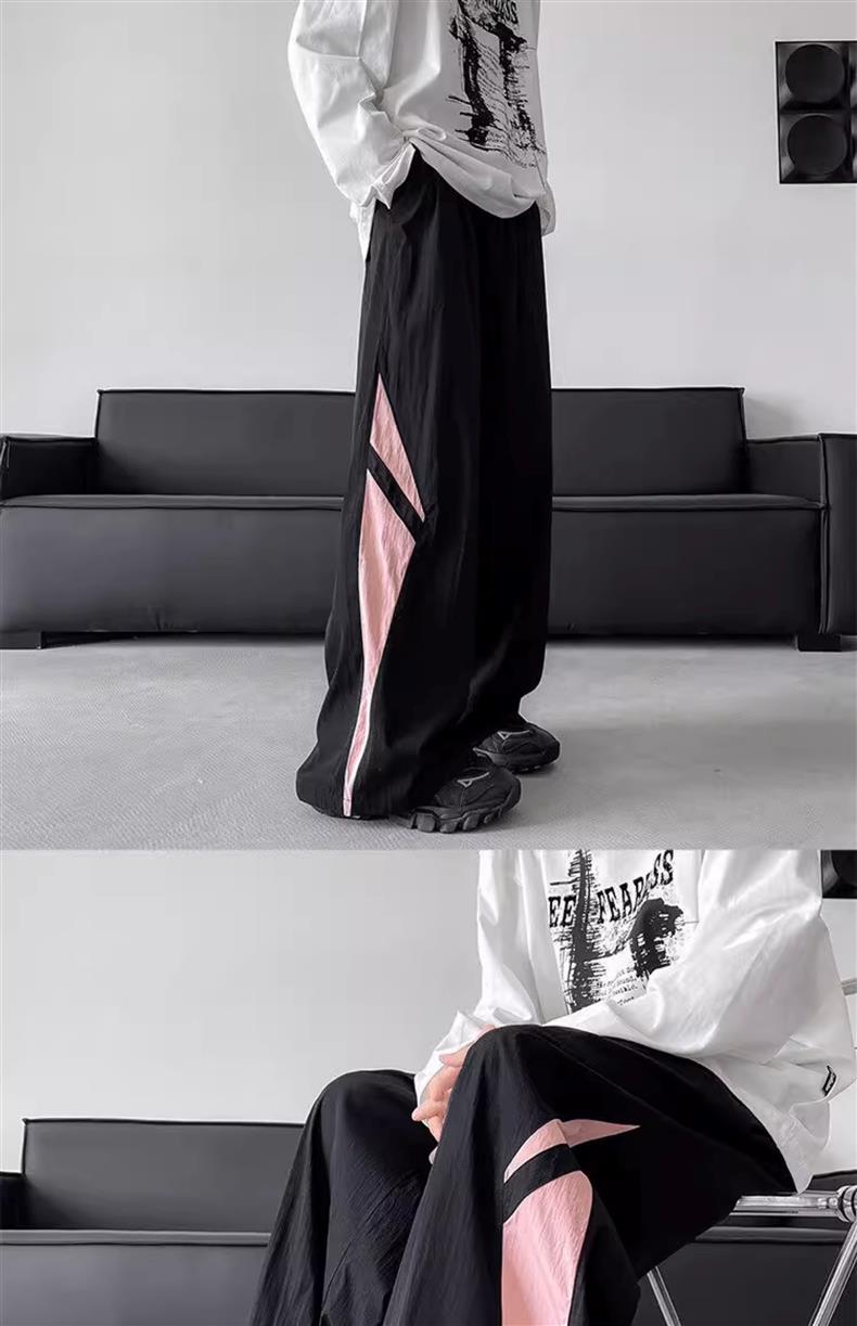 남아용 여름 얇은 속건성 낙하산 바지, 트렌디한 브랜드 루즈한 대비색 스플라이싱 청소년 스트레이트 와이드 레그 캐주얼 바지스토어 가기