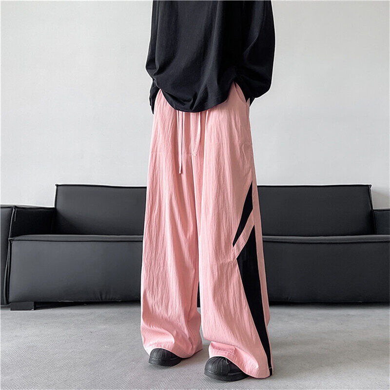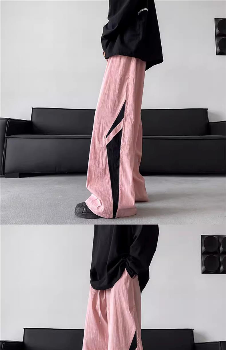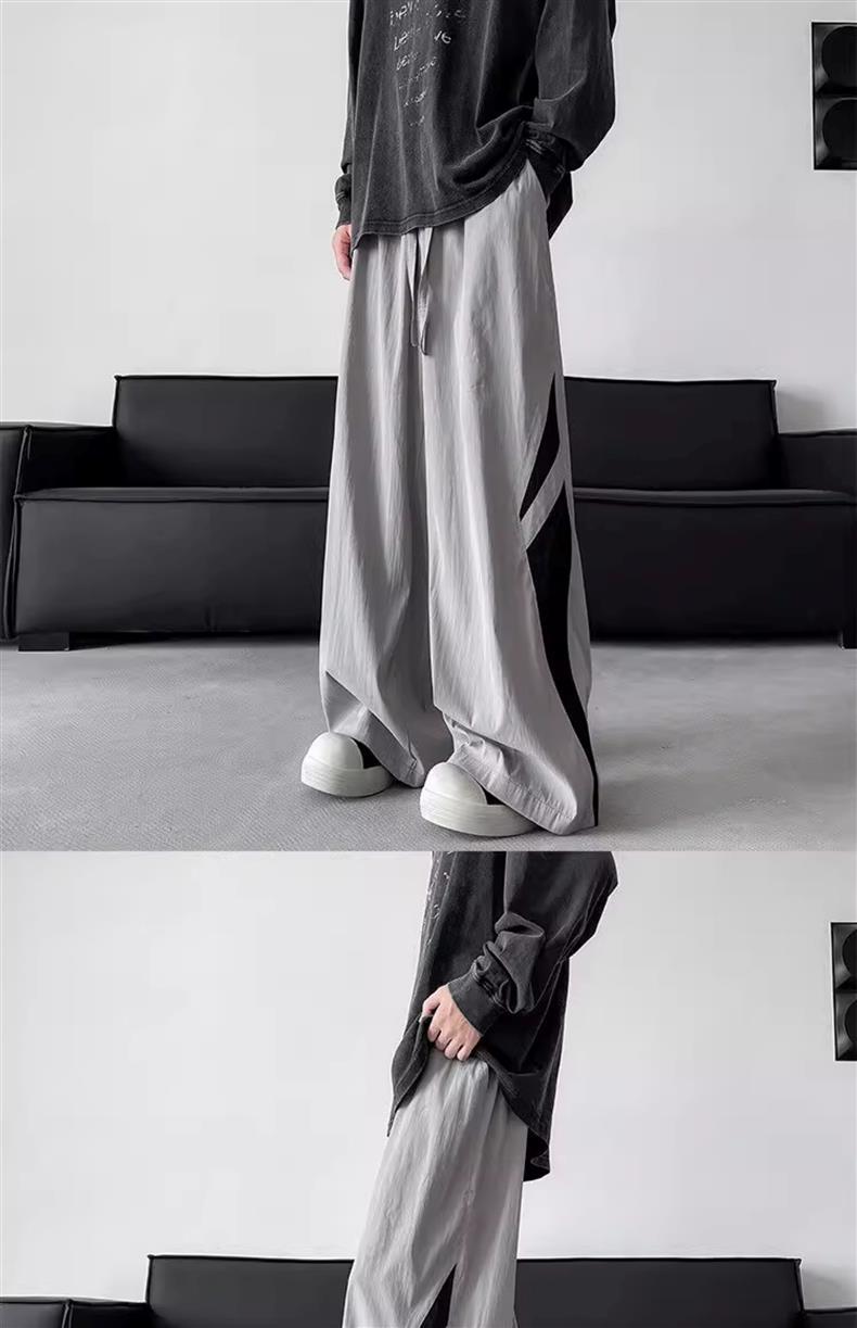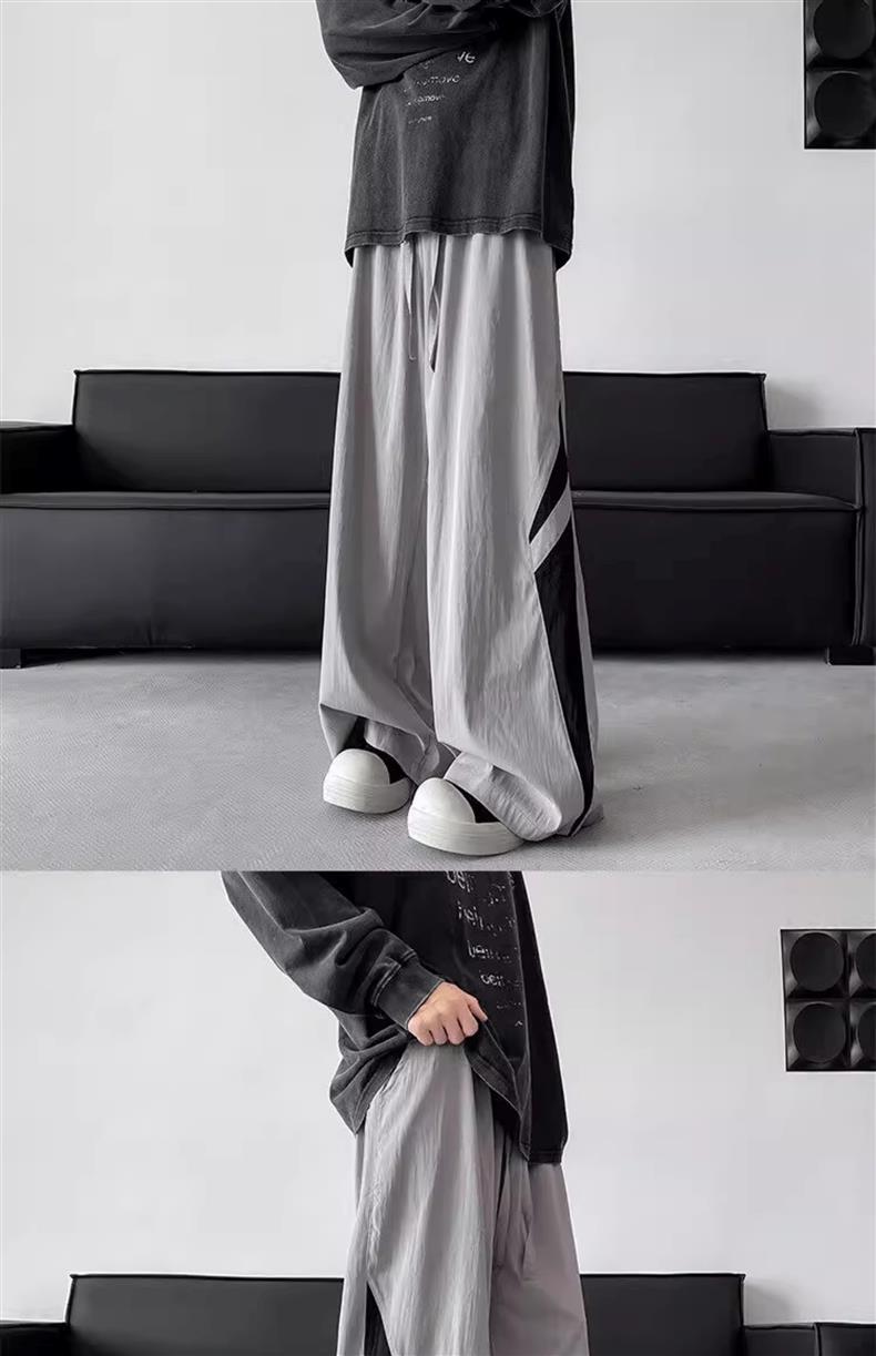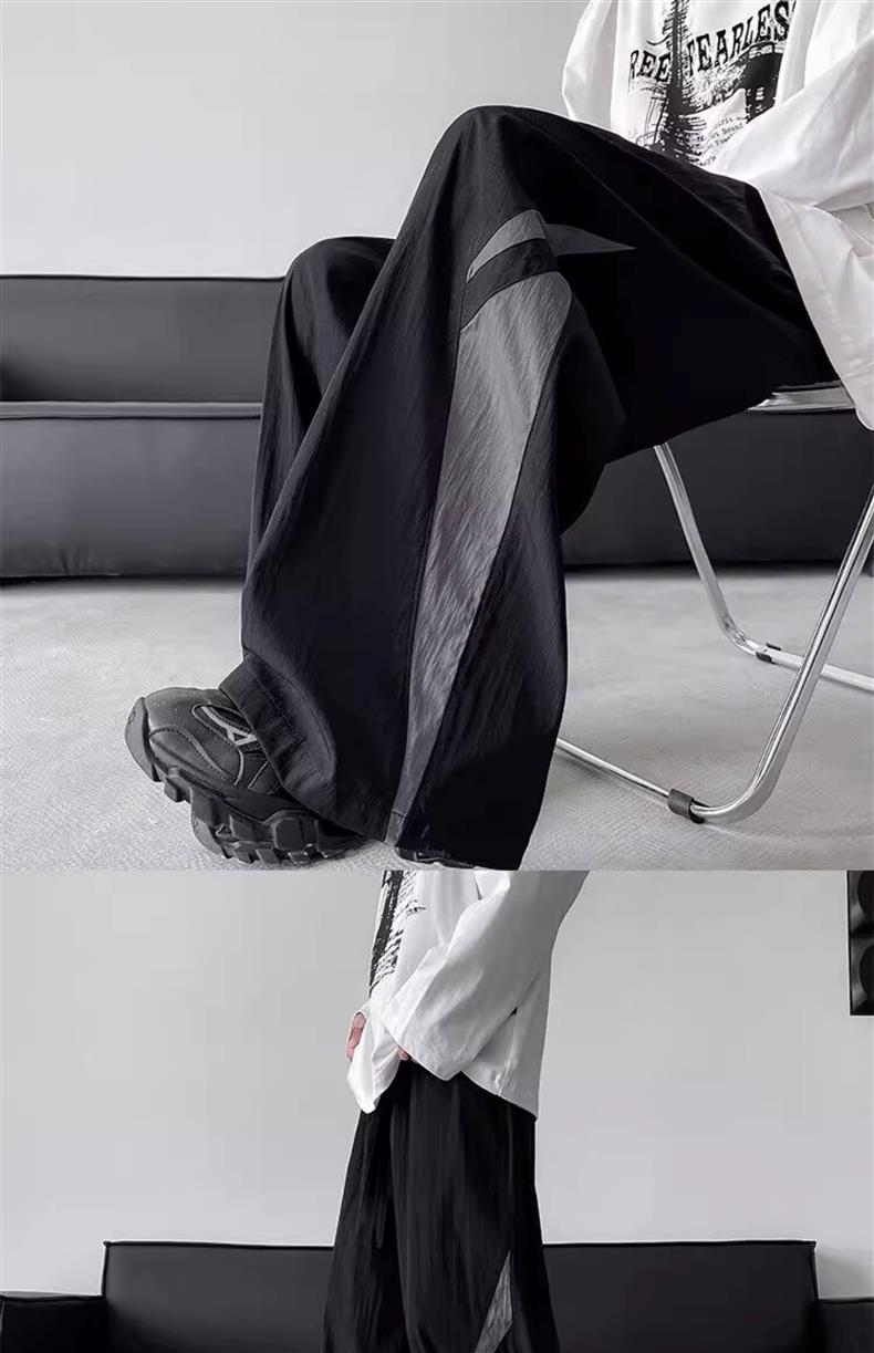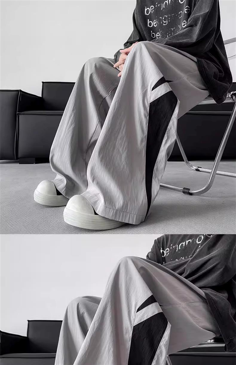 남아용 여름 얇은 속건성 낙하산 바지, 트렌디한 브랜드 루즈한 대비색 스플라이싱 청소년 스트레이트 와이드 레그 캐주얼 바지