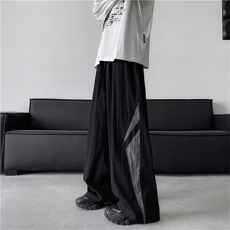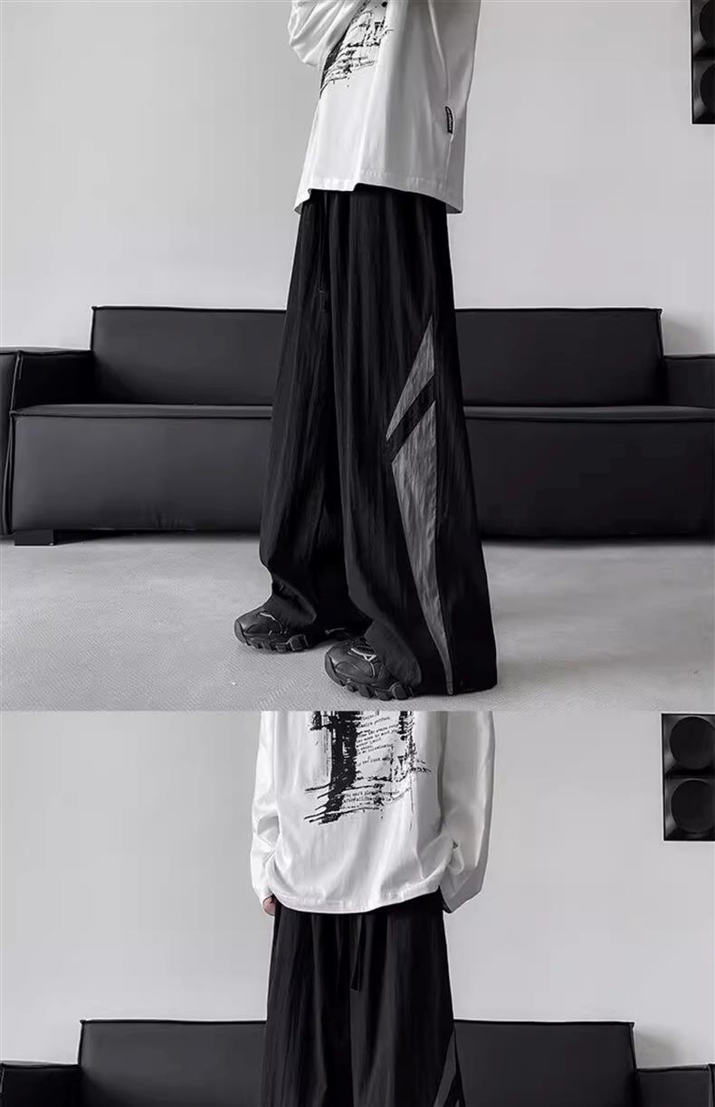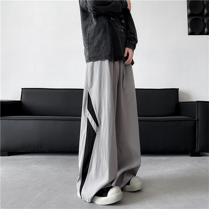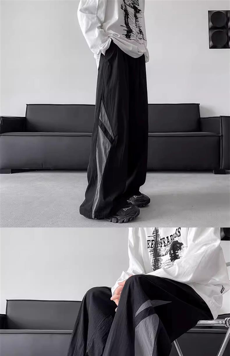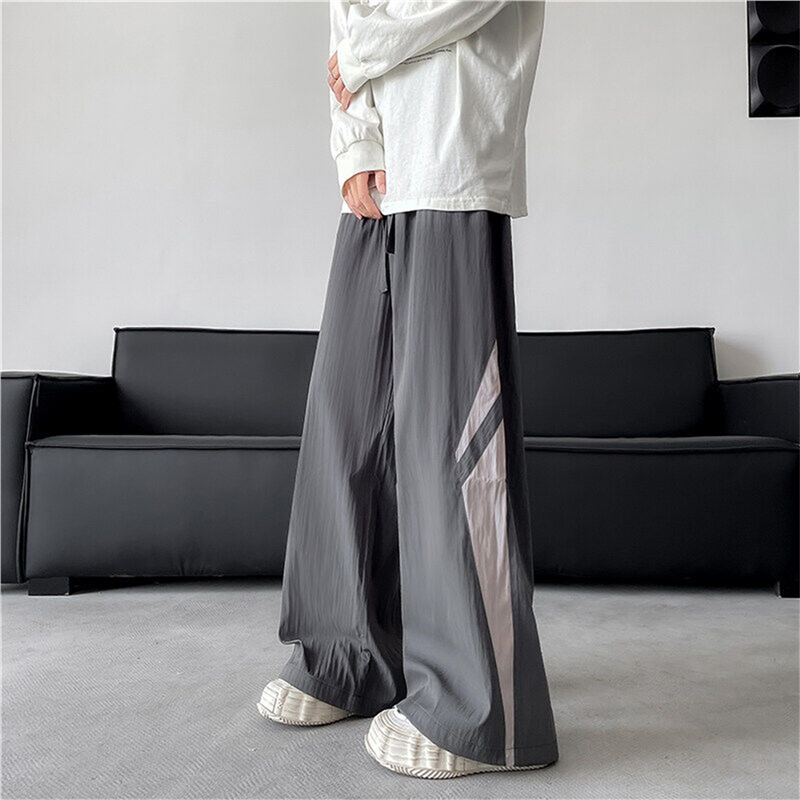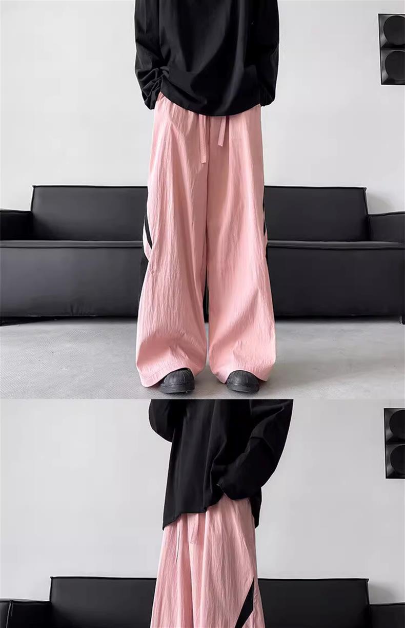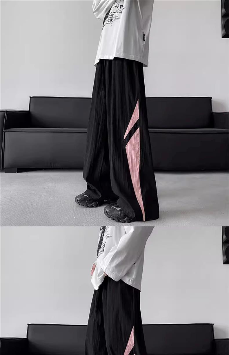남아용 여름 얇은 속건성 낙하산 바지, 트렌디한 브랜드 루즈한 대비색 스플라이싱 청소년 스트레이트 와이드 레그 캐주얼 바지