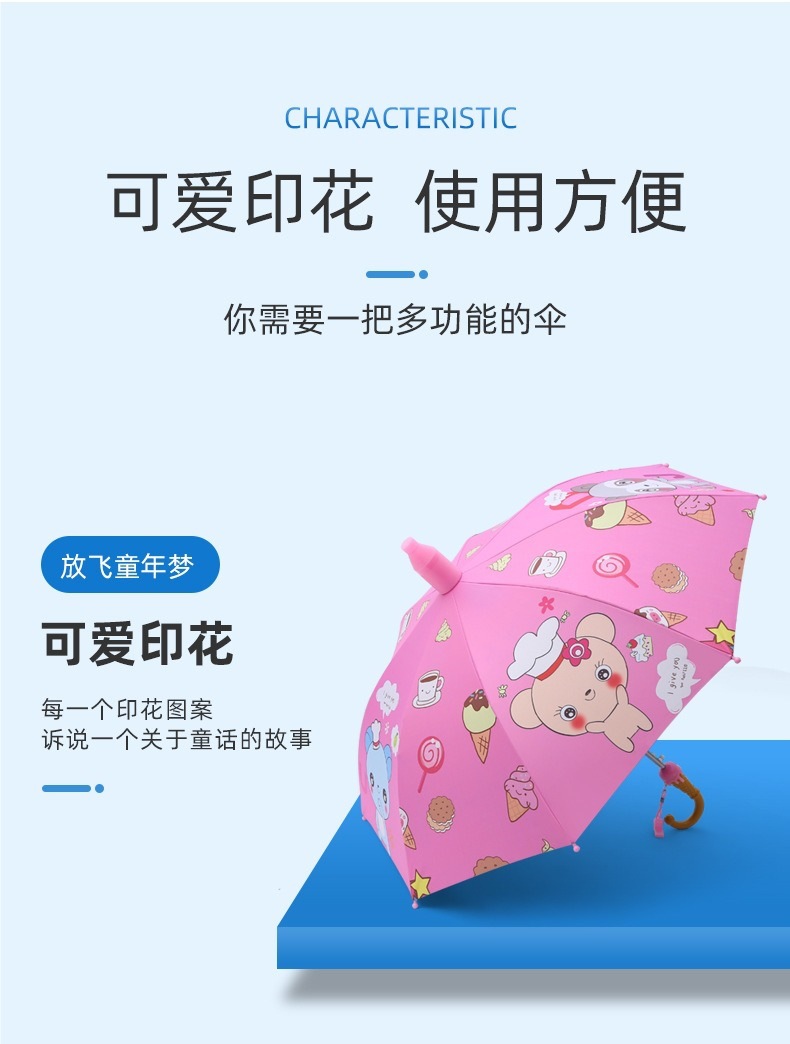Nzetao Ao Bing 어린이 우산 학교에가는 학생 소년과 소녀 태양 보호 긴 손잡이 태양 우산 비 또는 샤인 파라솔