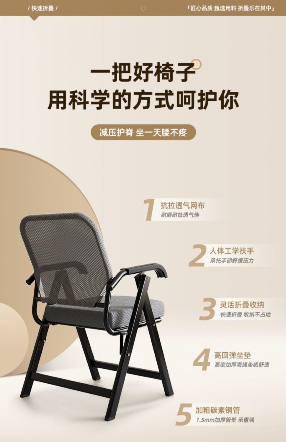 접이식 의자, 가정용 레저 등받이 의자, 편안하고 통기성이 뛰어난 사무실 의자, 회의실 허리 보호대, 컴퓨터 의자스토어 가기