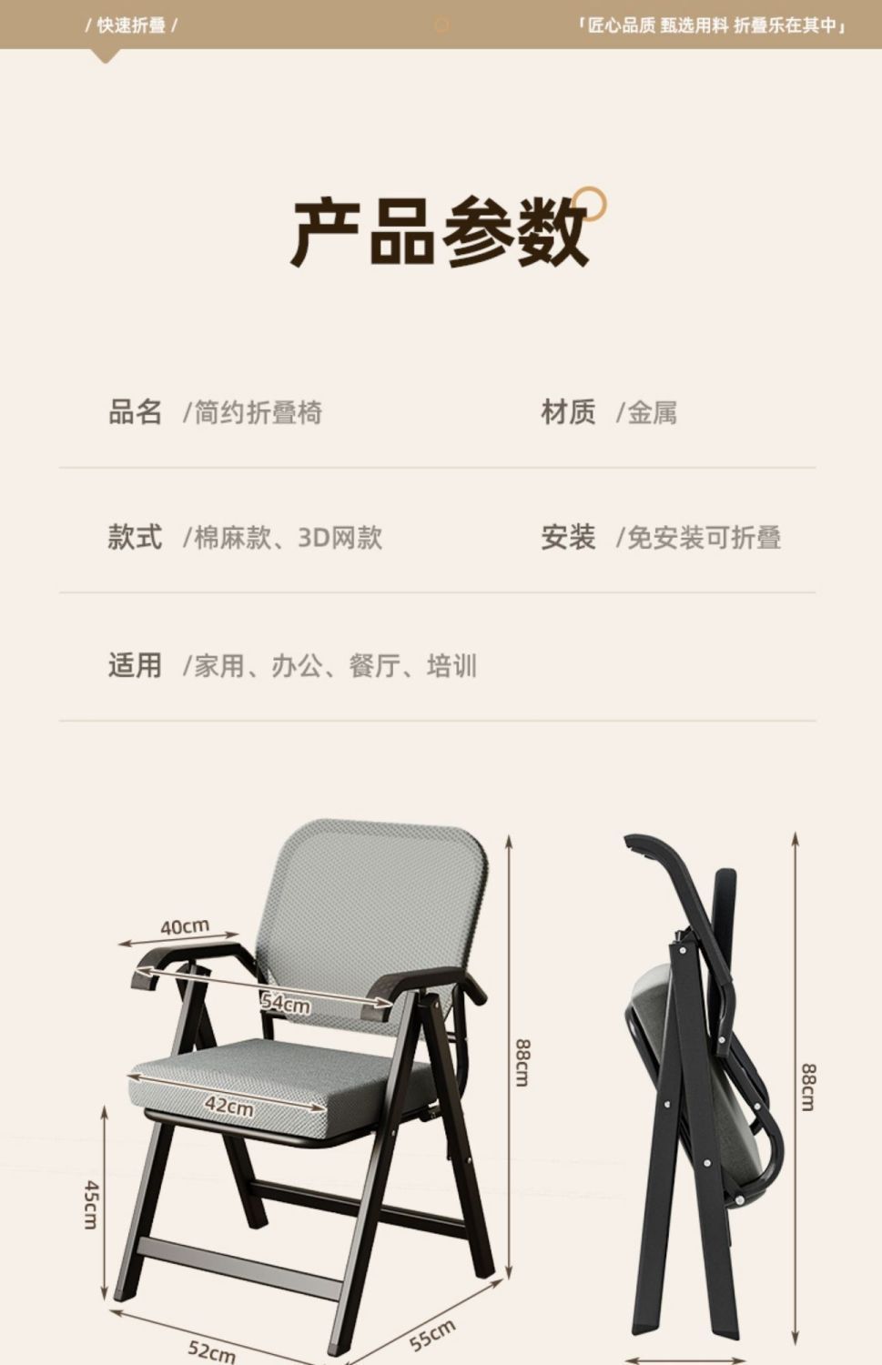 접이식 의자, 가정용 레저 등받이 의자, 편안하고 통기성이 뛰어난 사무실 의자, 회의실 허리 보호대, 컴퓨터 의자
