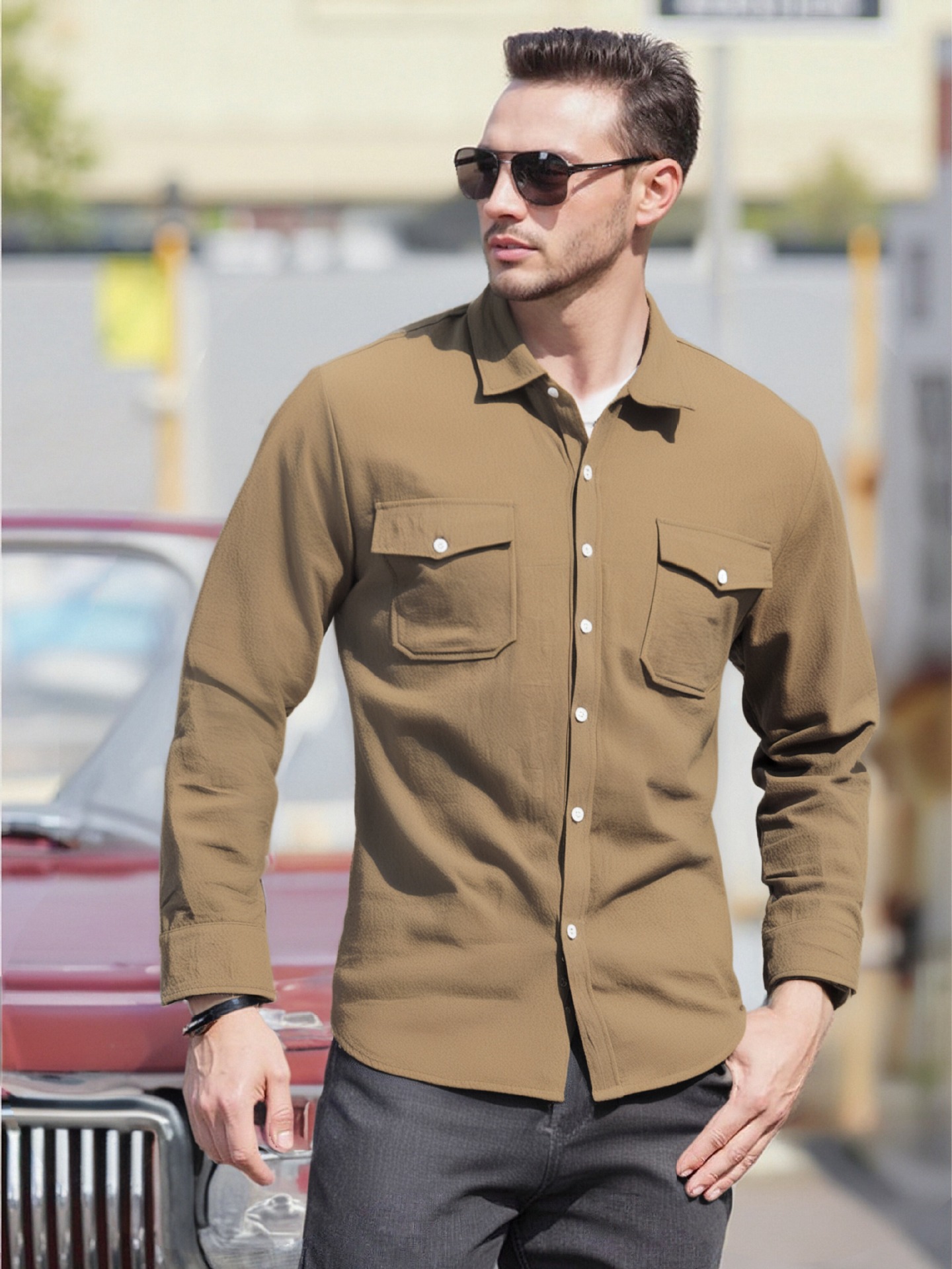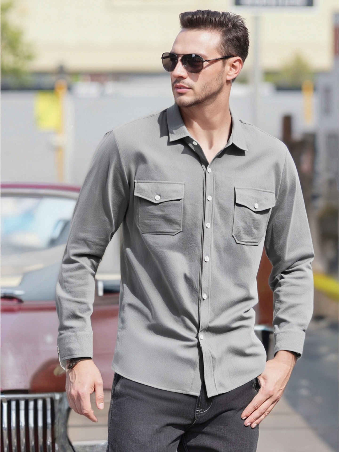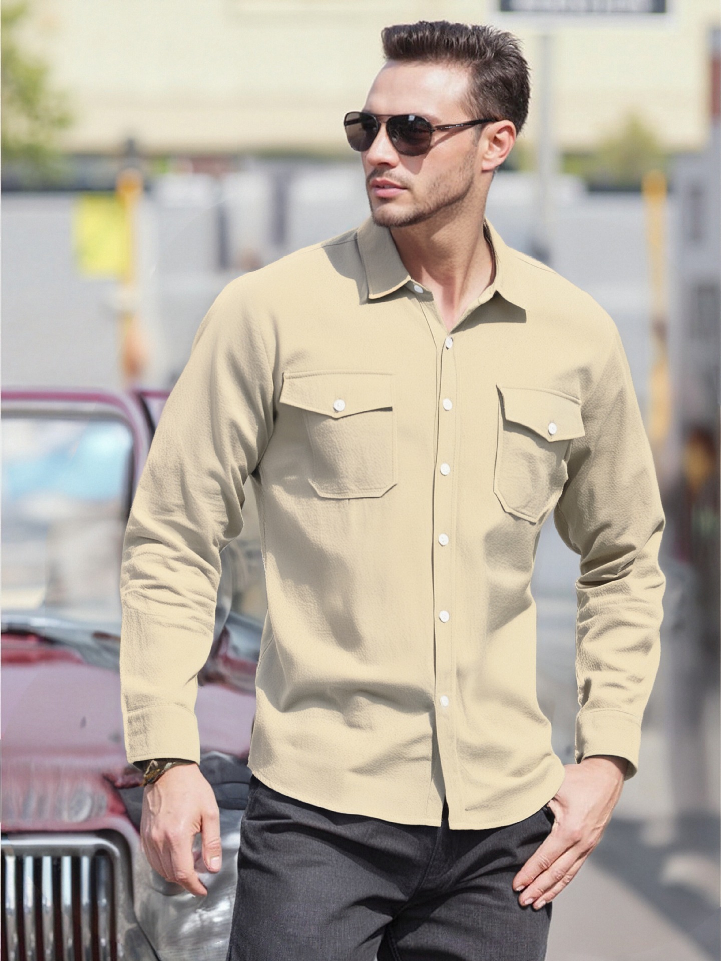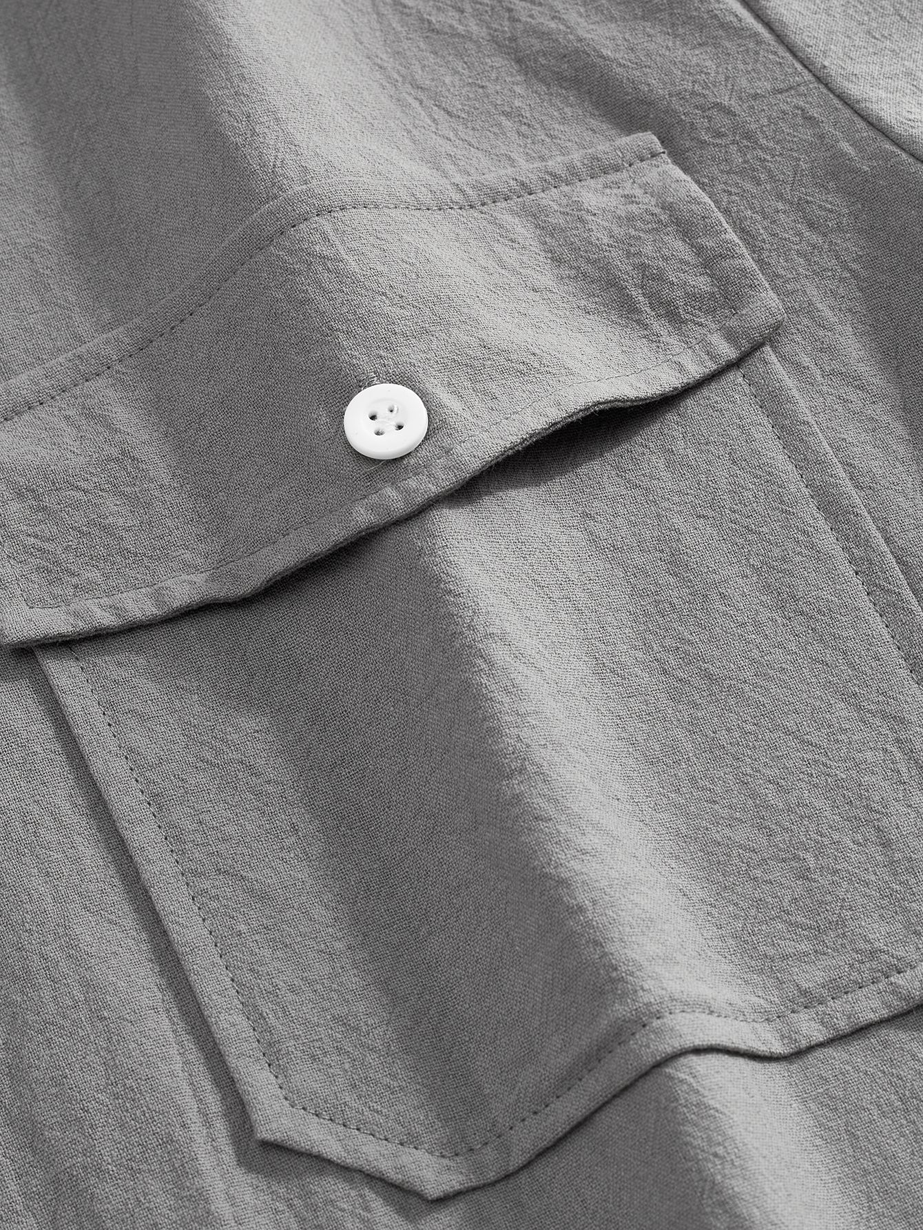 크로스보더 남성복 남성 캐주얼 셔츠 솔리드 컬러 린넨 탑 독립 스테이션 핫 세일 빅 포켓 유럽 및 미국 대형 재킷스토어 가기
