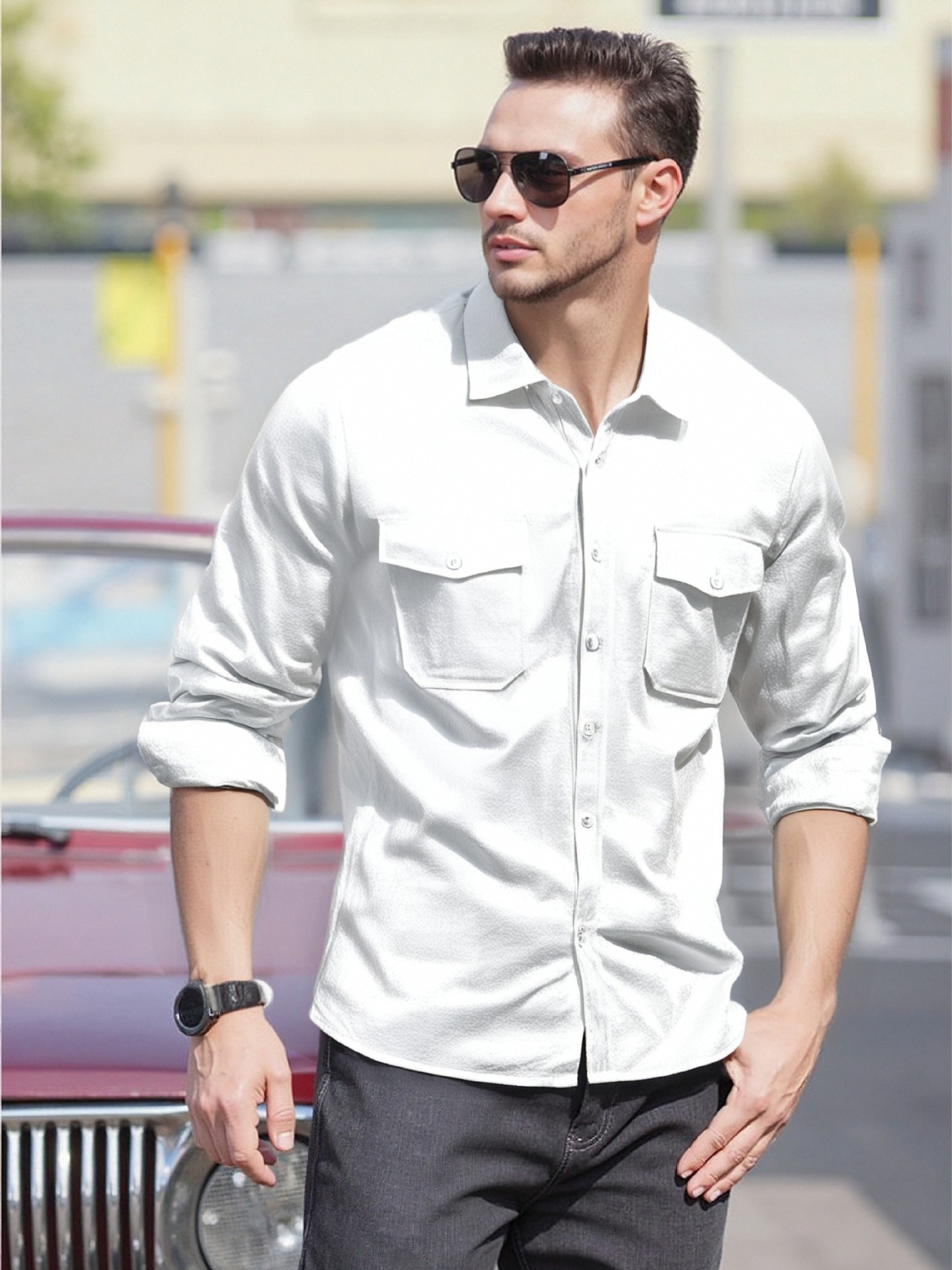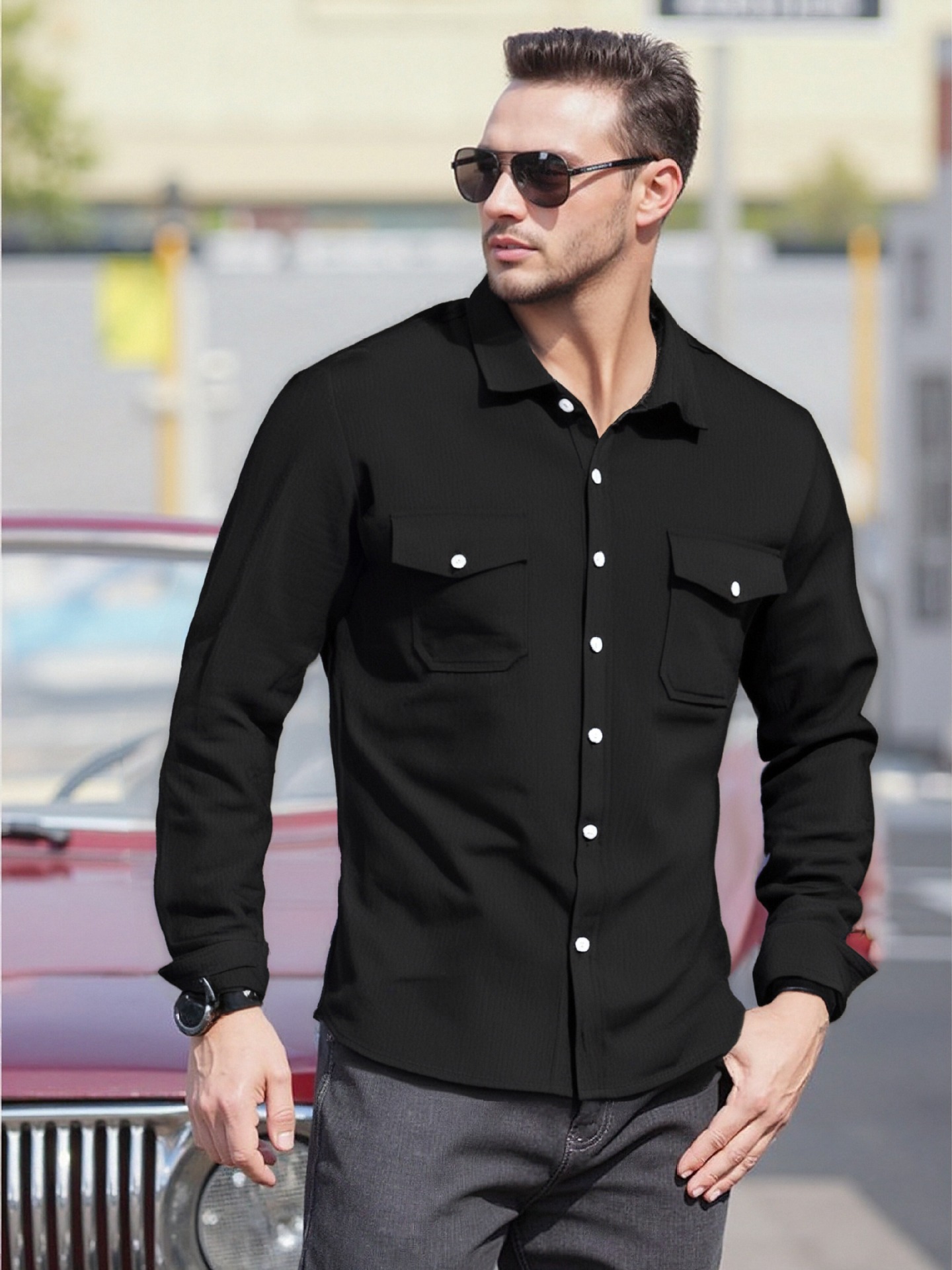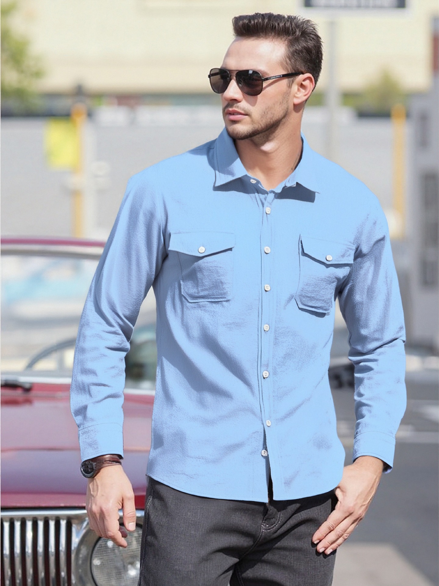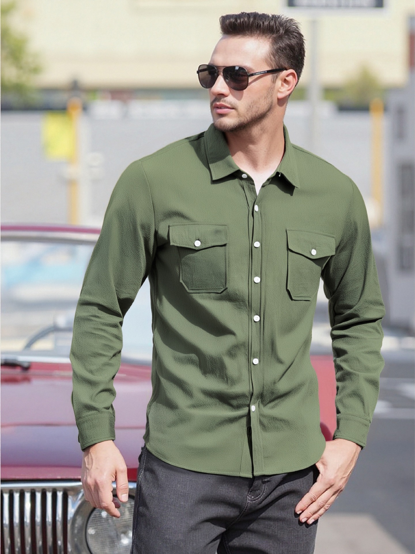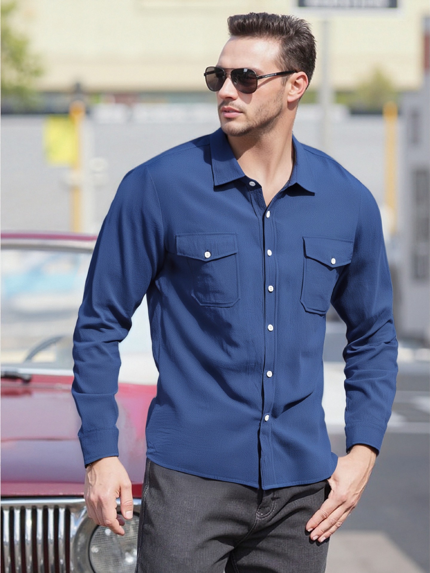 크로스보더 남성복 남성 캐주얼 셔츠 솔리드 컬러 린넨 탑 독립 스테이션 핫 세일 빅 포켓 유럽 및 미국 대형 재킷스토어 가기