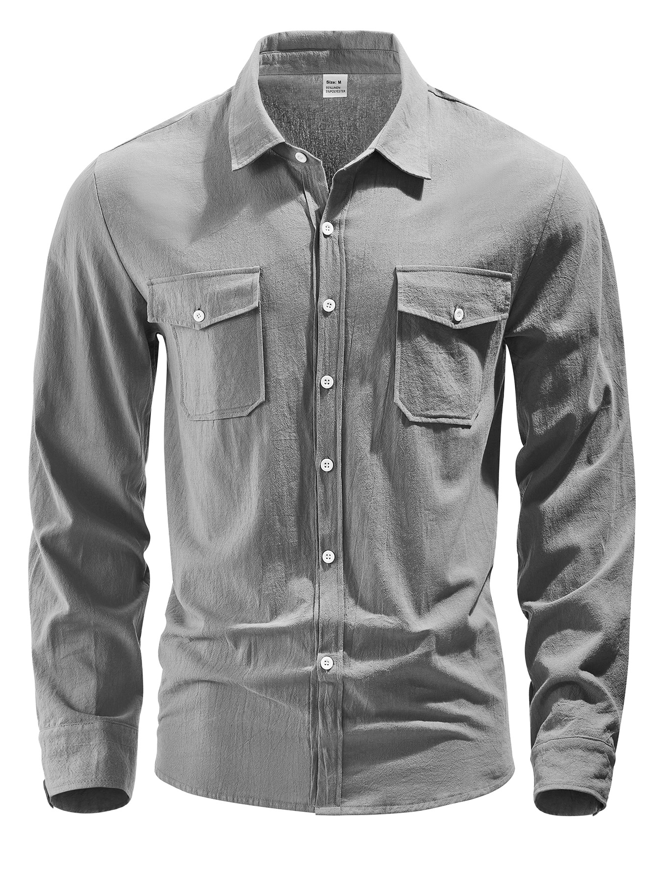 크로스보더 남성복 남성 캐주얼 셔츠 솔리드 컬러 린넨 탑 독립 스테이션 핫 세일 빅 포켓 유럽 및 미국 대형 재킷