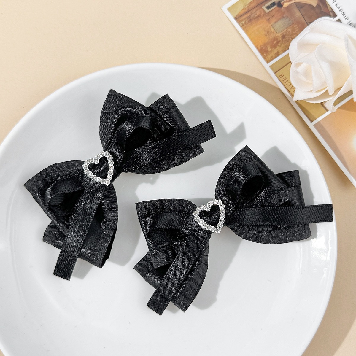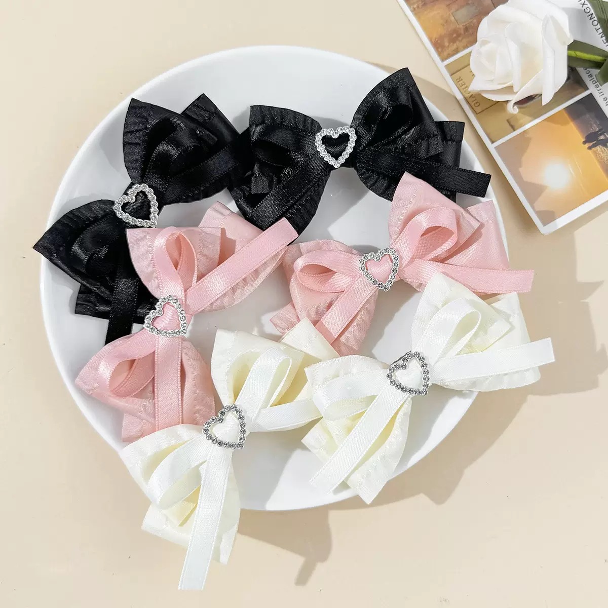 일본과 한국 스타일의 사랑스러운 리본 머리핀, 달콤한 소녀, 심플하고 다재다능한 사이드 앞머리 클립, 달콤하고 시원한 스타일의 헤어 액세서리