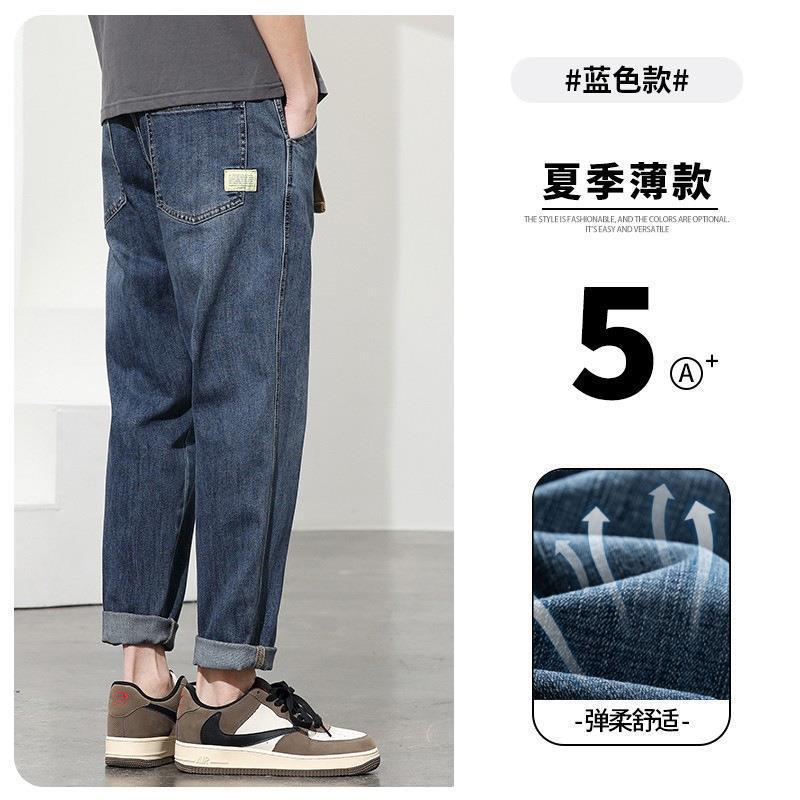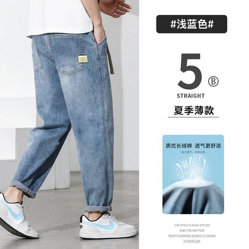 남성용 여름 얇은 청바지, 루즈한 스트레이트 뉴 스타일 캐주얼 9부 팬츠, 남성용 작업복 바지, 남성용 트렌디스토어 가기