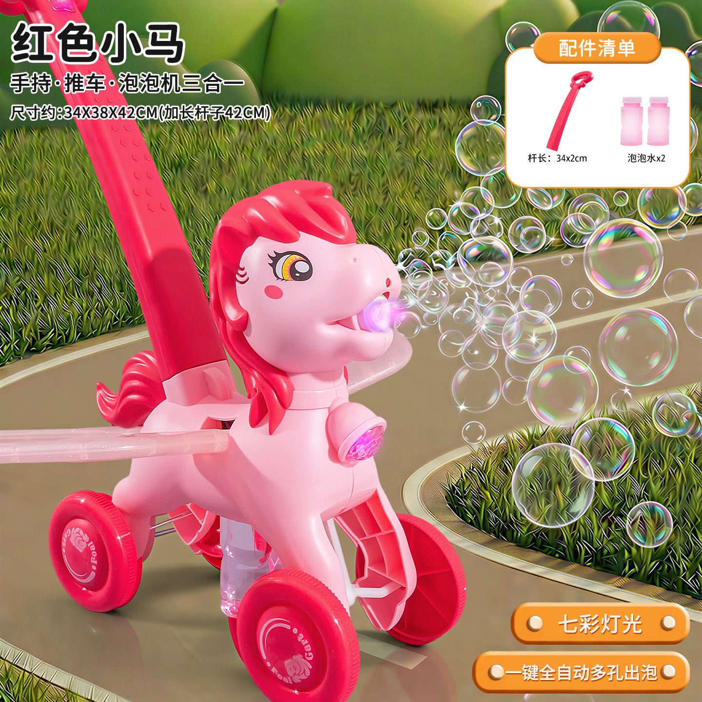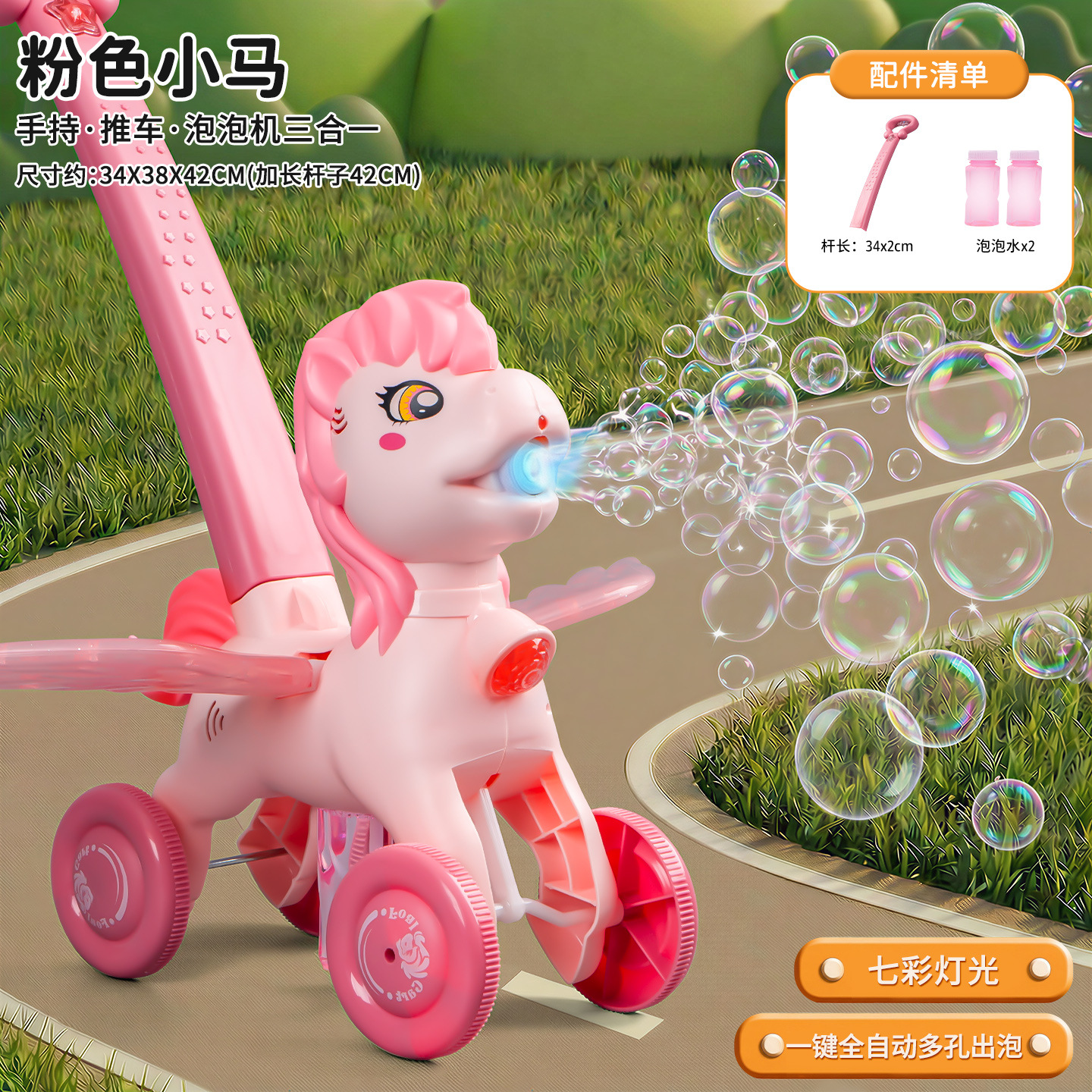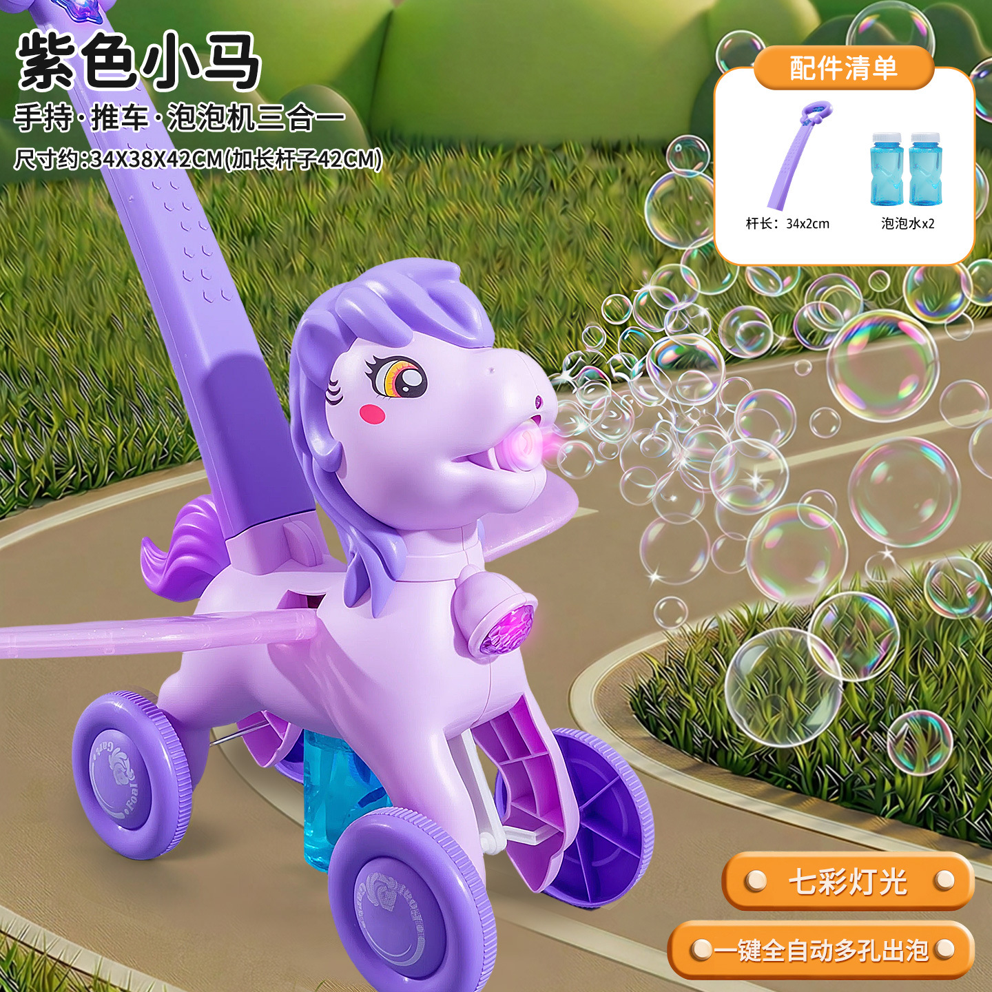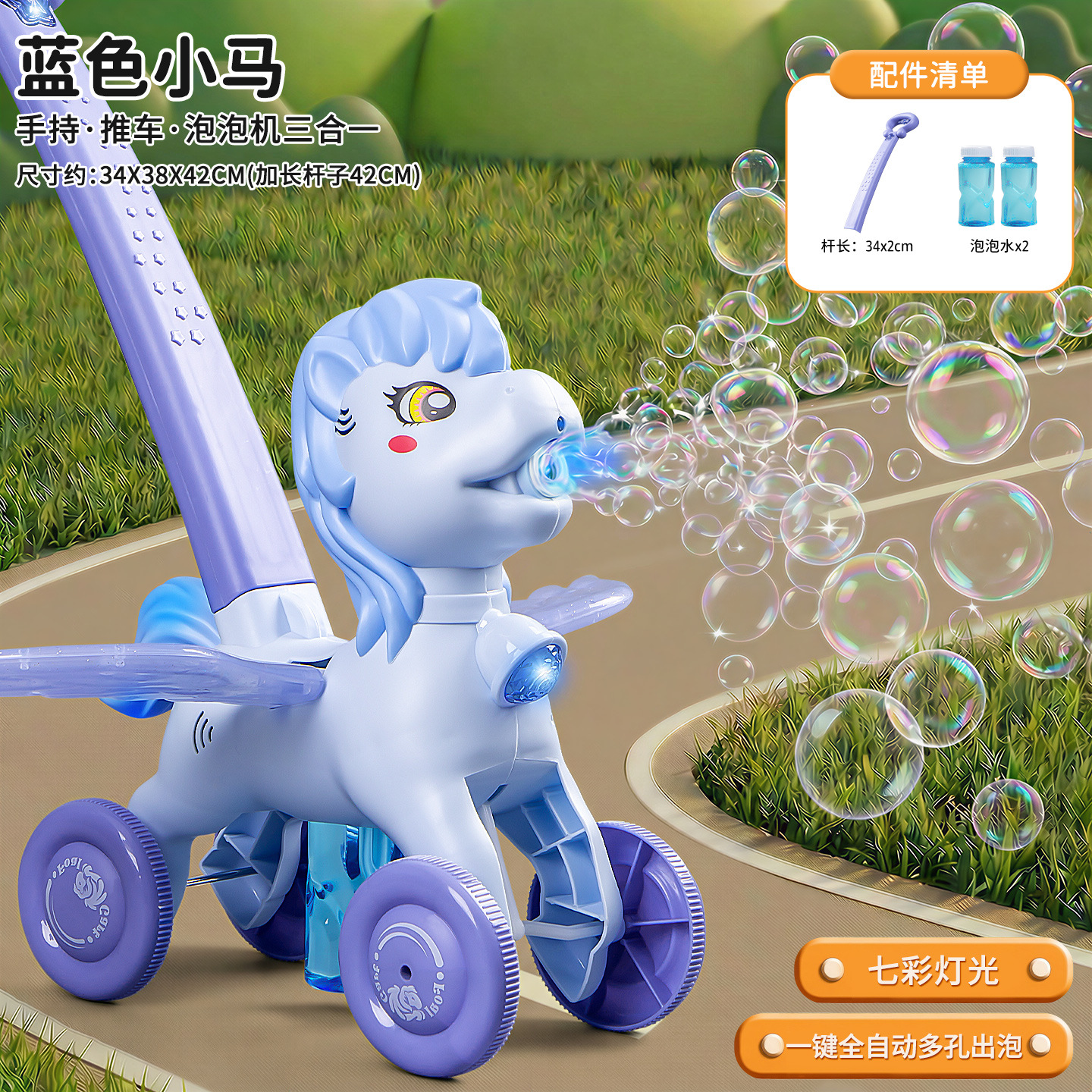 작은 말 거품 송풍기 버블 머신 1-3 세 어린이 장난감 작은 기차 아기 유아 전기 소리와 빛 유모차스토어 가기