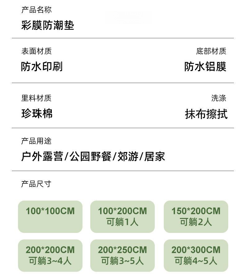 두꺼운 컬러 필름 필드 캠핑 매트 야외 피크닉 매트 피크닉 천 매트 바닥 매트 기숙사 매트리스 특별 패키지