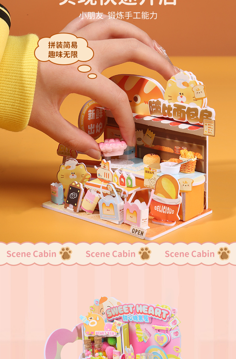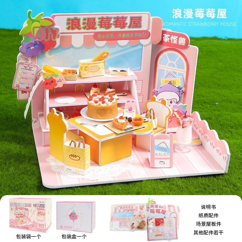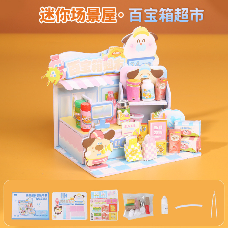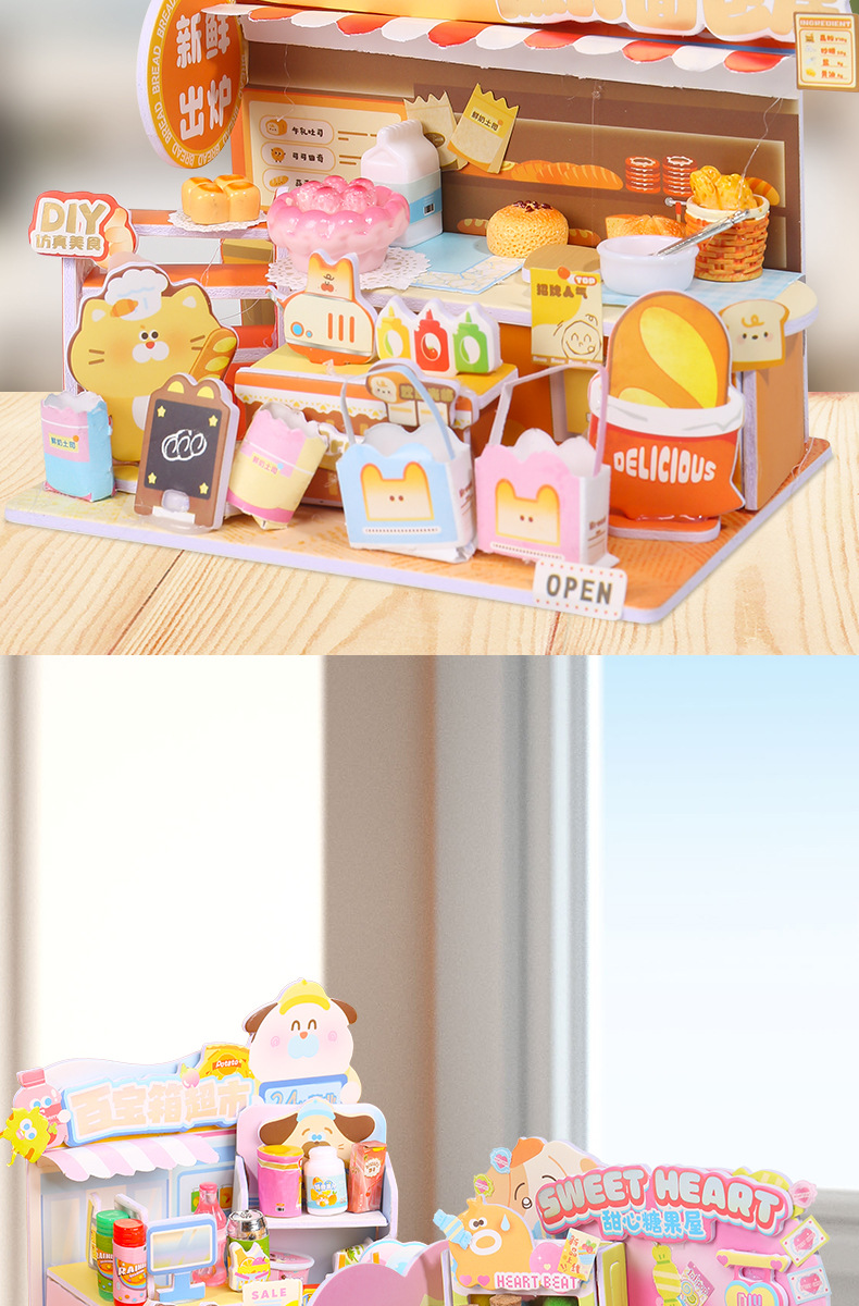 3D 입체 미니 장면 캐빈 손으로 만든 창조적 인 DIY 미니어처 건물 정적 모델 조립 장난감스토어 가기