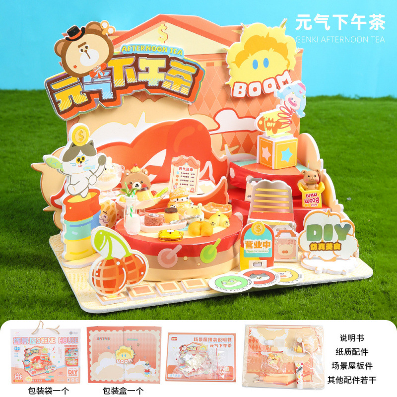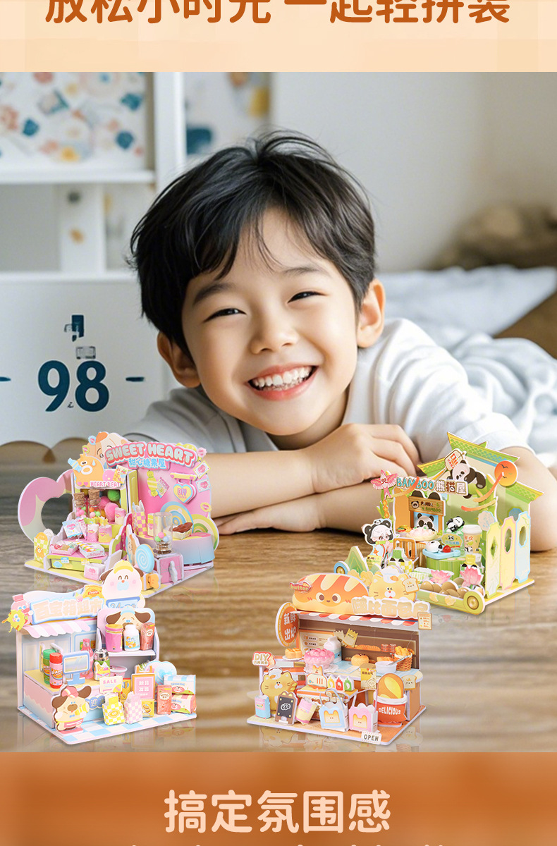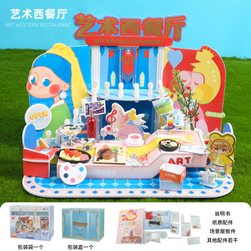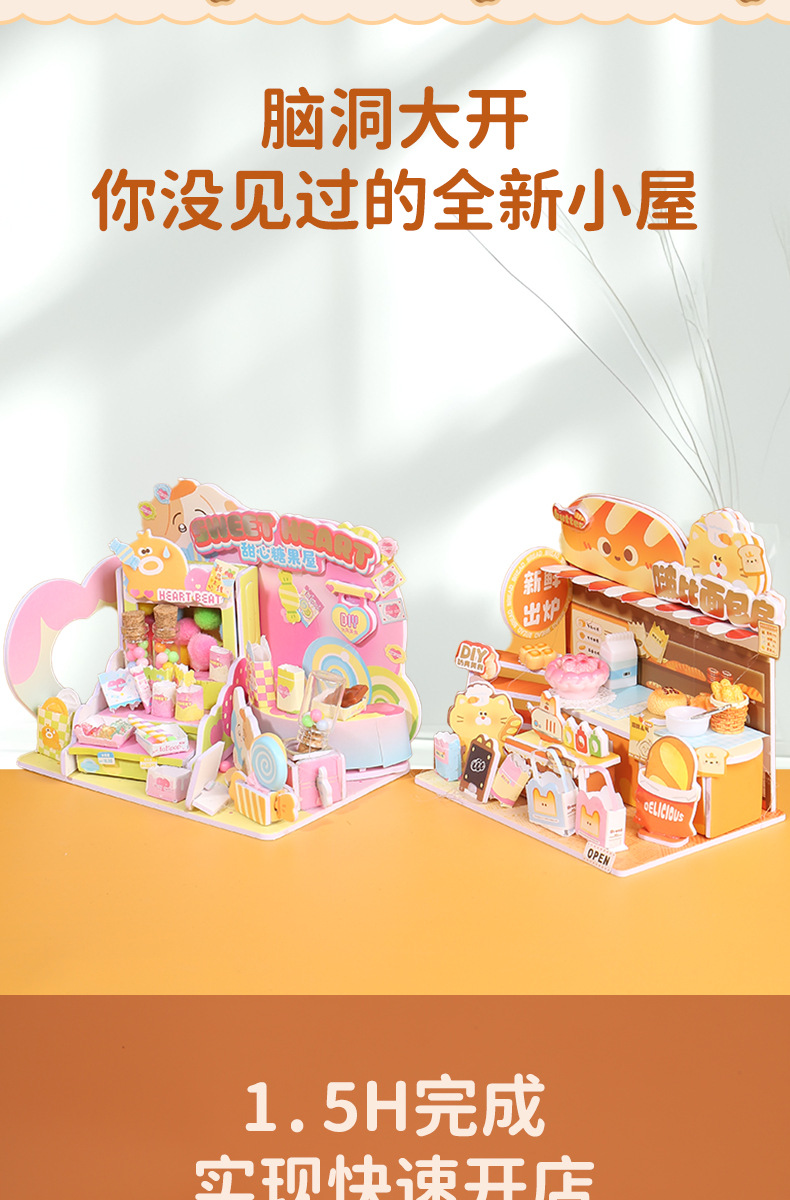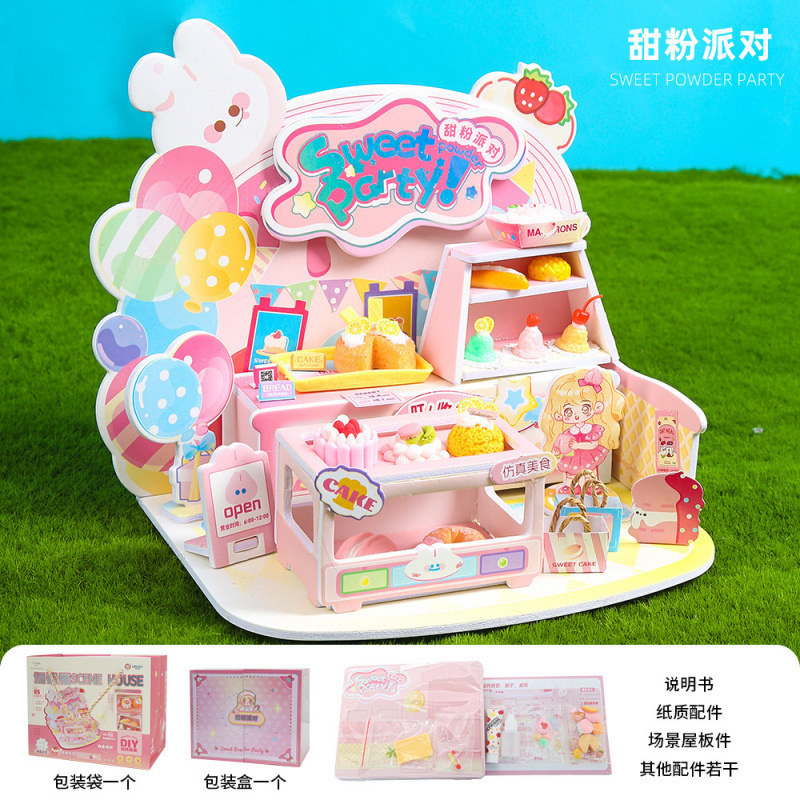 3D 입체 미니 장면 캐빈 손으로 만든 창조적 인 DIY 미니어처 건물 정적 모델 조립 장난감스토어 가기