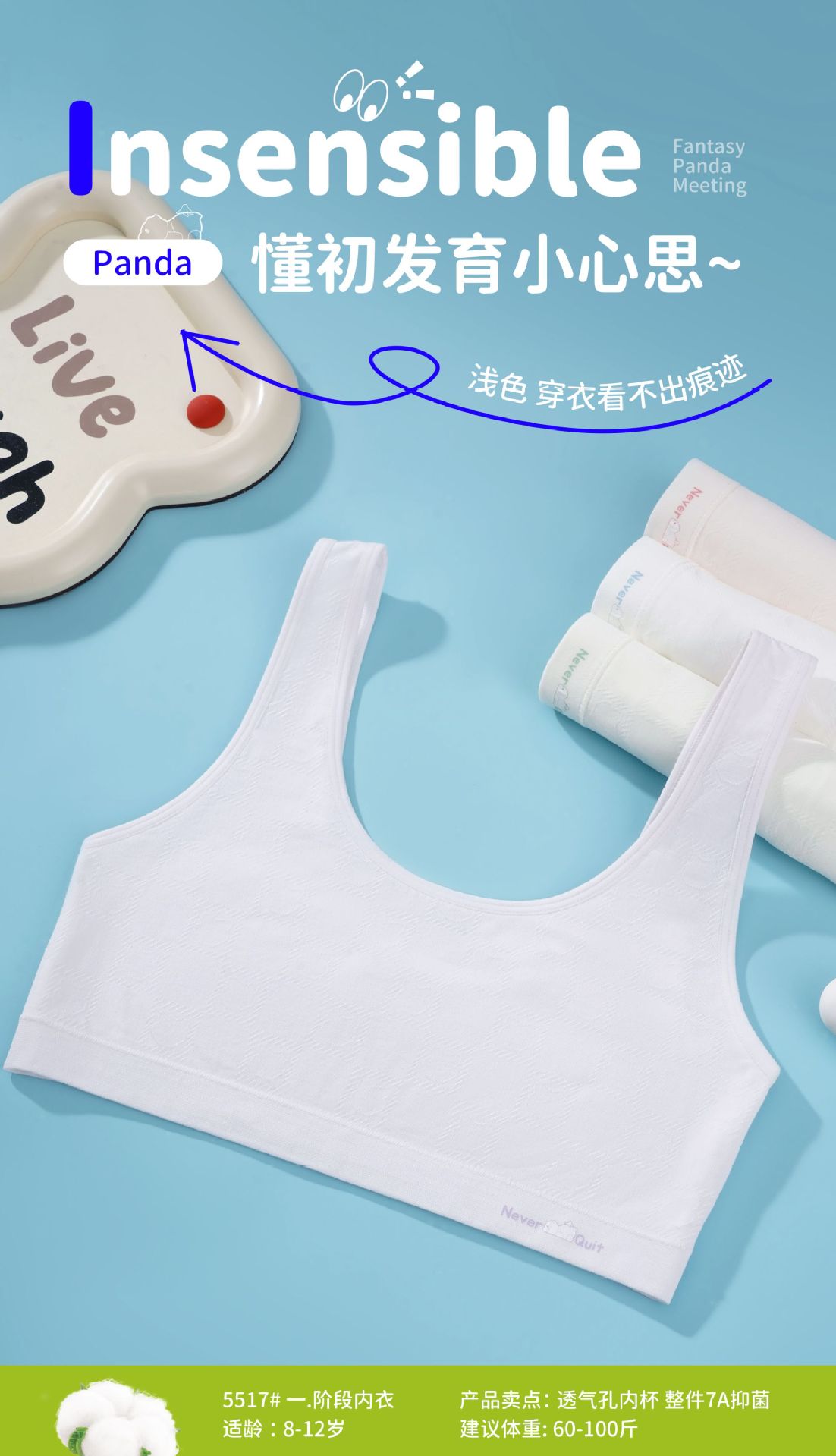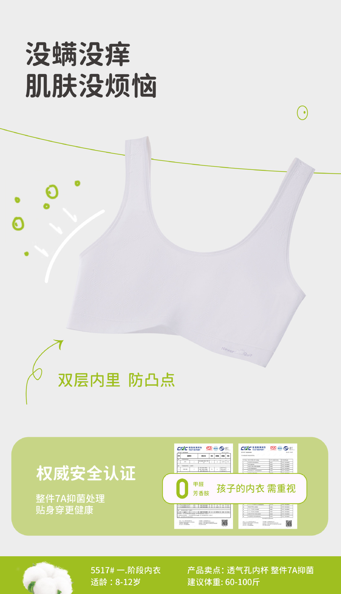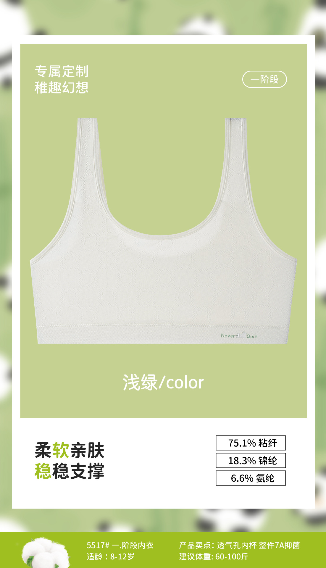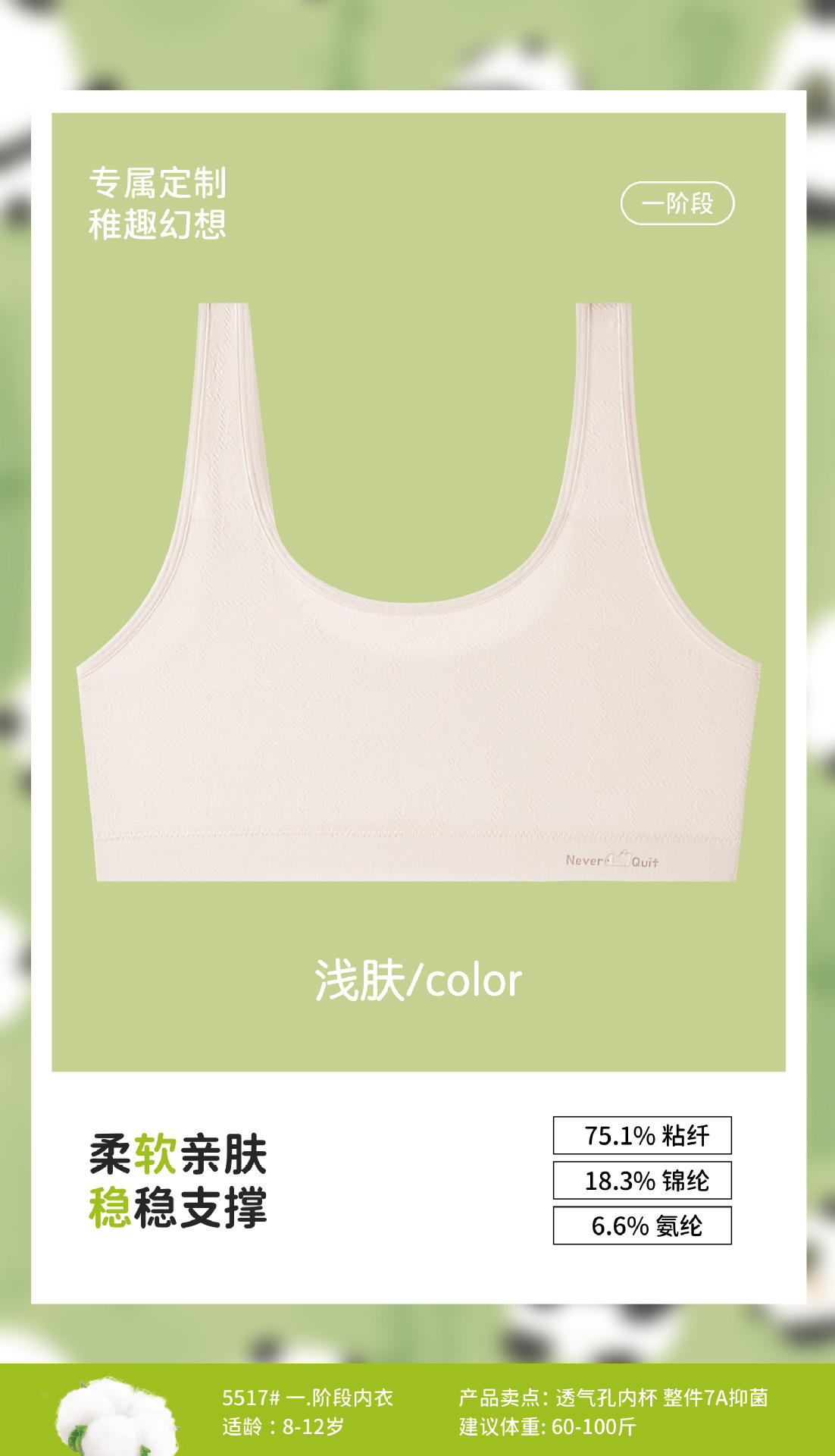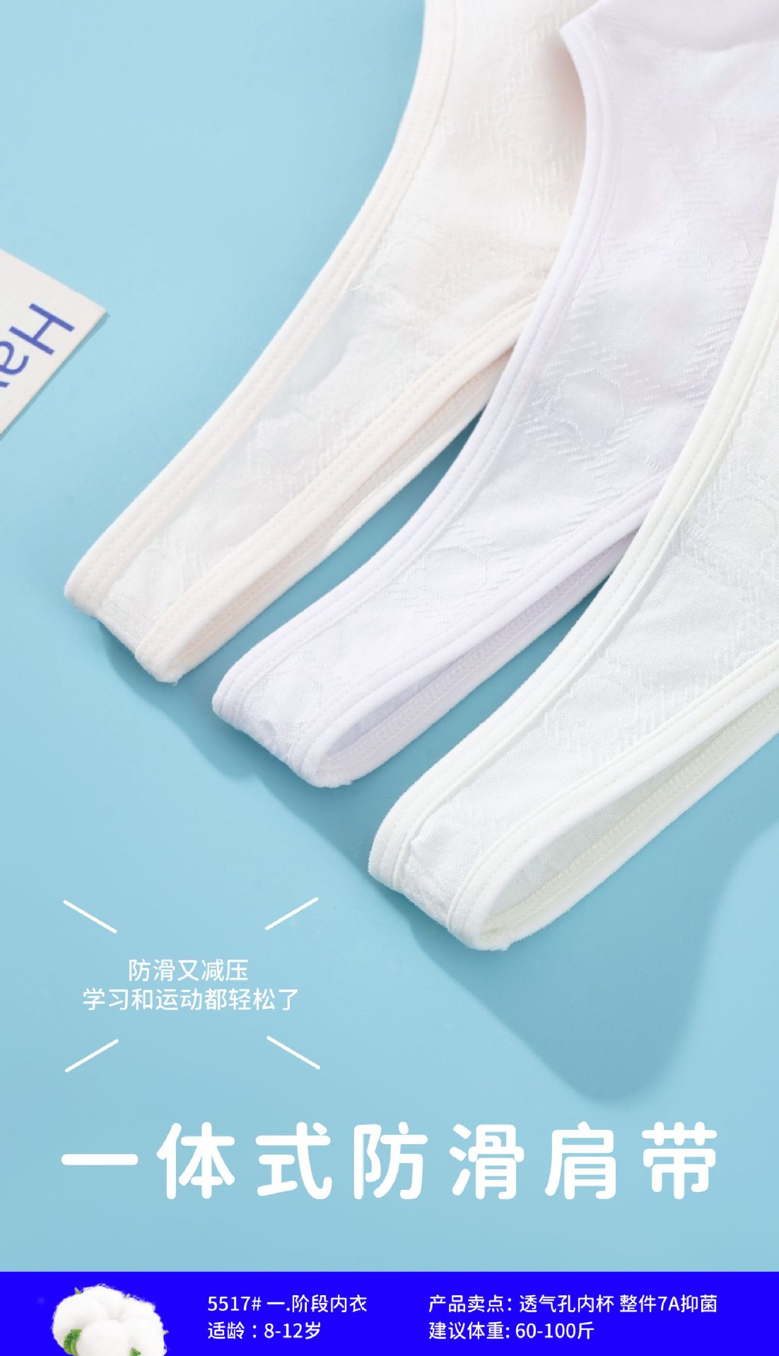 5517 사이델 면 학생 속옷, 발달 초기 단계, 편안하고 통기성이 있으며 흔적이 없으며 탄력성이 높으며 소녀의 가슴을 감싸줍니다.