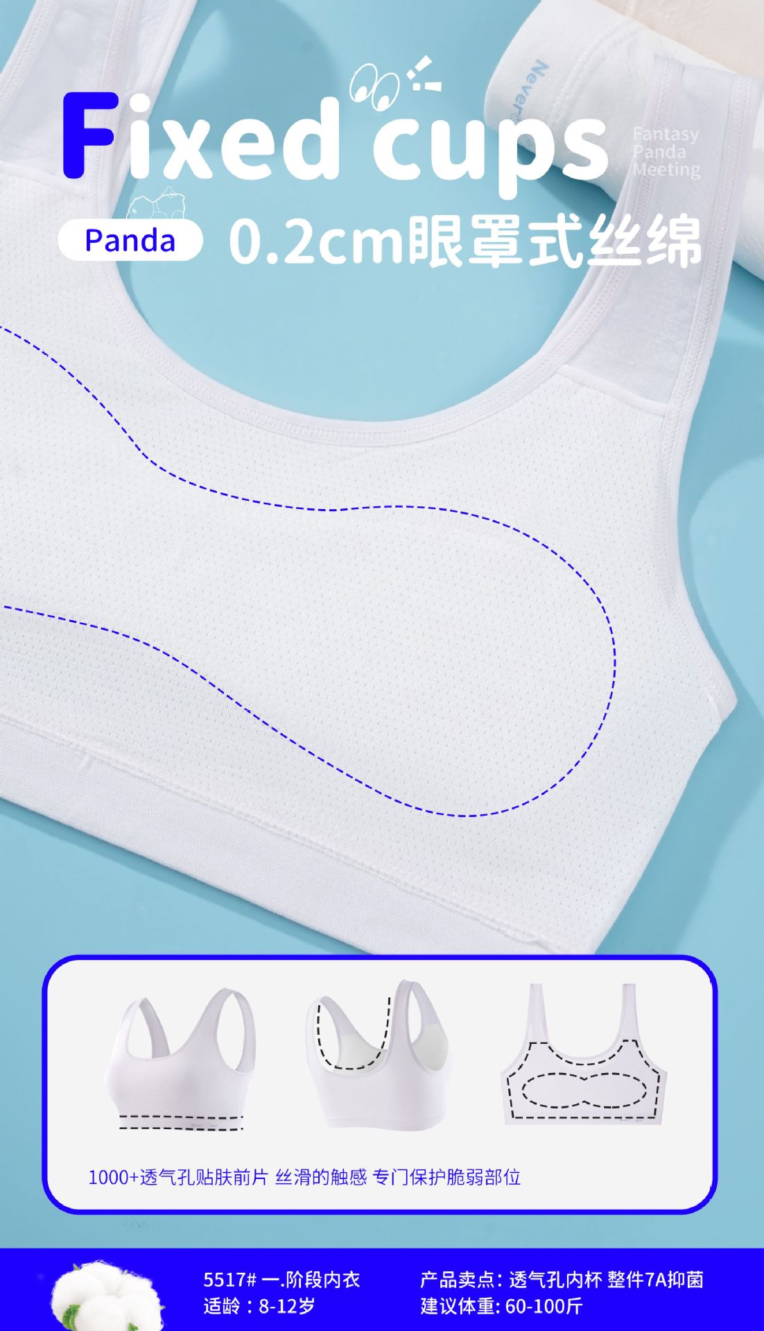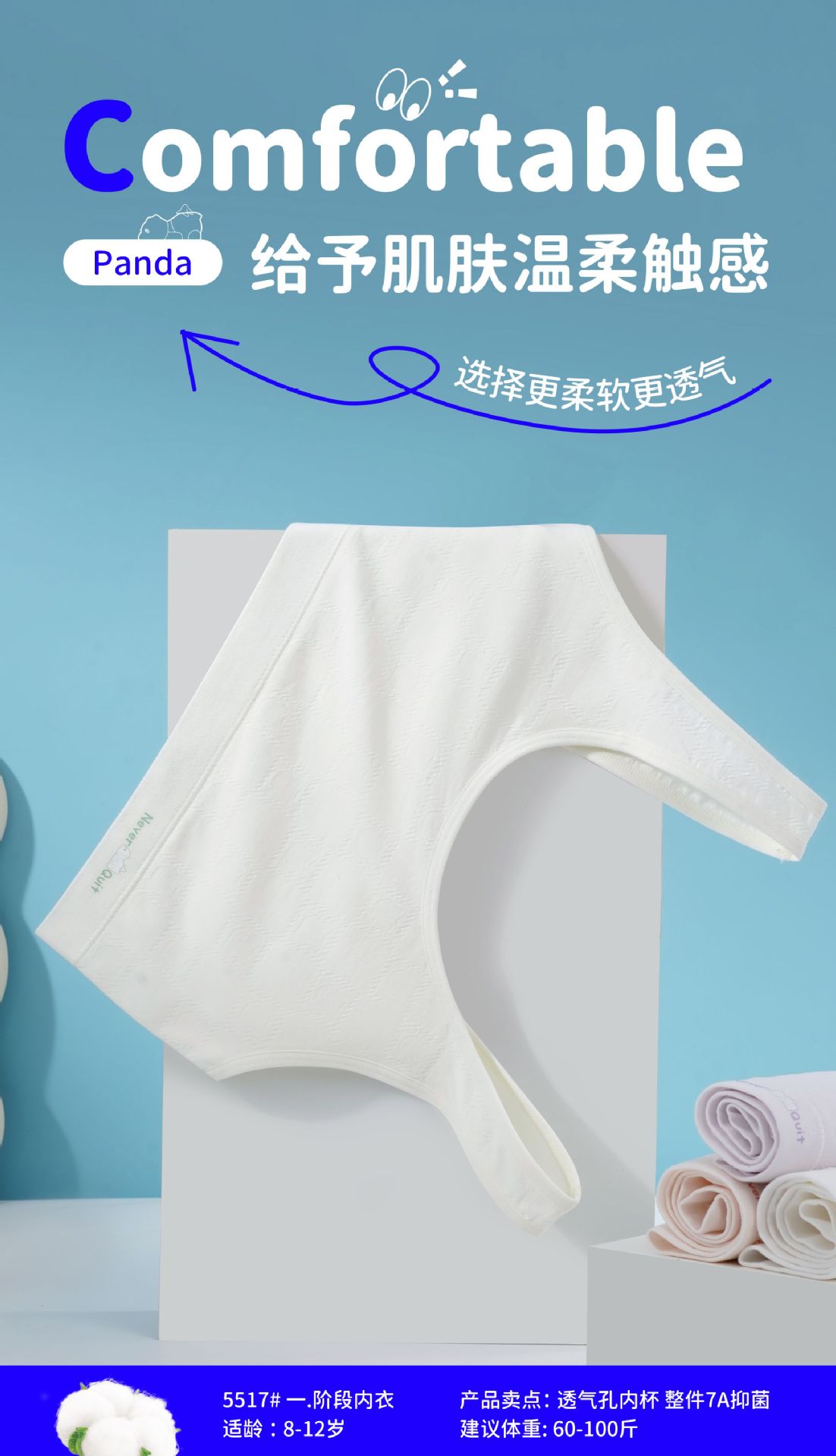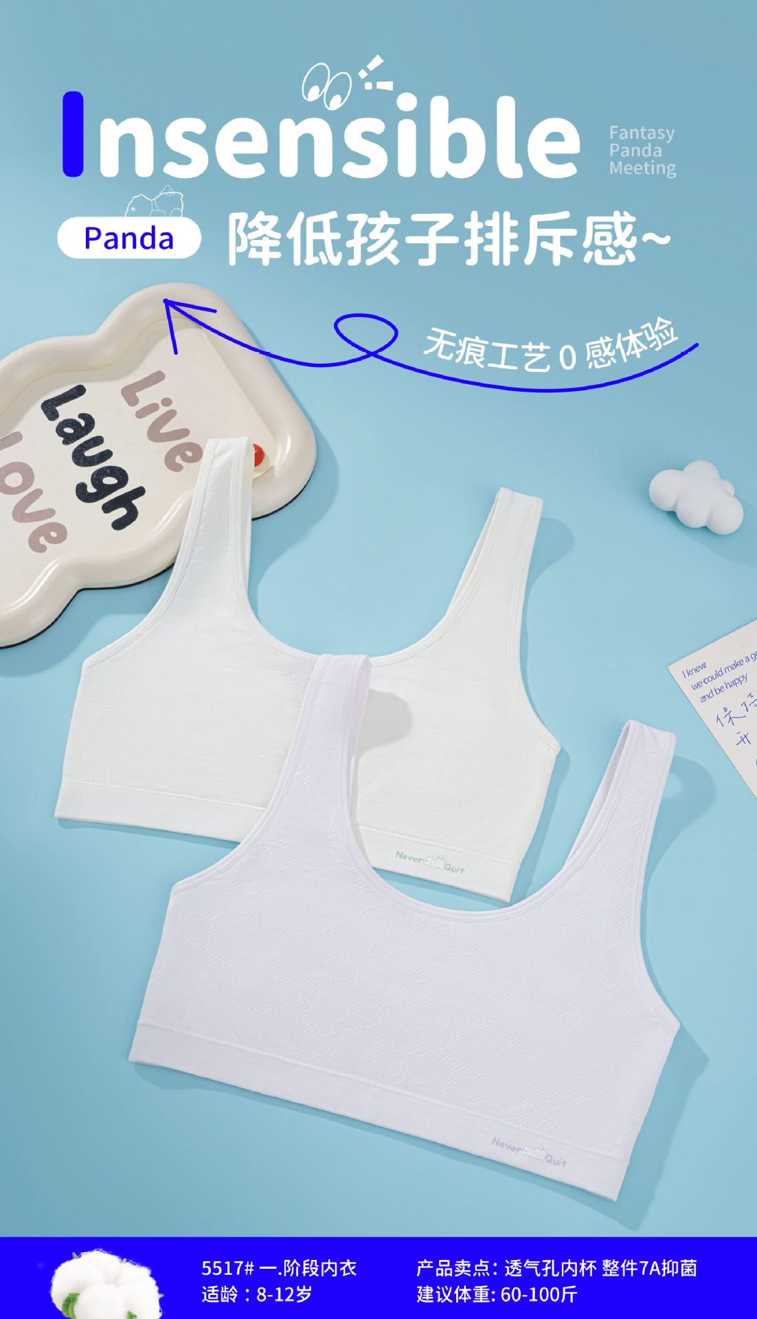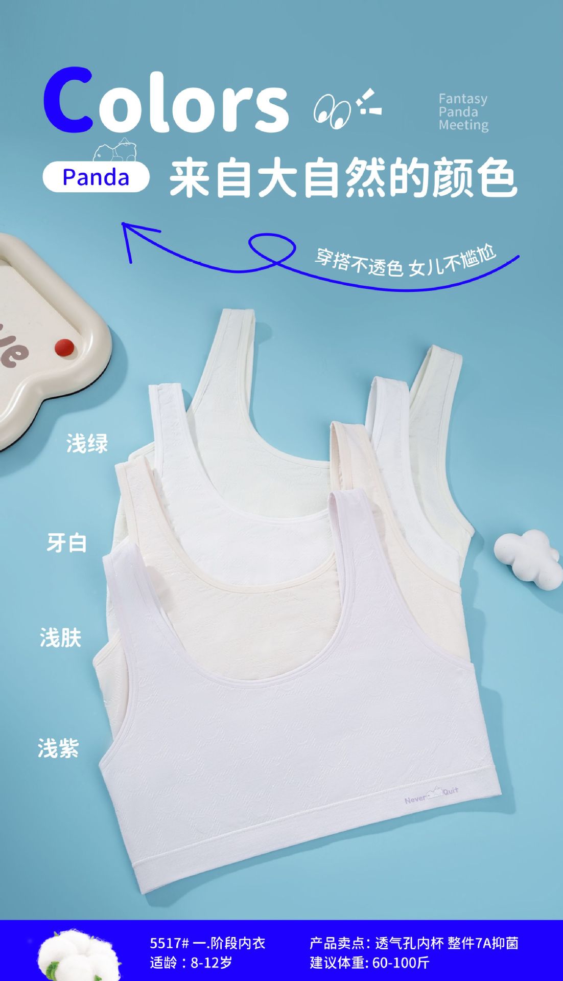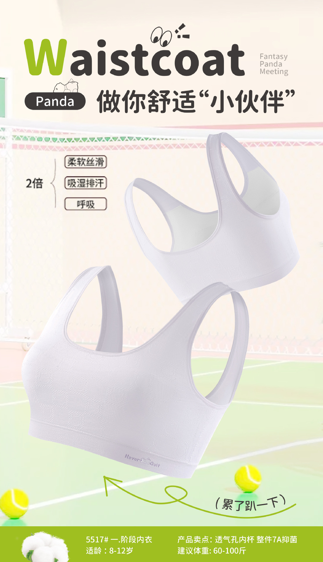 5517 사이델 면 학생 속옷, 발달 초기 단계, 편안하고 통기성이 있으며 흔적이 없으며 탄력성이 높으며 소녀의 가슴을 감싸줍니다.