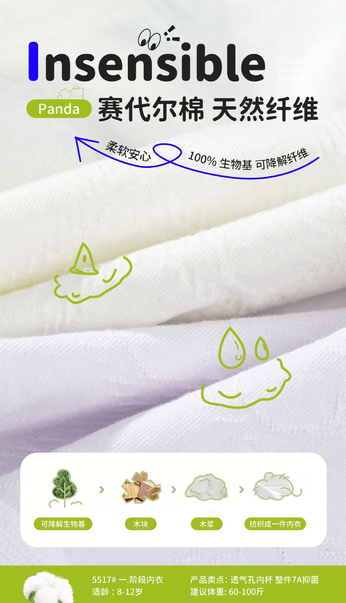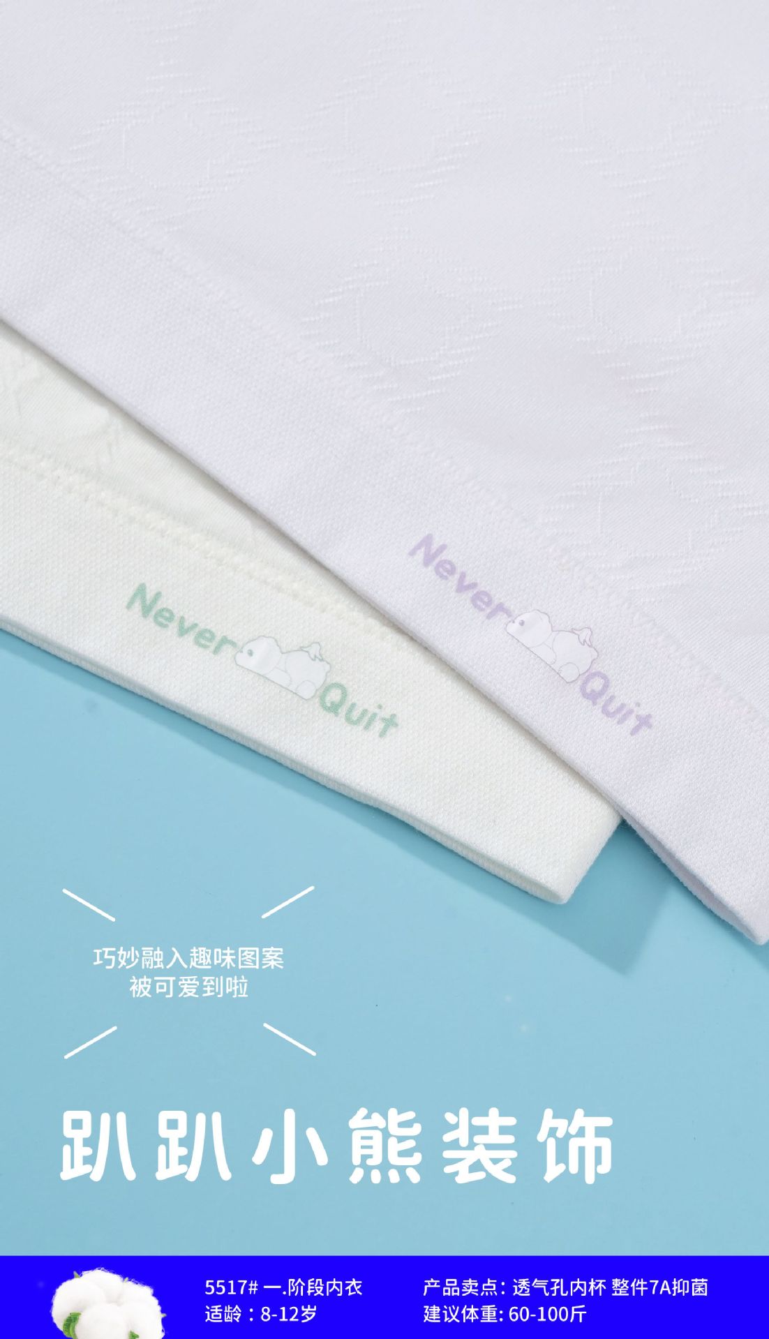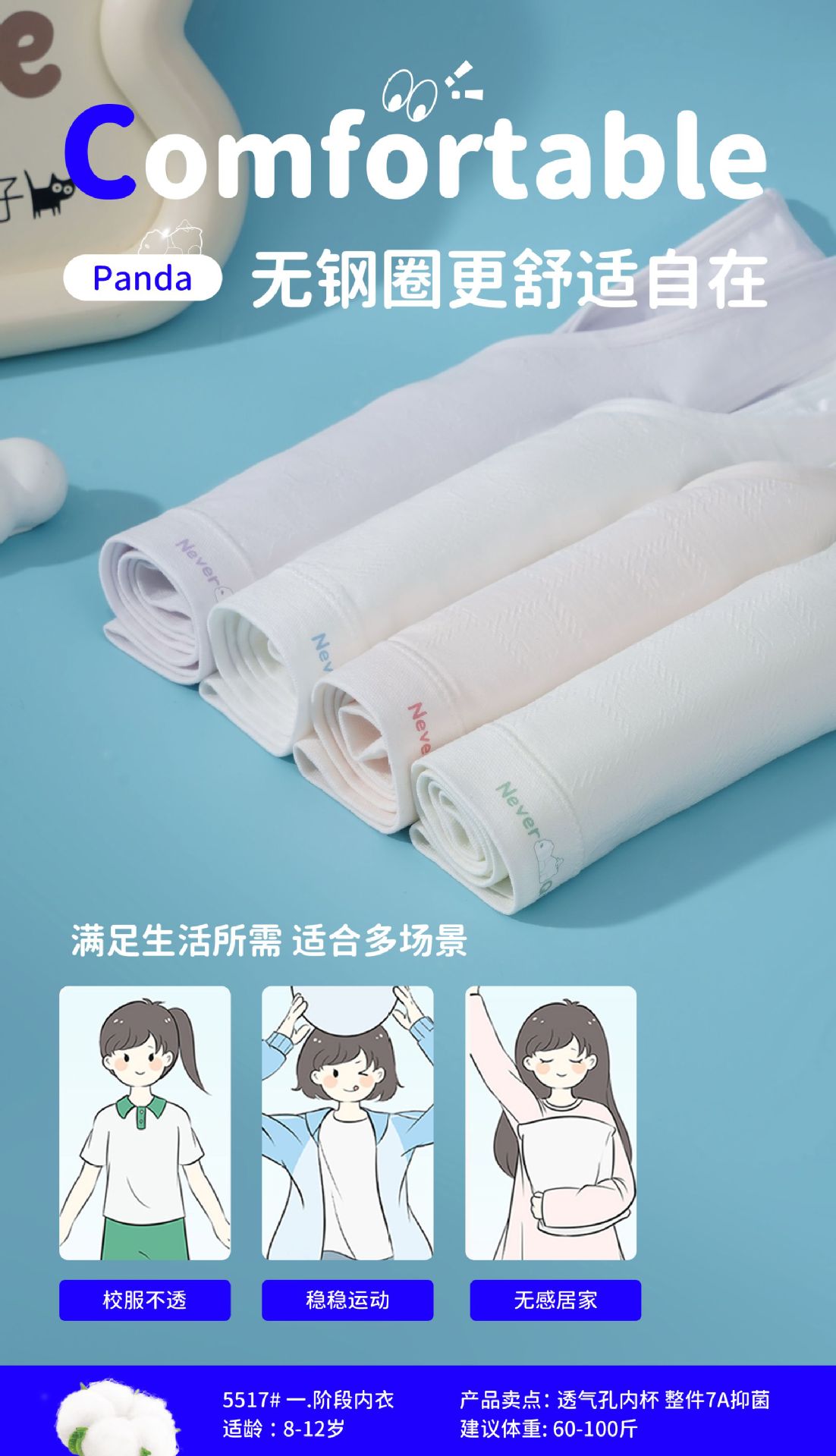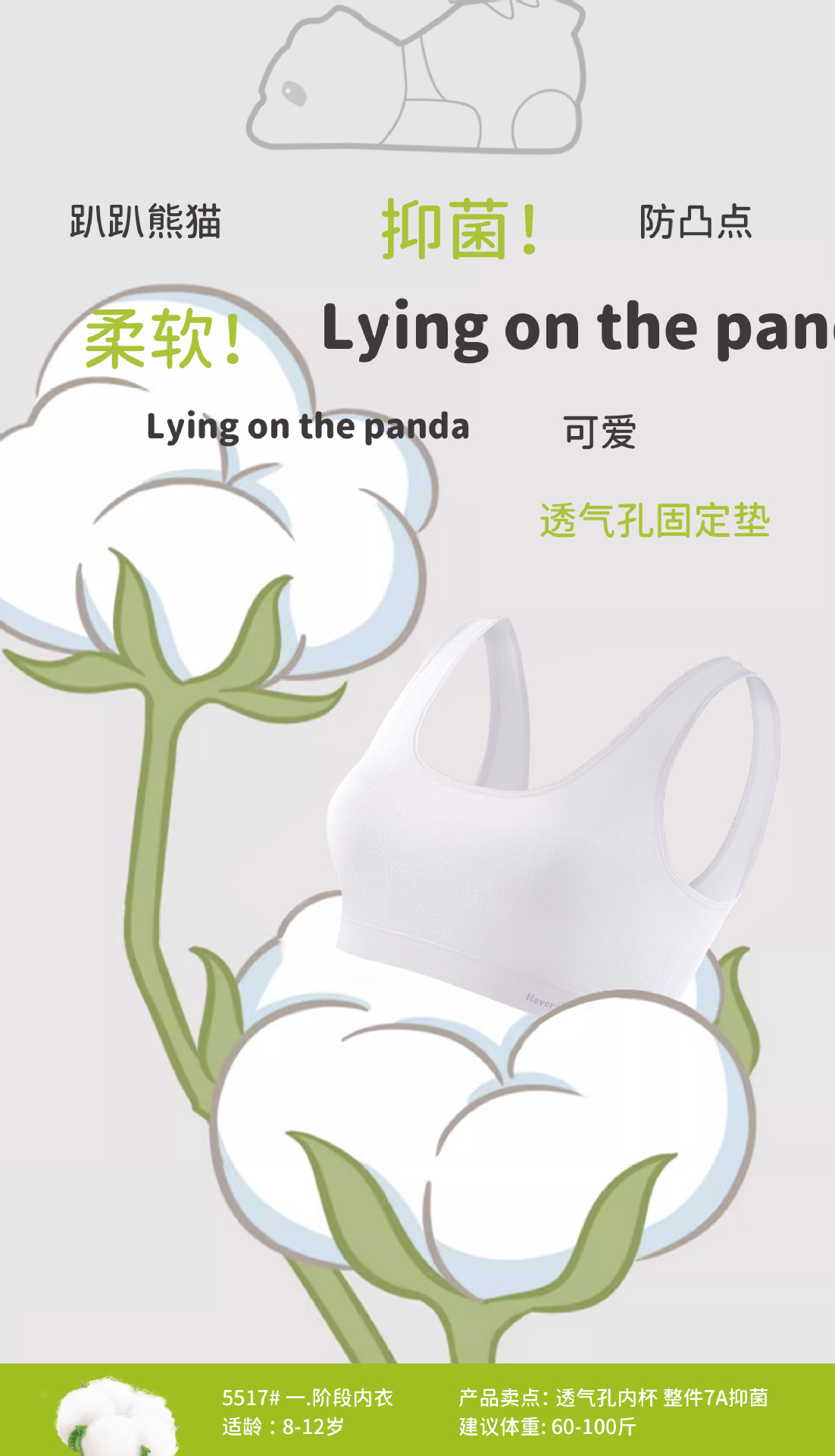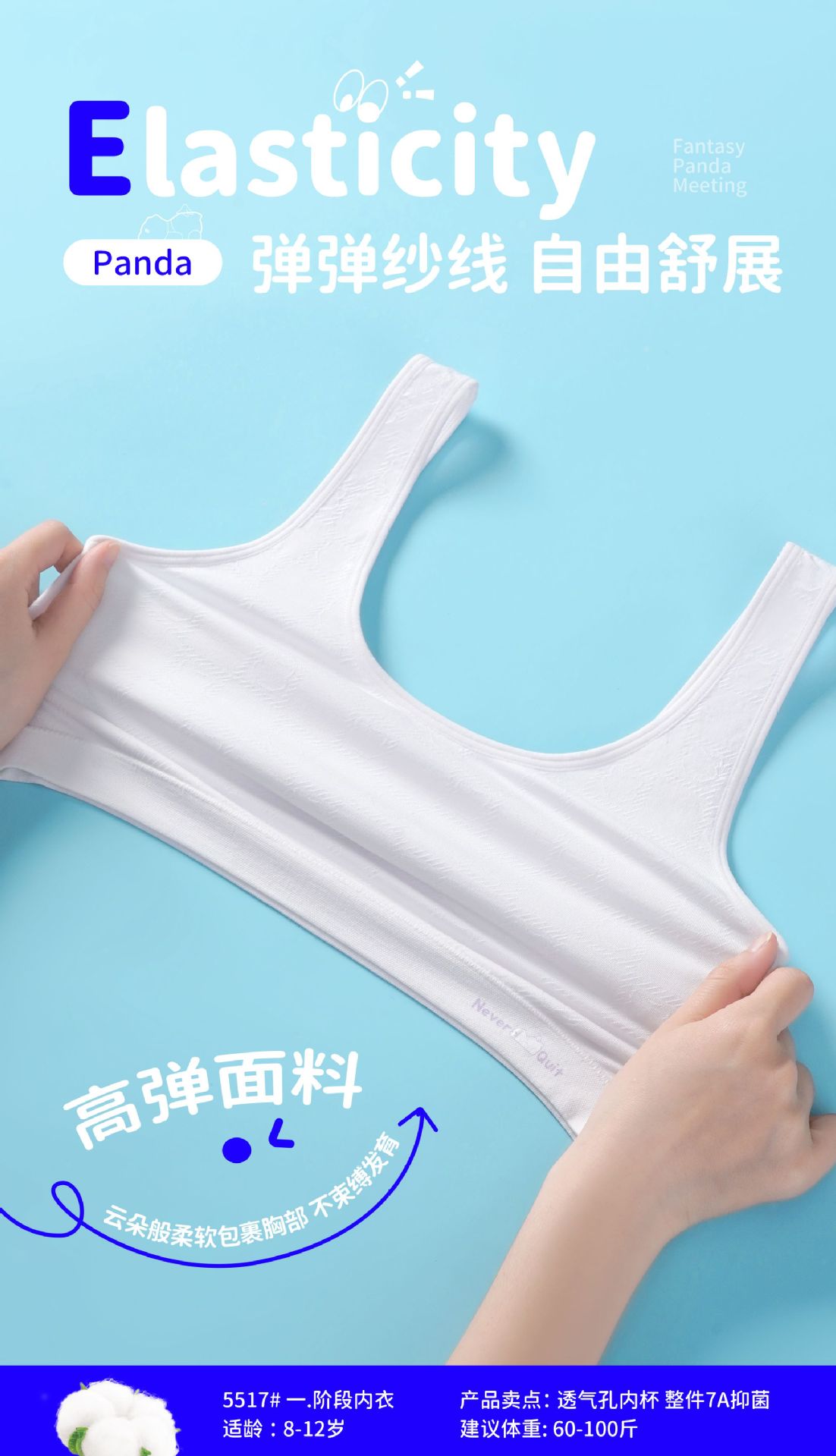 5517 사이델 면 학생 속옷, 발달 초기 단계, 편안하고 통기성이 있으며 흔적이 없으며 탄력성이 높으며 소녀의 가슴을 감싸줍니다.