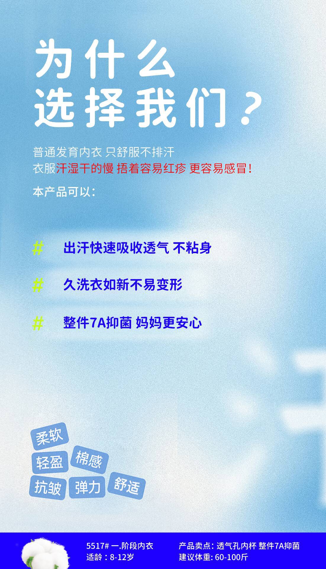 5517 사이델 면 학생 속옷, 발달 초기 단계, 편안하고 통기성이 있으며 흔적이 없으며 탄력성이 높으며 소녀의 가슴을 감싸줍니다.스토어 가기