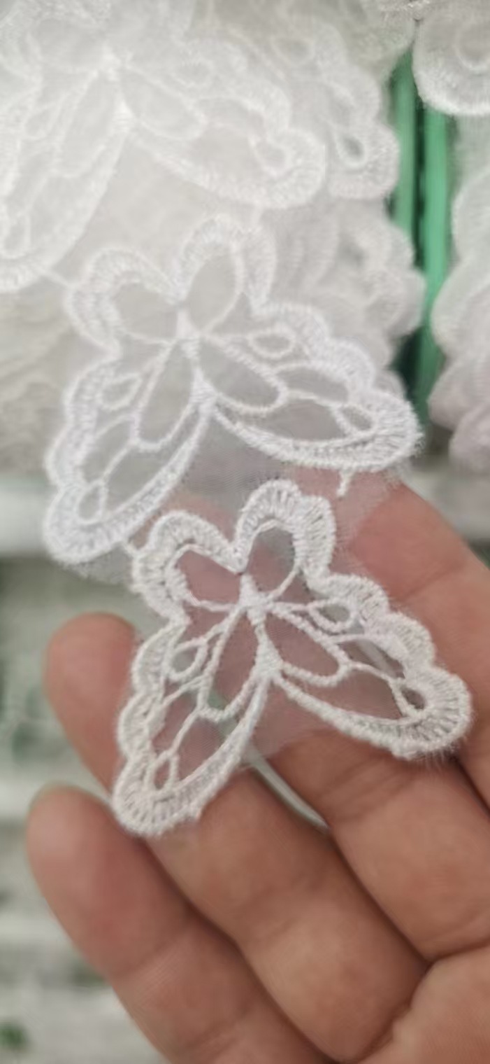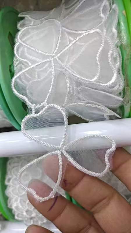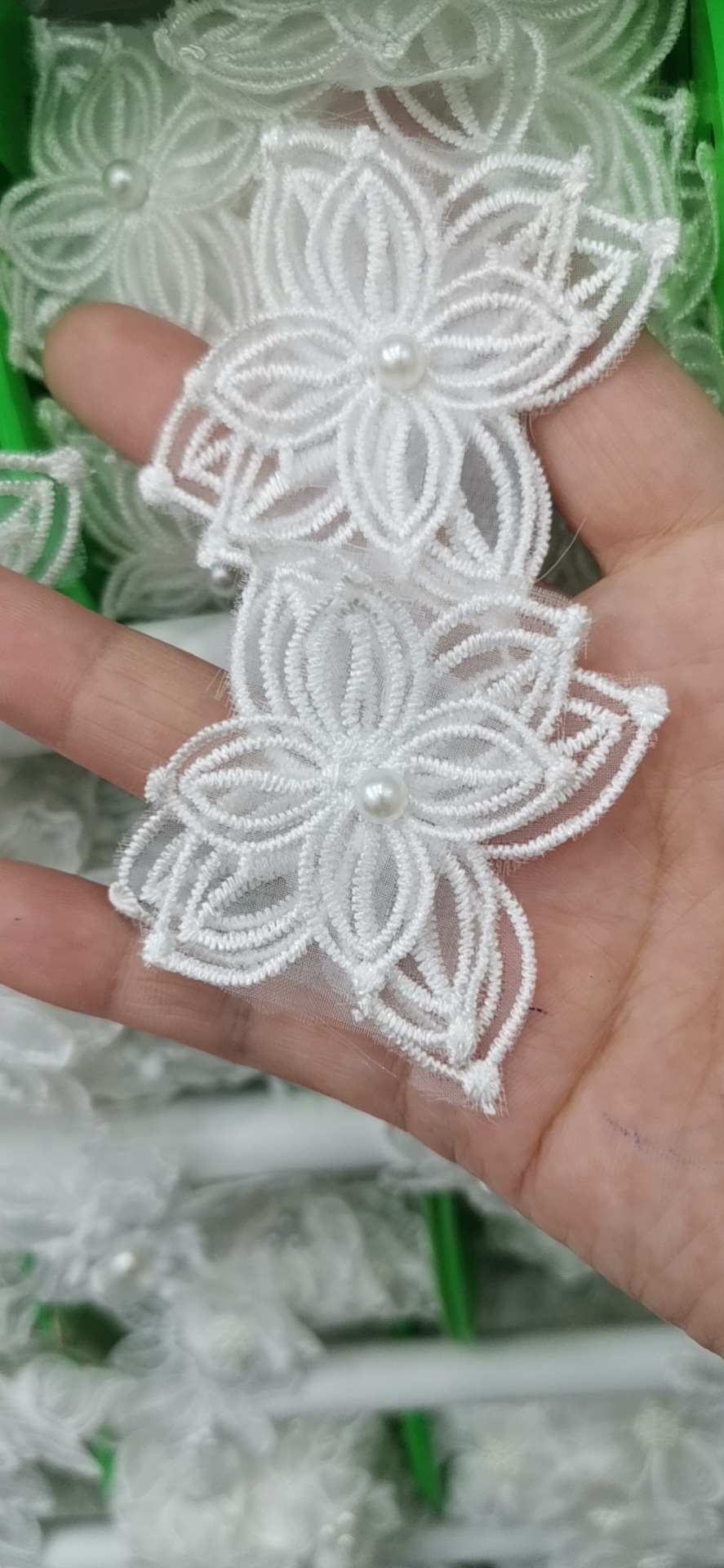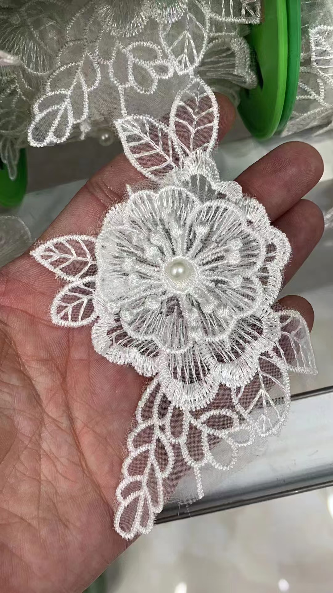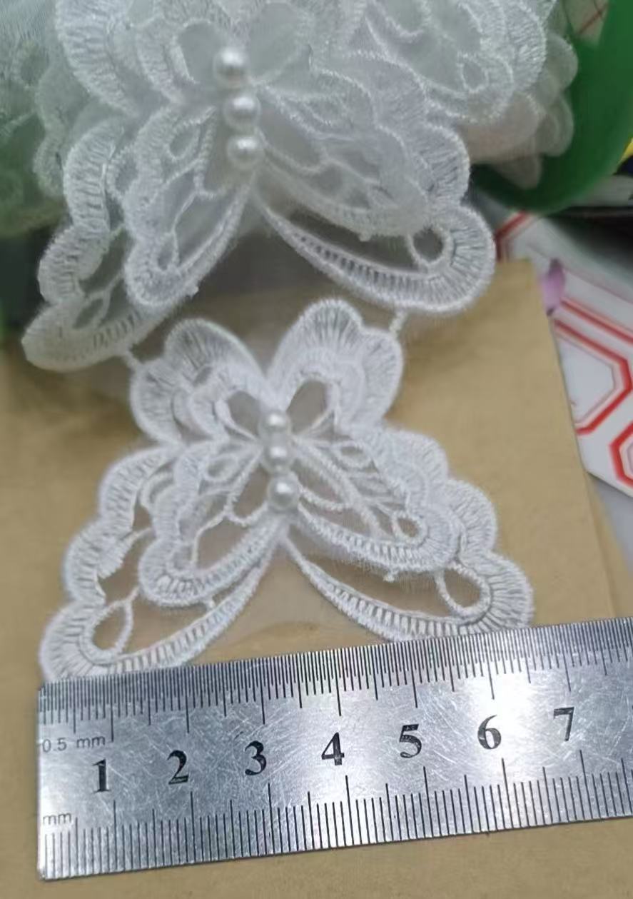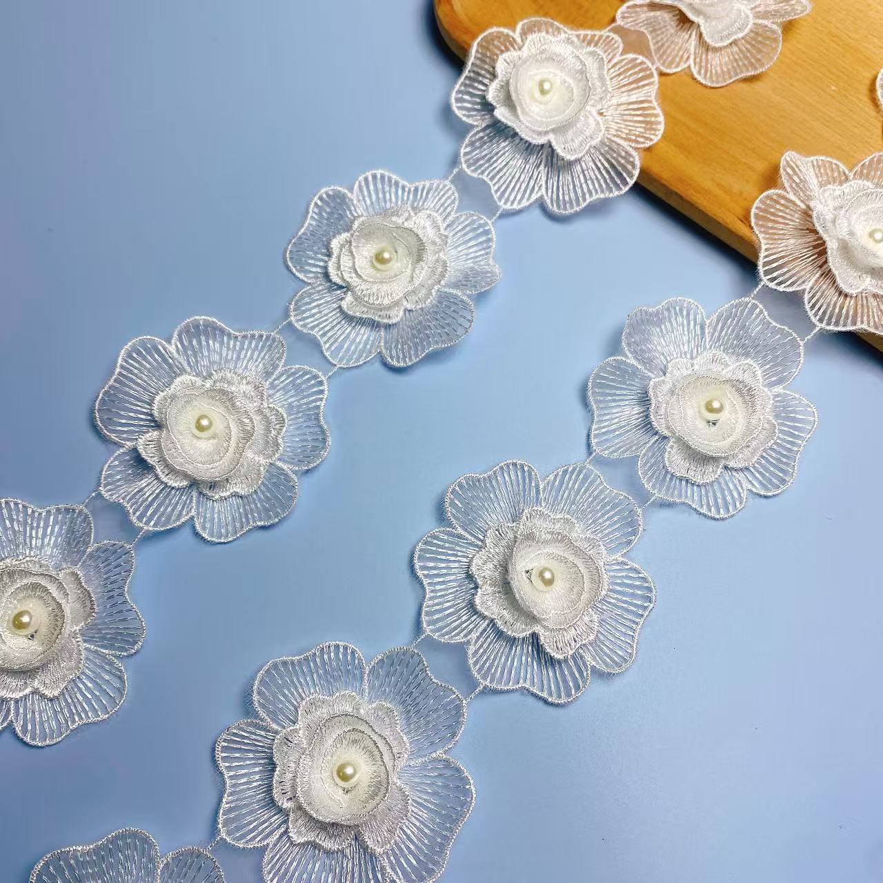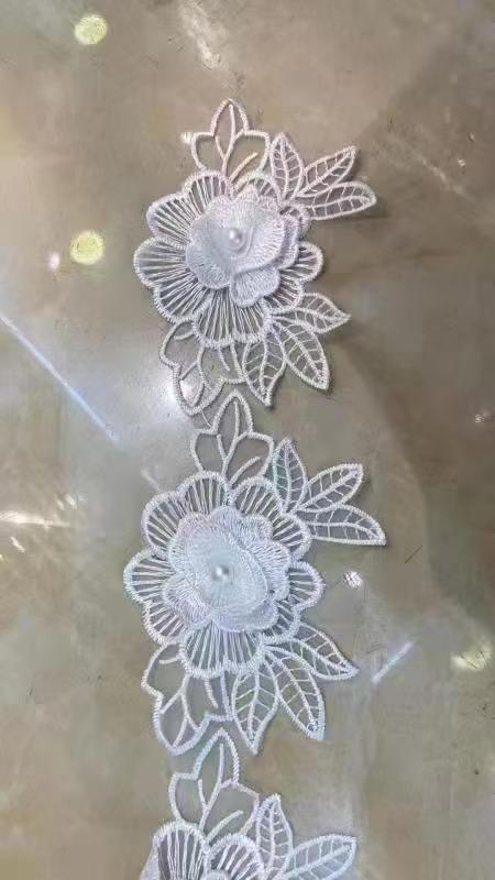 입체 레이스 꽃 흰색 Organza 레이스 진주 웨딩 드레스 커튼 DIY 수제 장식 액세서리