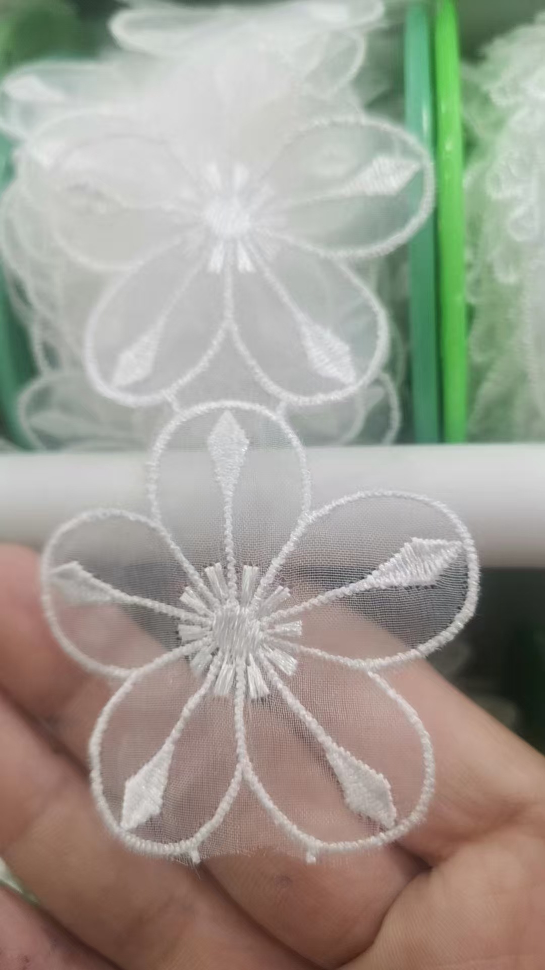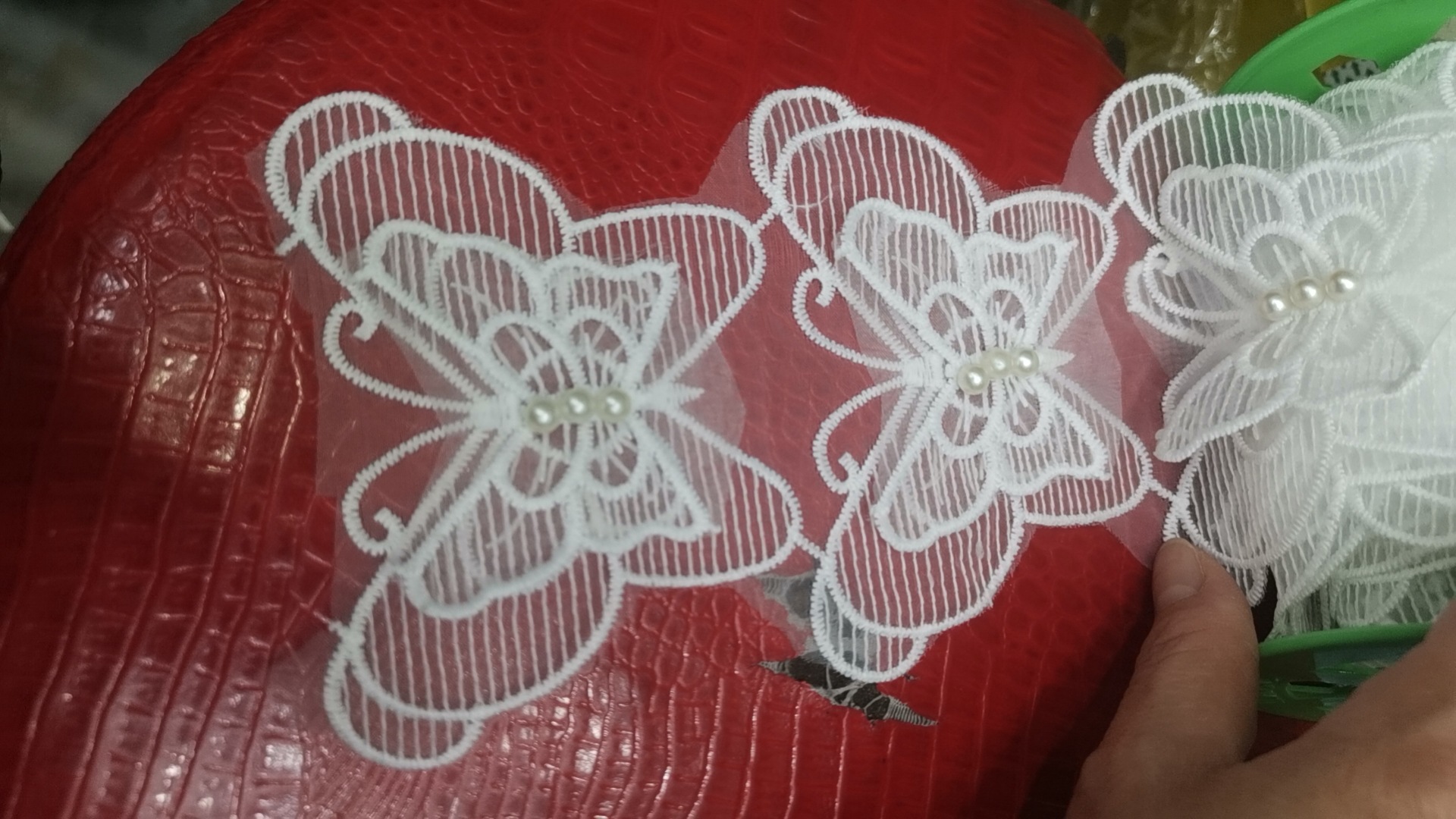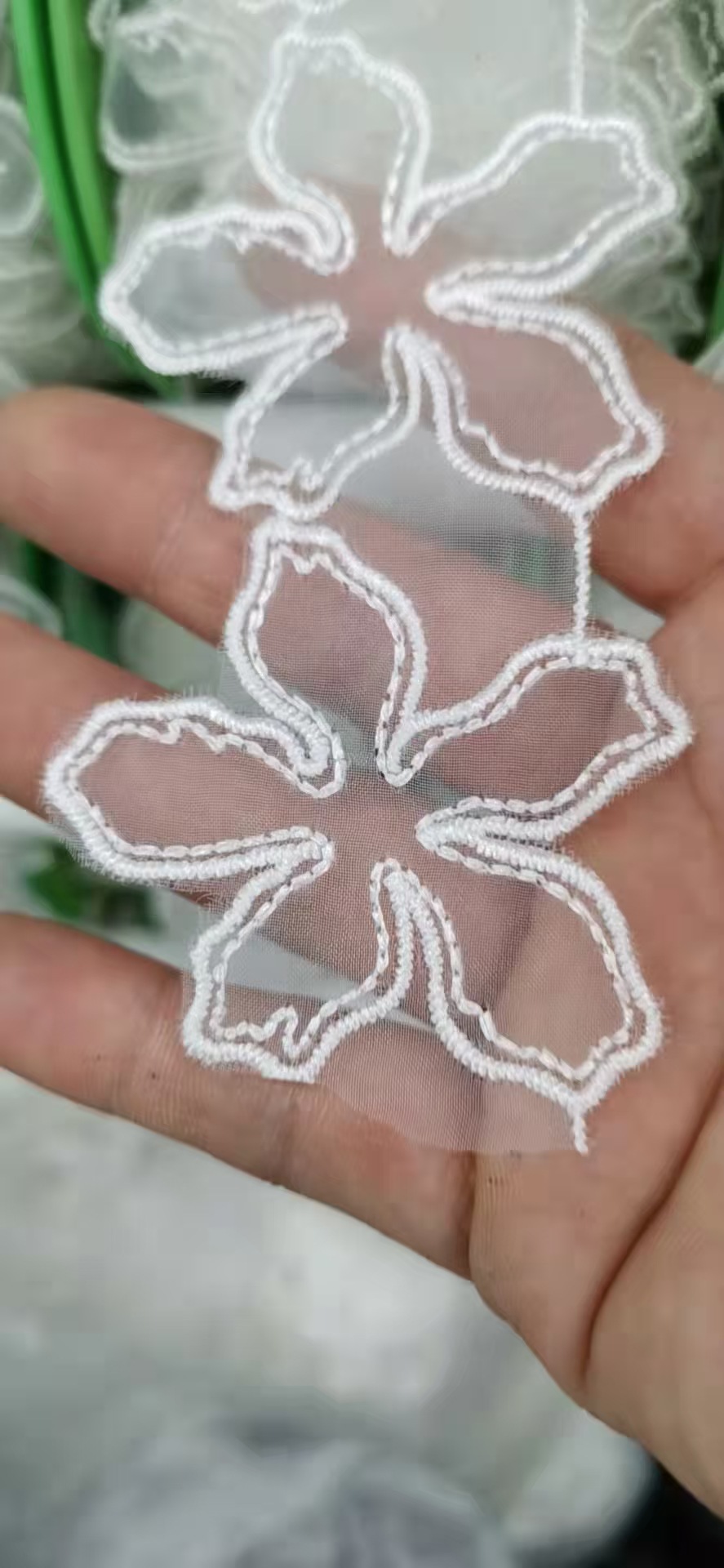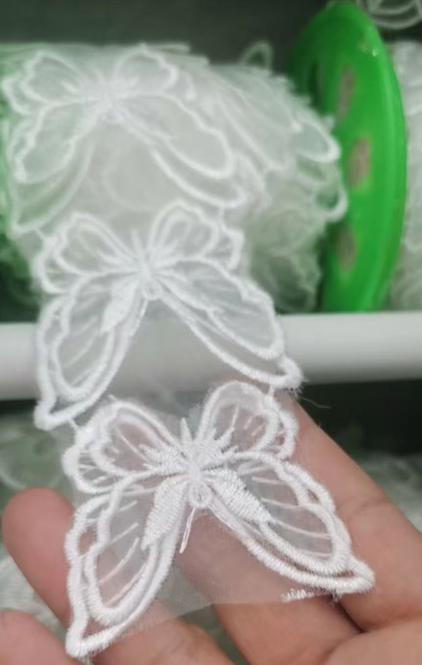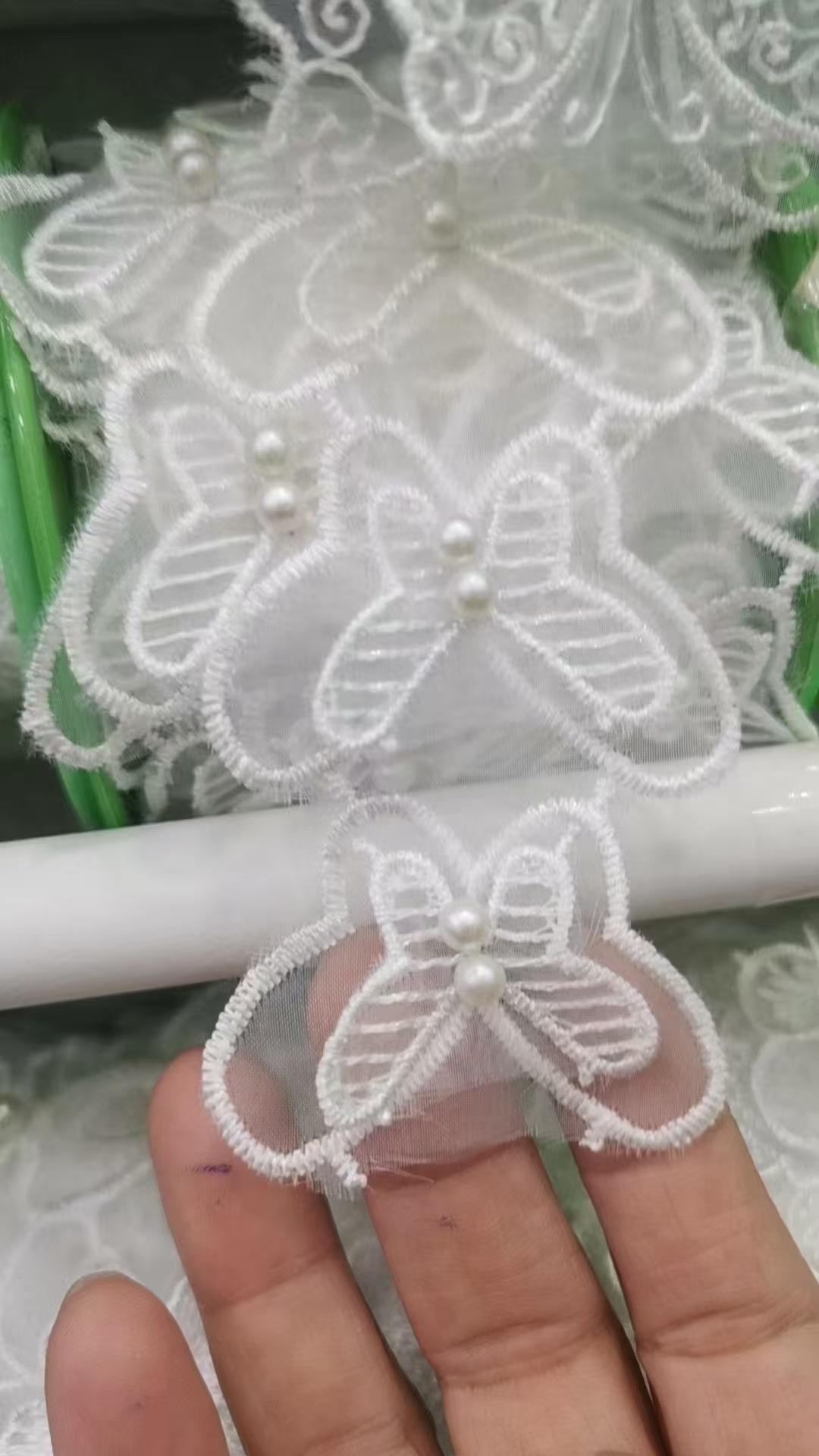 입체 레이스 꽃 흰색 Organza 레이스 진주 웨딩 드레스 커튼 DIY 수제 장식 액세서리