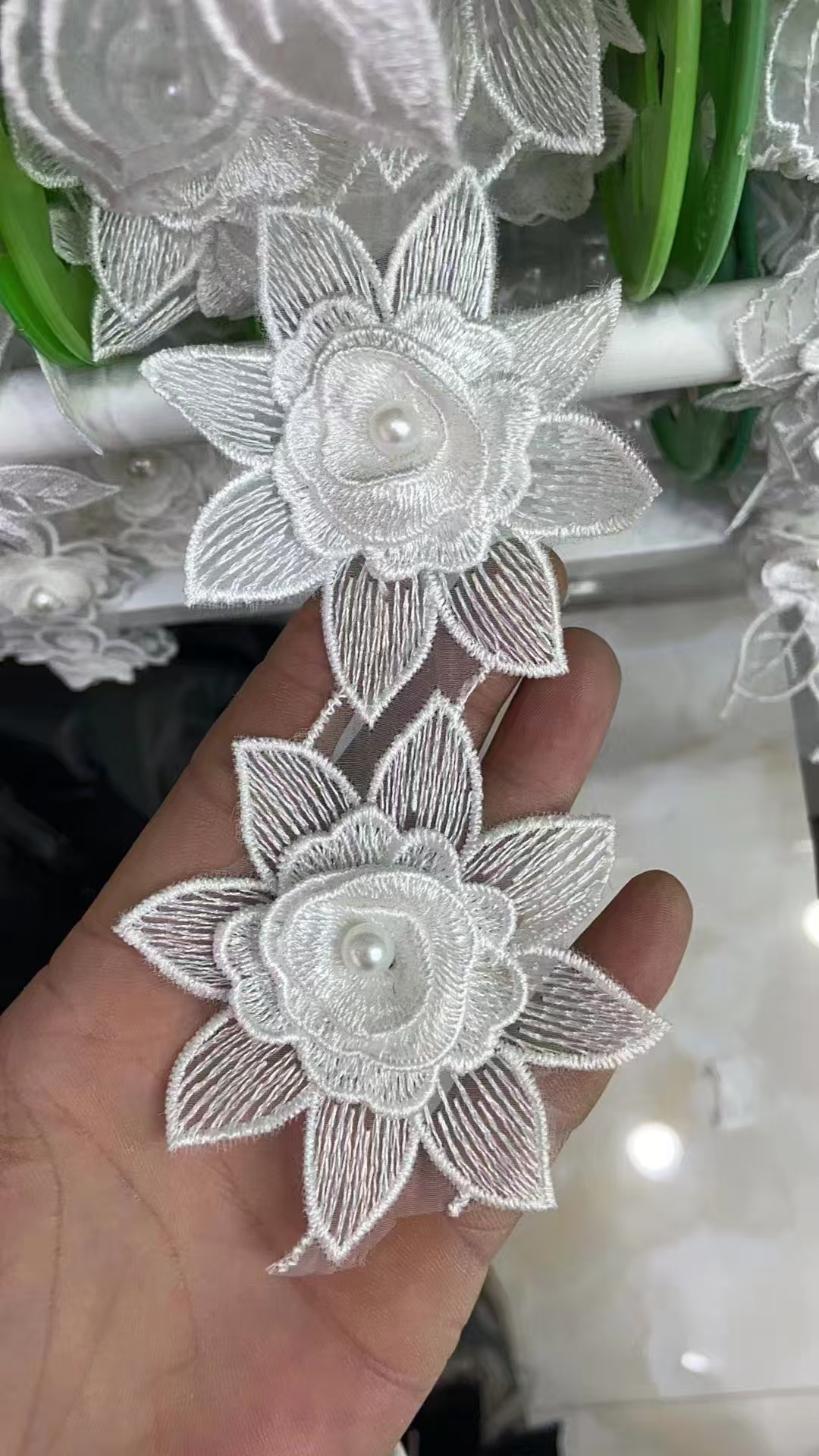 입체 레이스 꽃 흰색 Organza 레이스 진주 웨딩 드레스 커튼 DIY 수제 장식 액세서리스토어 가기