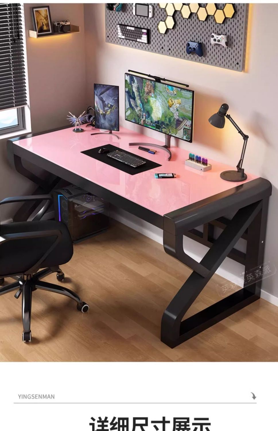 • 업그레이드 [굵게, 두껍게 업그레이드] 핑크색 유리 + 블랙 선반 [책장 포함] -