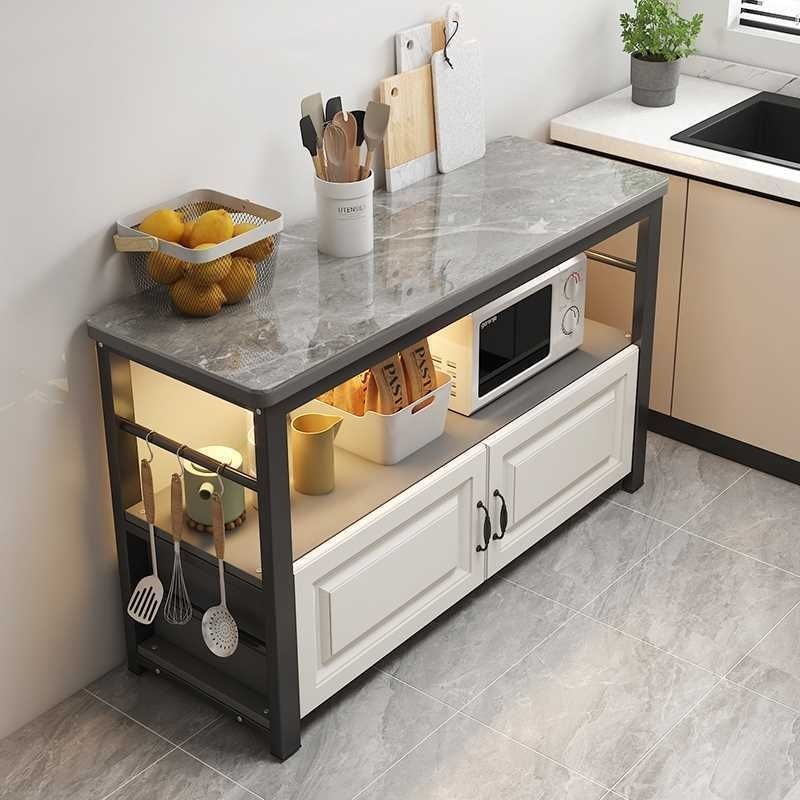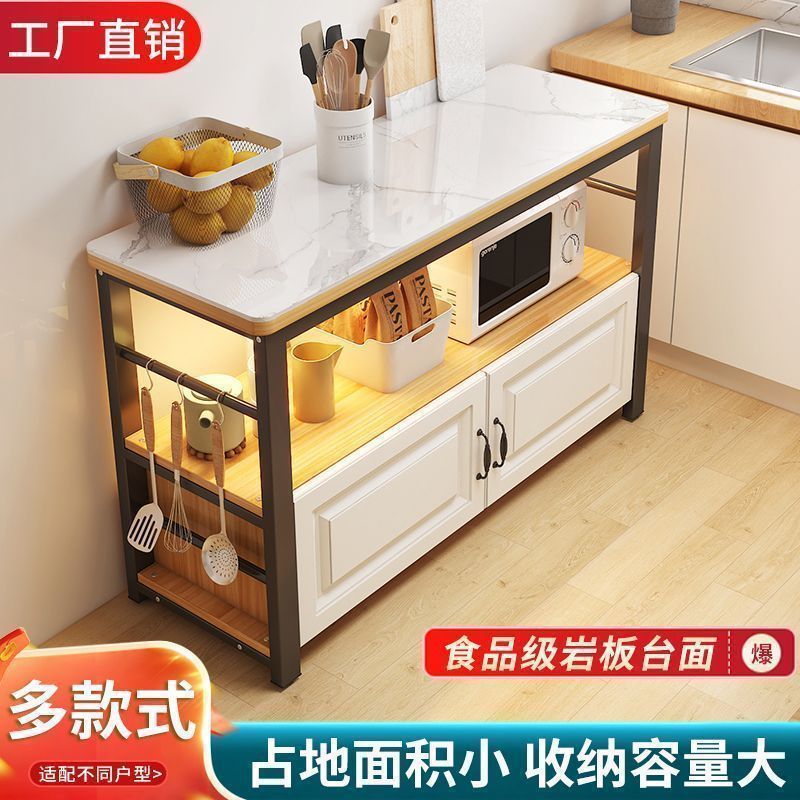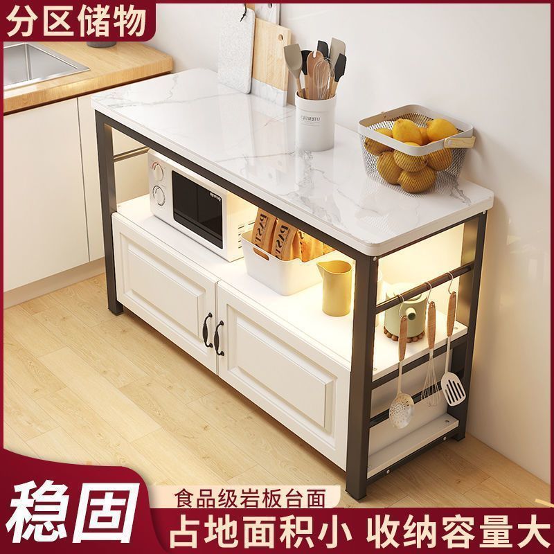 Mlo 주방 슬레이트 야채 절단 테이블 조작대 바닥 가정용 다층 수납 선반 전자 레인지 수납 캐비닛 테이블