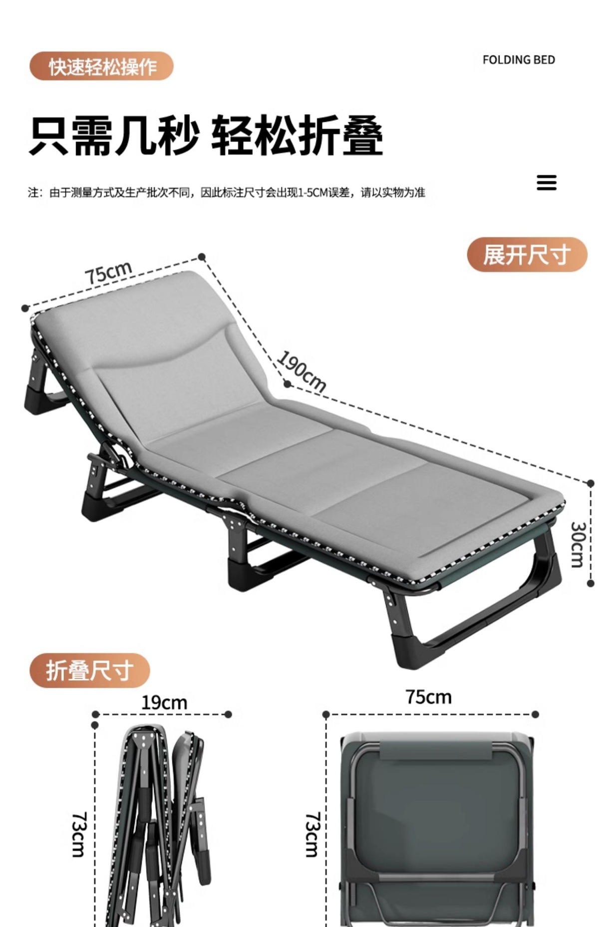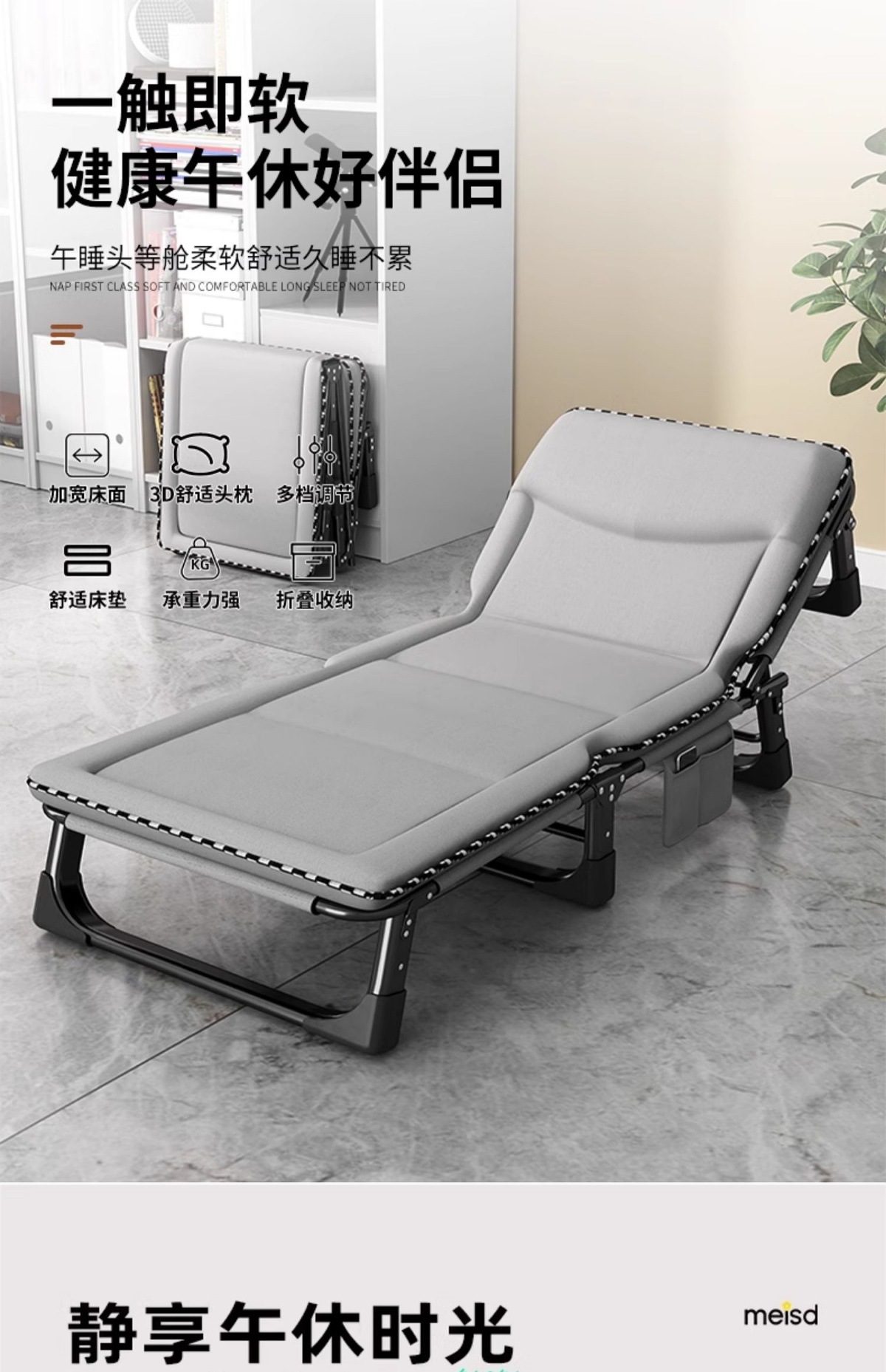 Sanmeng 접이식 침대 싱글 침대 사무실 점심 시간 유물 성인 싱글 안락 의자 병원 동행 휴대용 캠프 침대스토어 가기