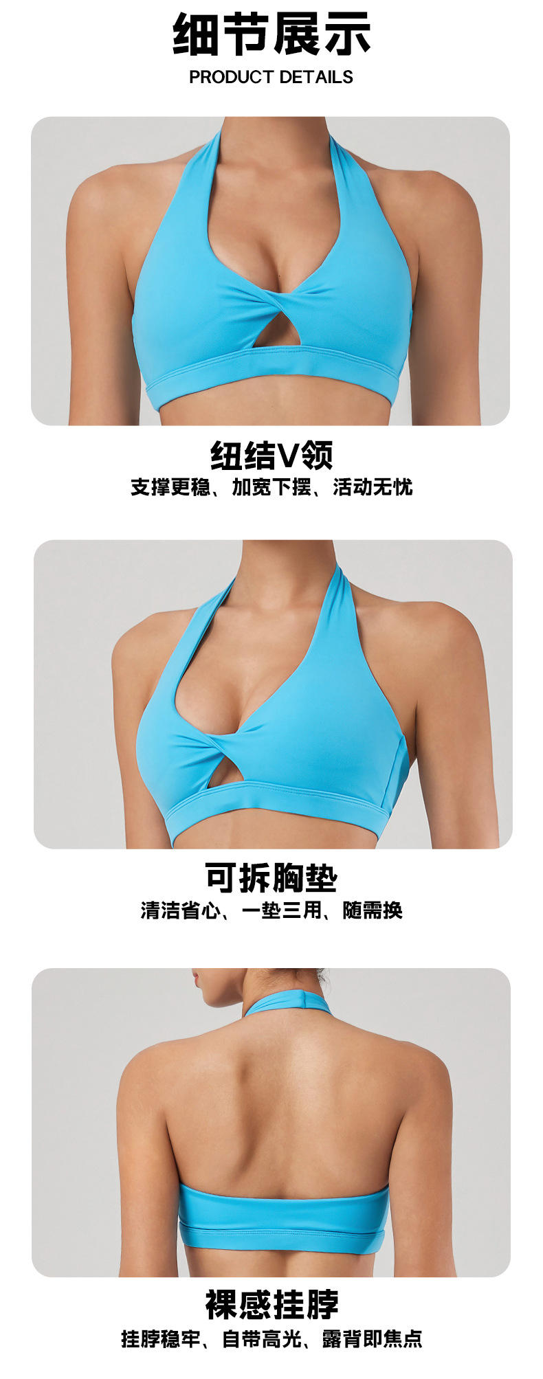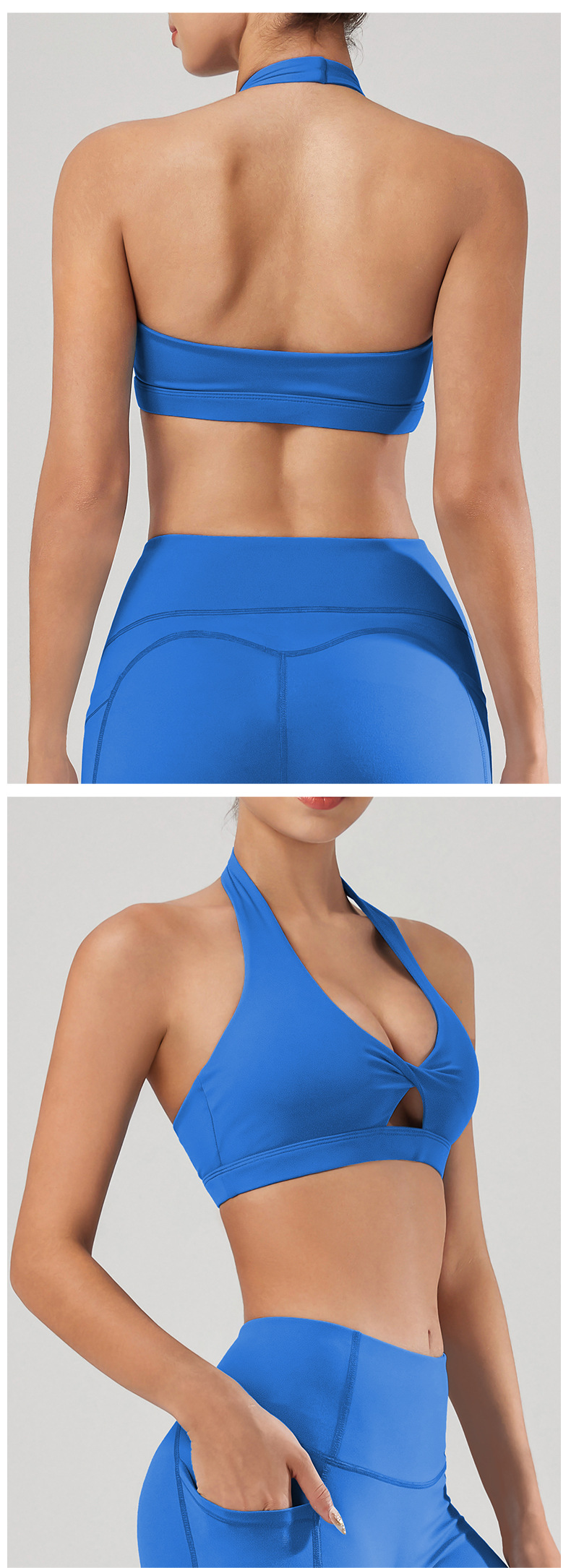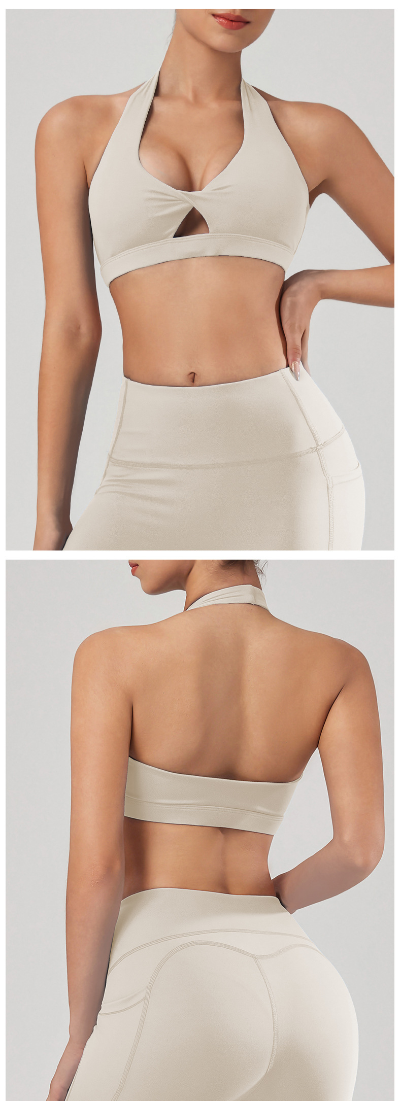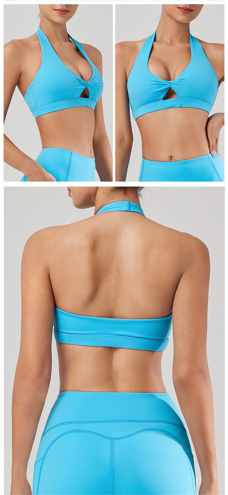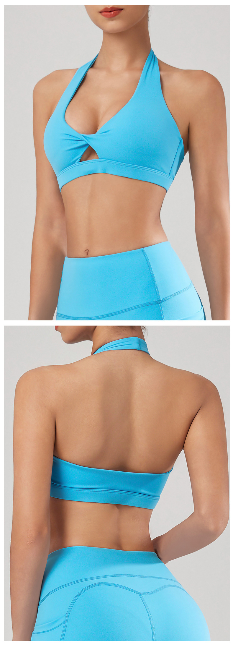 유럽과 미국의 홀터넥 스포츠 브라, 피트니스 브라, 아름다운 등, 누드 등이 노출된 요가복, 여성용 필라테스 상의