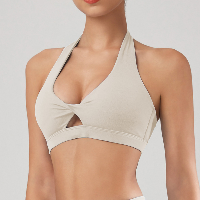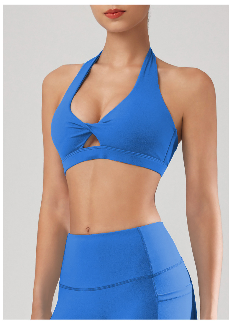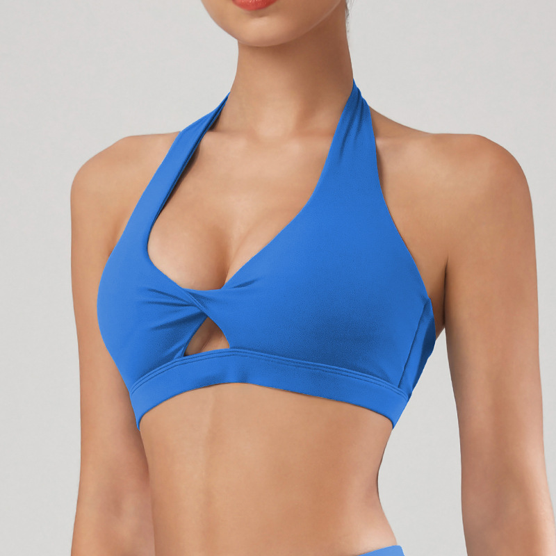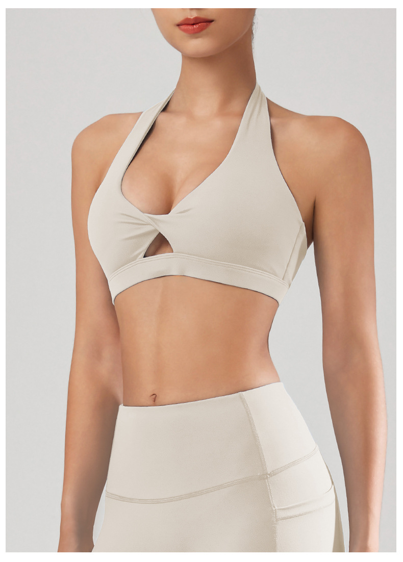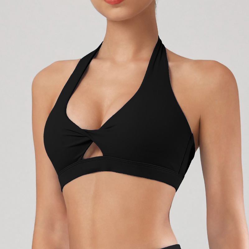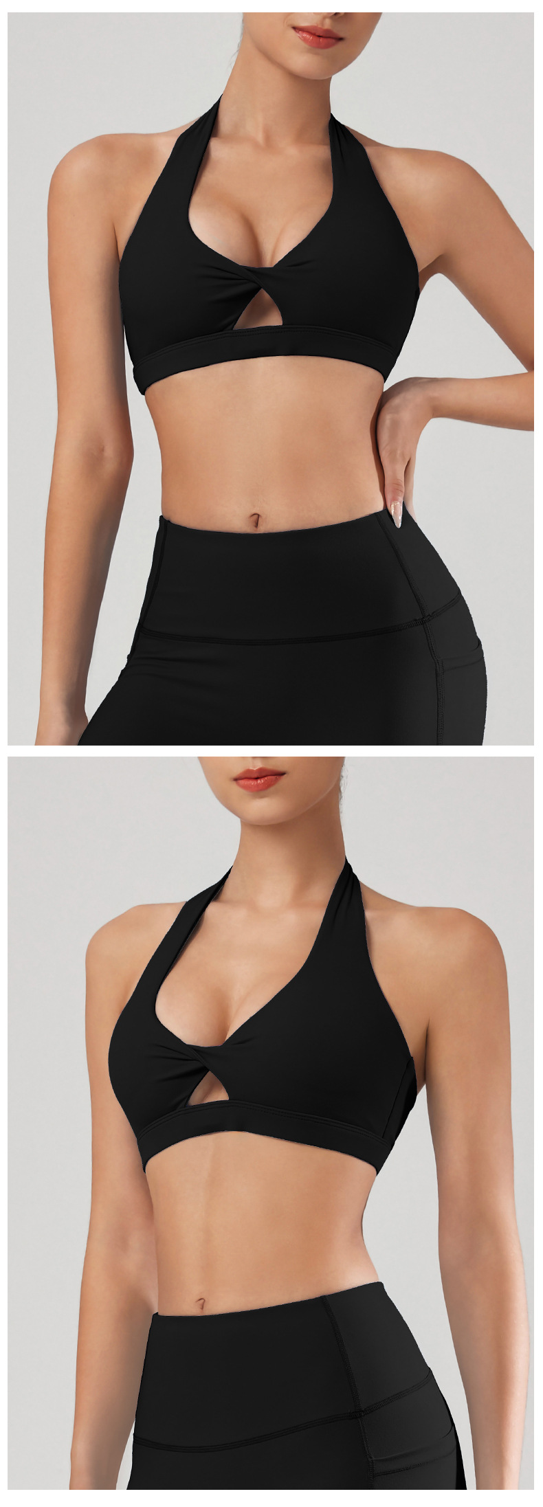 유럽과 미국의 홀터넥 스포츠 브라, 피트니스 브라, 아름다운 등, 누드 등이 노출된 요가복, 여성용 필라테스 상의
