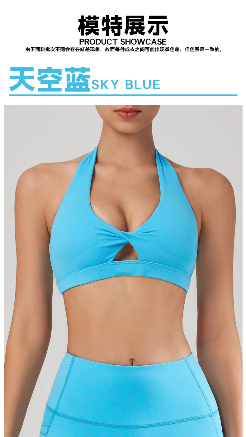 유럽과 미국의 홀터넥 스포츠 브라, 피트니스 브라, 아름다운 등, 누드 등이 노출된 요가복, 여성용 필라테스 상의스토어 가기