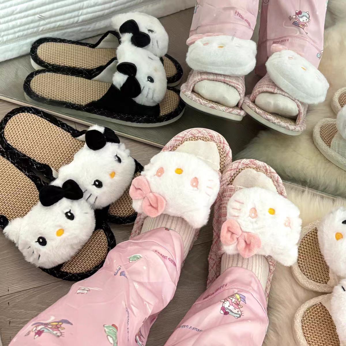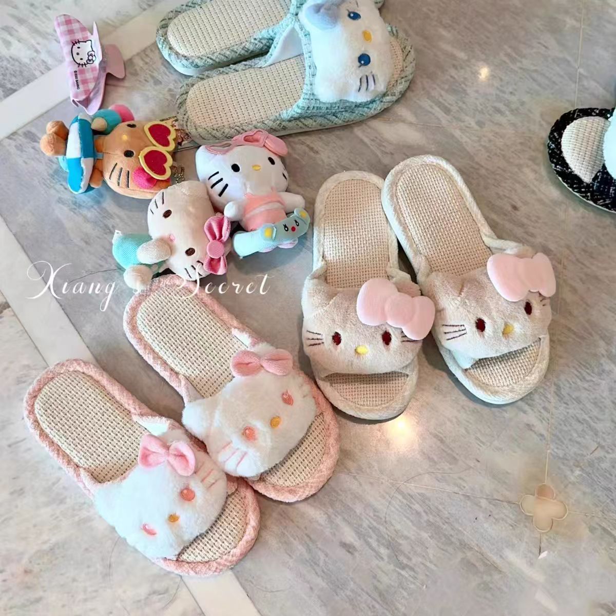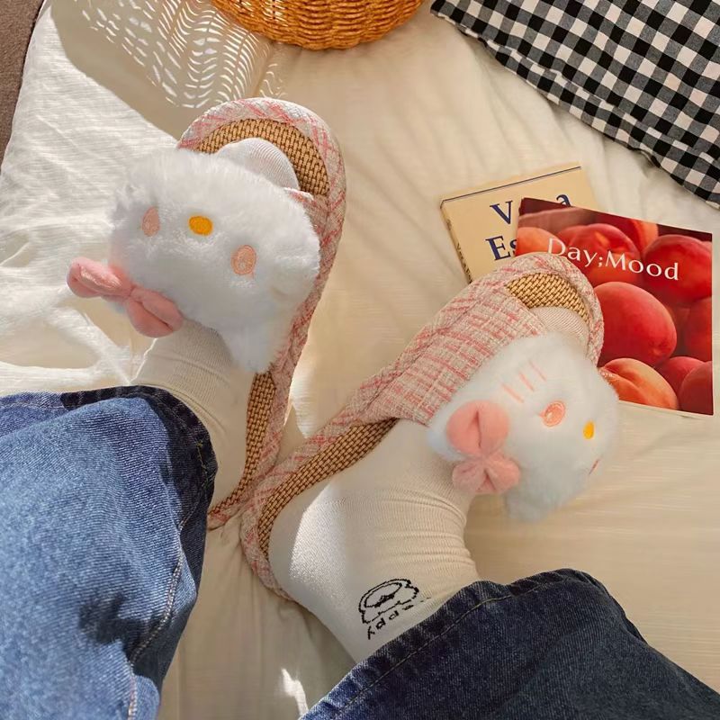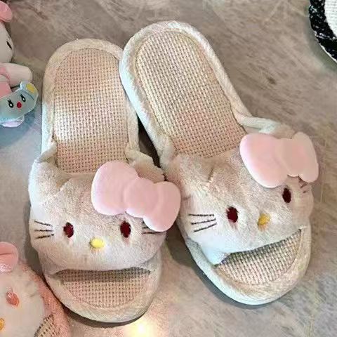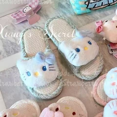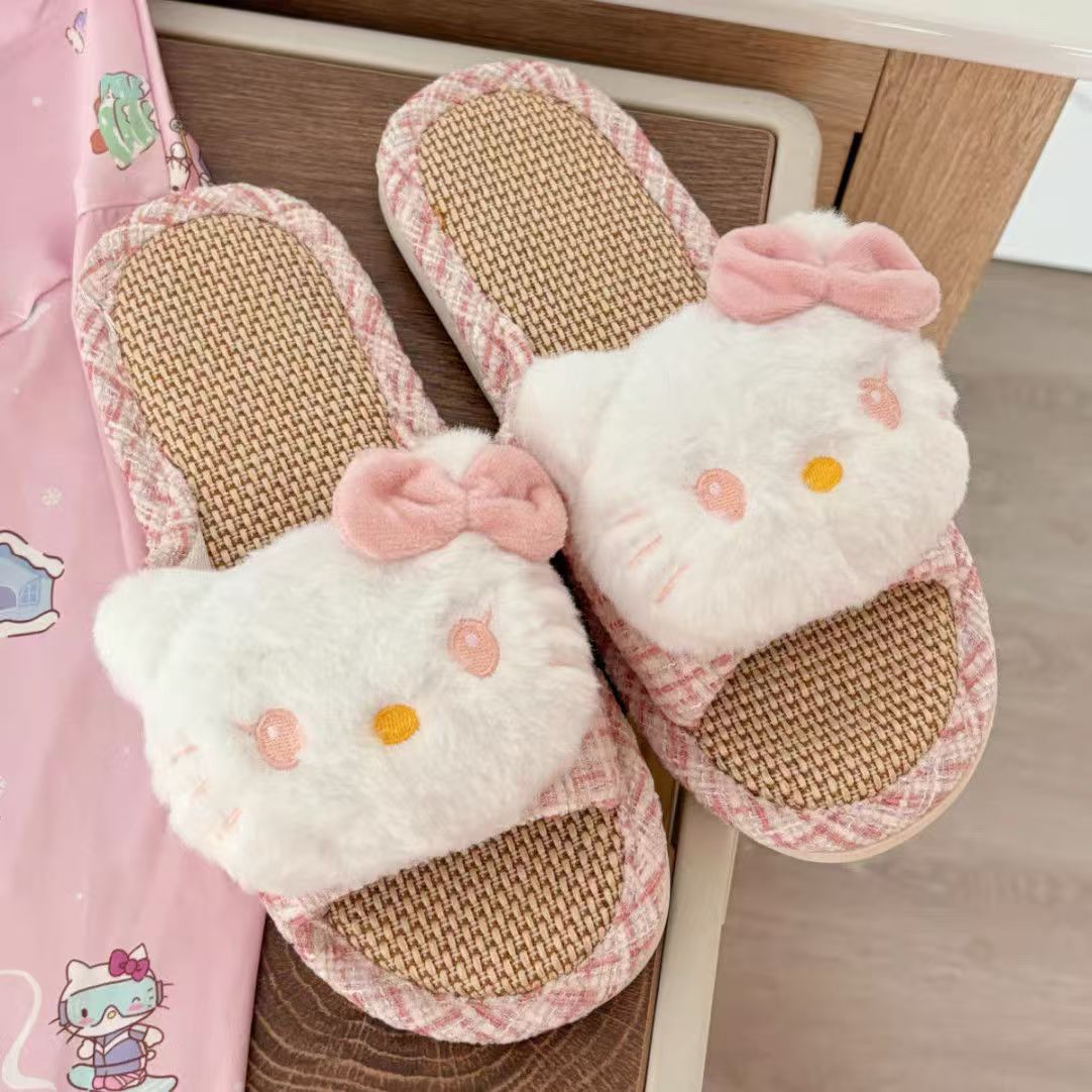 집에서 사용할 수 있는 귀여운 일본식 린넨 키티 패브릭 매트 슬리퍼, 통기성, 땀 흡수성, 미끄럼 방지 슬리퍼스토어 가기
