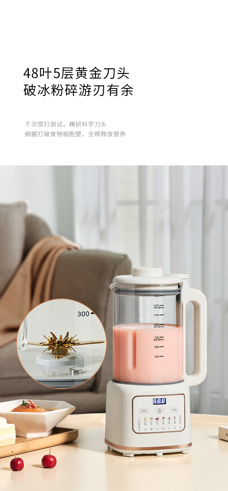 • 유리 라이너 1800ML [48페이지 황금 티타늄 칼 + 항균 티타늄 도금 섀시]