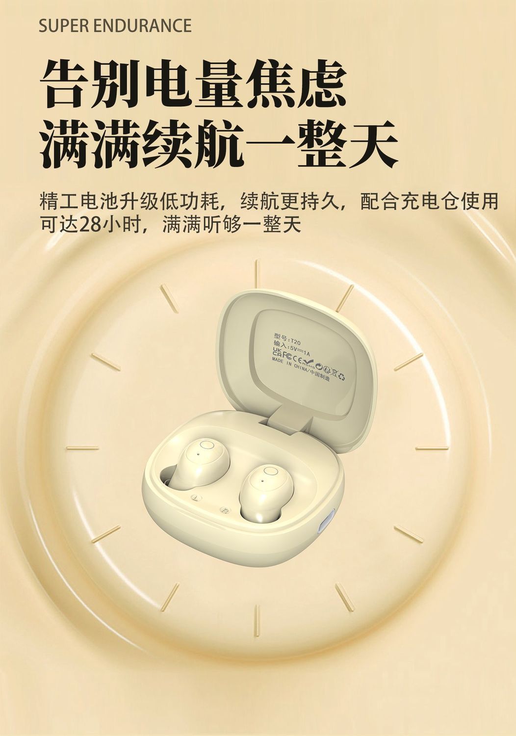 T20 수면 블루투스 헤드셋 인이어 미니 초장기 배터리 수명 바이노럴 소음 감소 보이지 않는 무압력 귀 착용스토어 가기