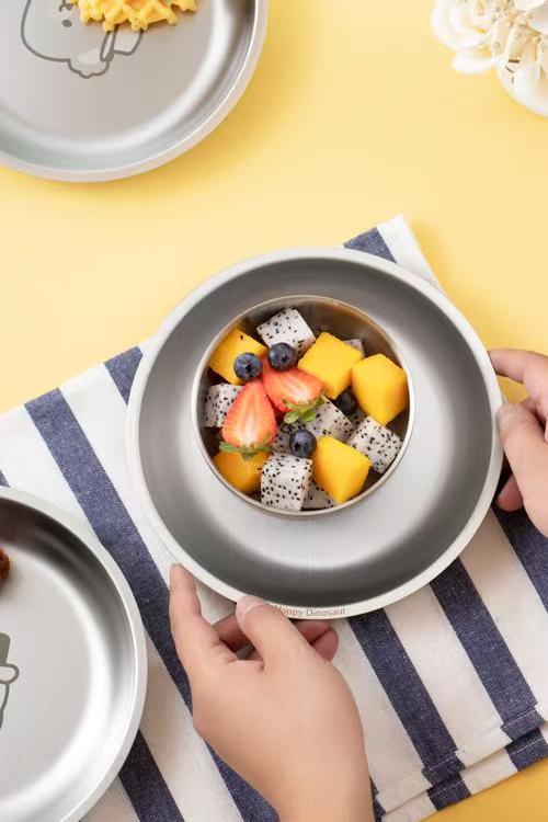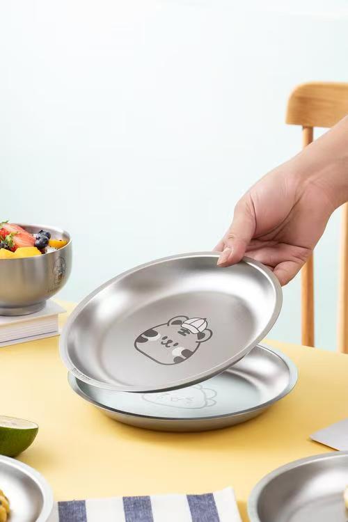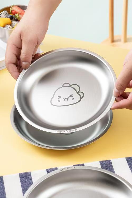 304 스테인레스 스틸 만화 접시 어린이 귀여운 패턴 접시 식품 등급 상업용 접시 라운드 접시 아기 고기와 야채 접시스토어 가기