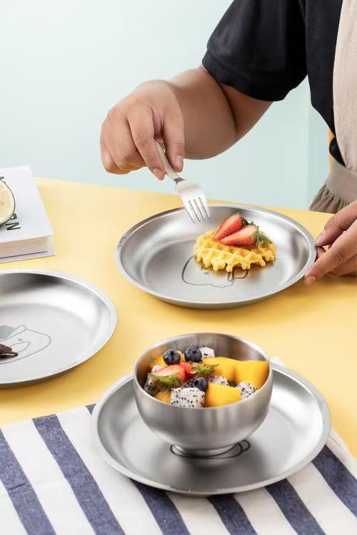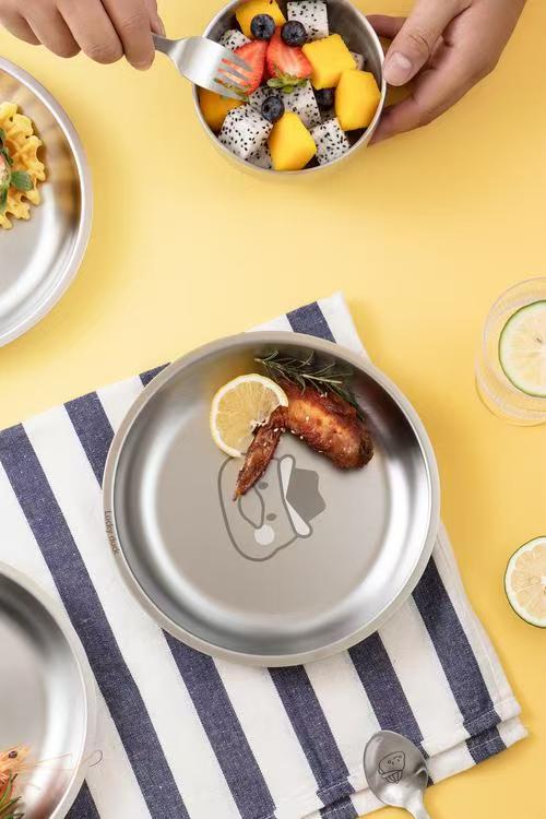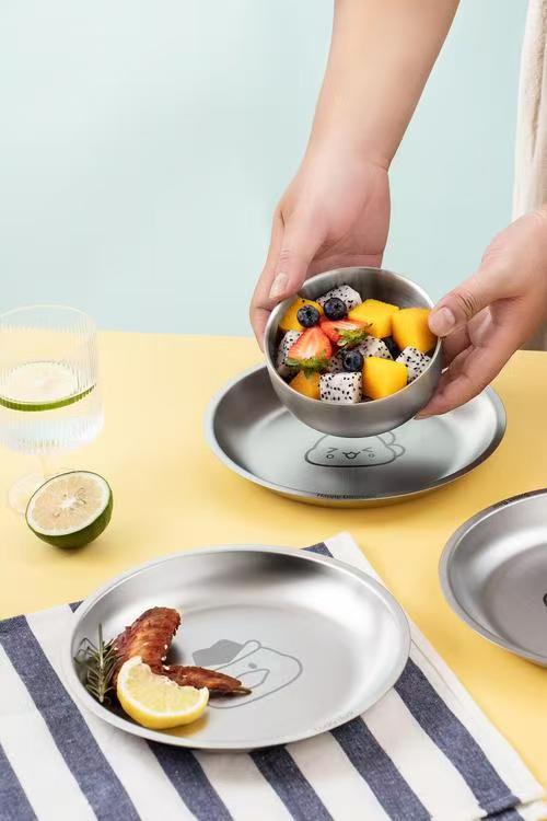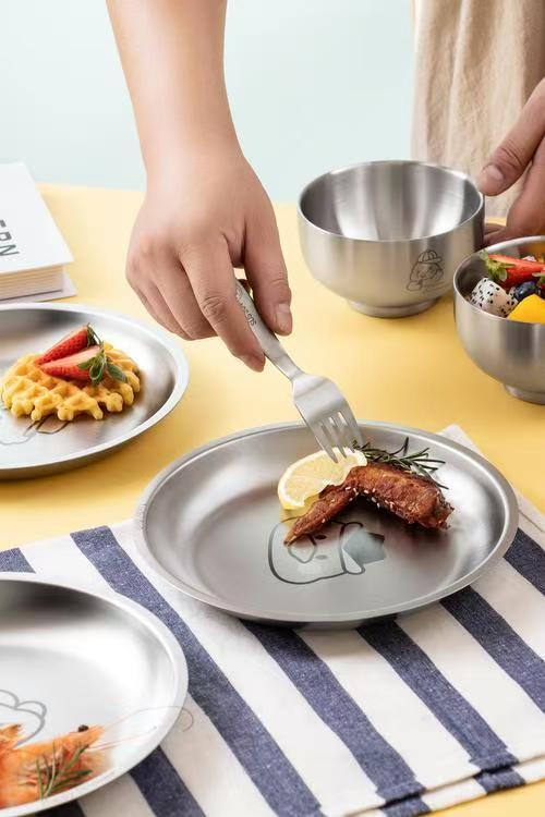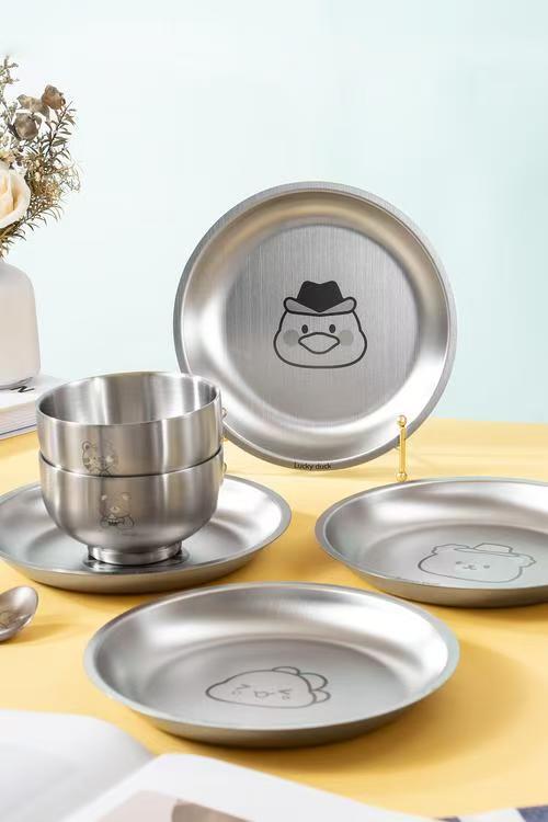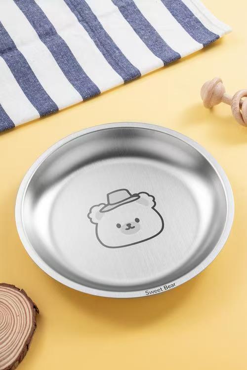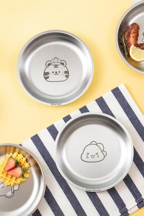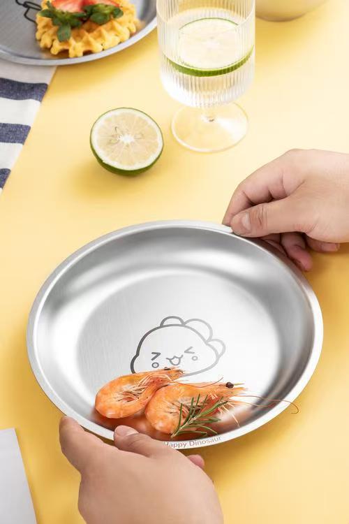 304 스테인레스 스틸 만화 접시 어린이 귀여운 패턴 접시 식품 등급 상업용 접시 라운드 접시 아기 고기와 야채 접시