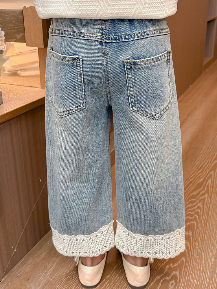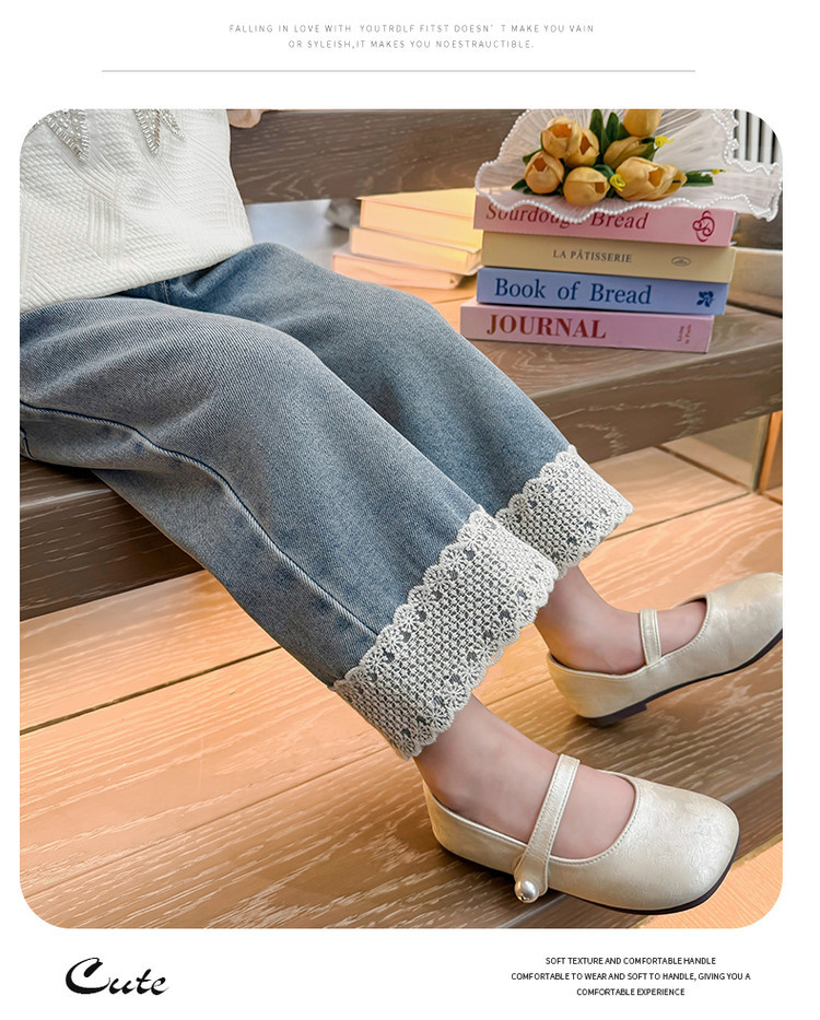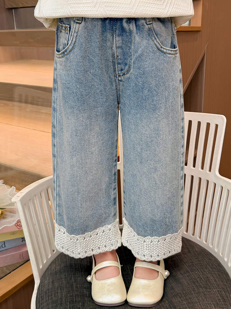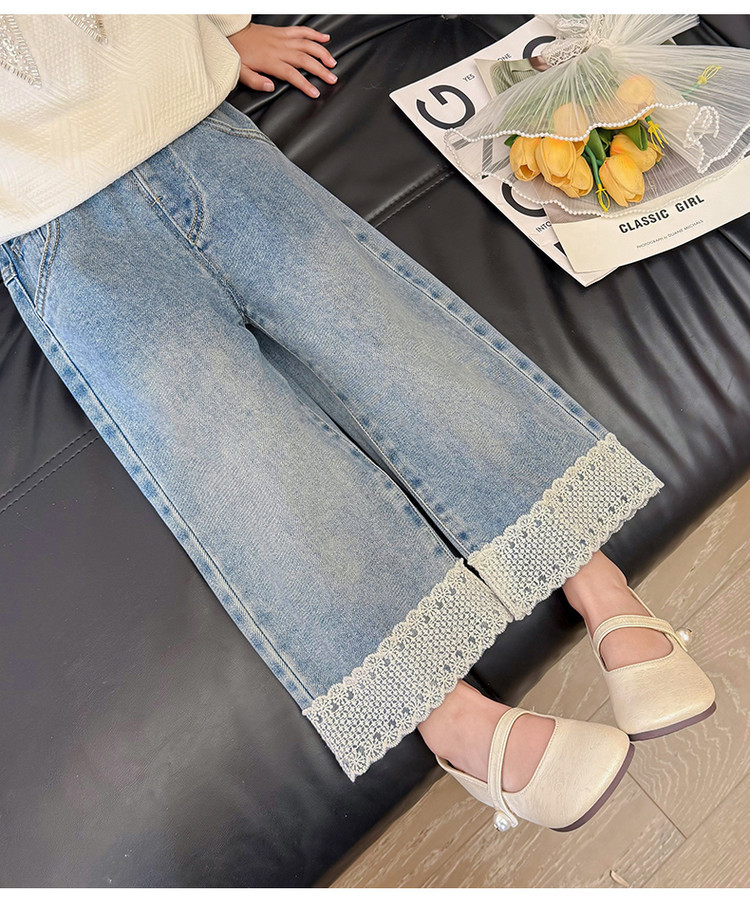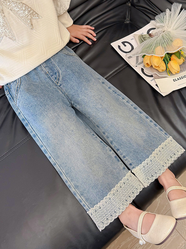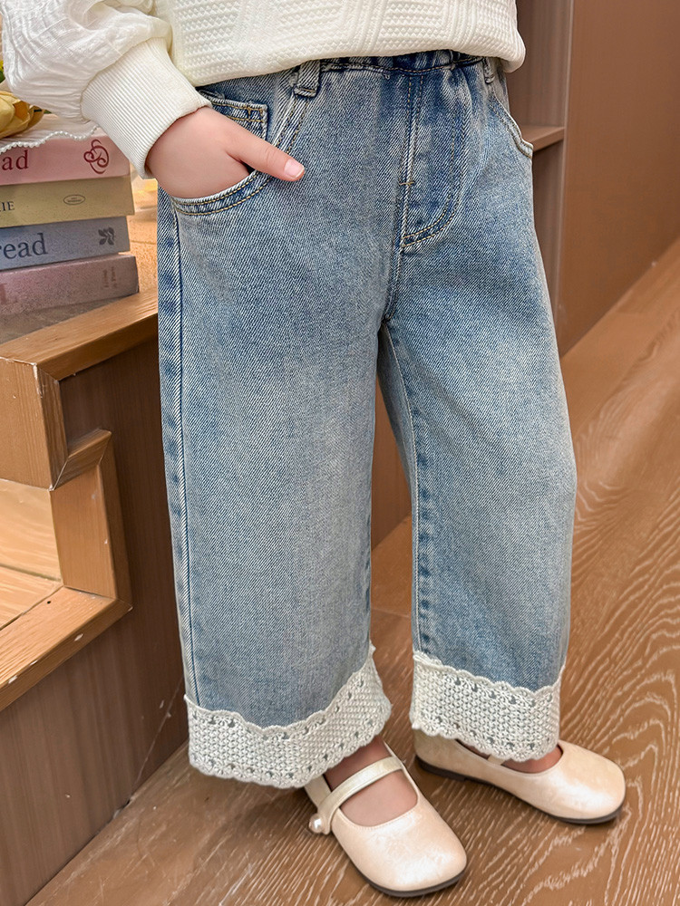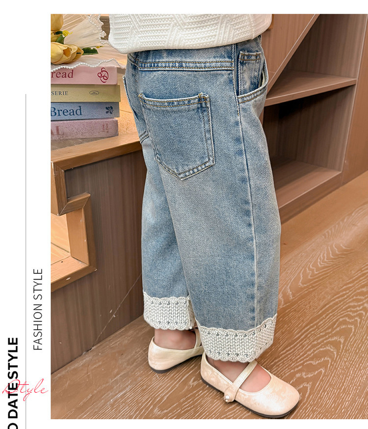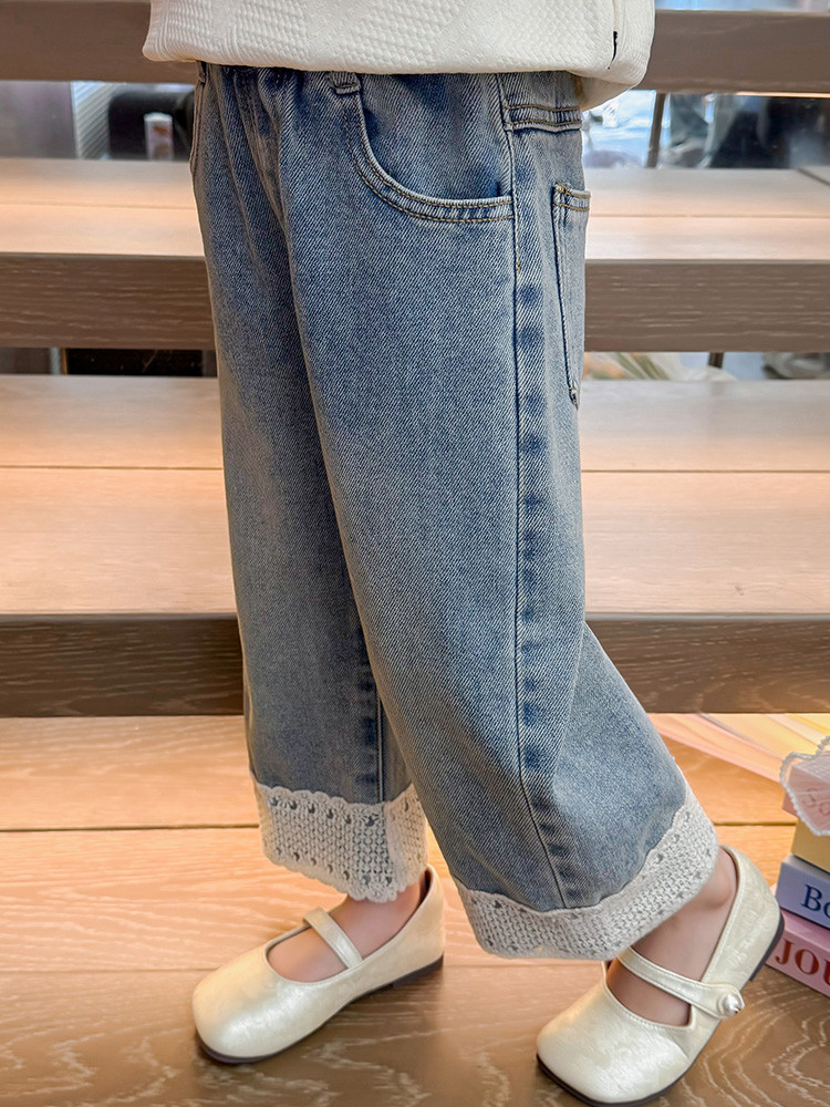 여아 한국 레이스 와이드 팬츠 2025 봄 가을 유행 아동 청바지 가을 루즈 캐주얼 바지스토어 가기