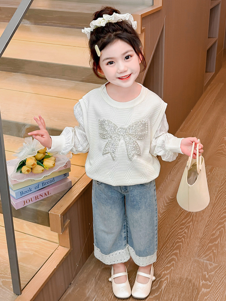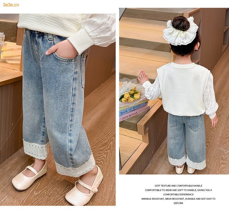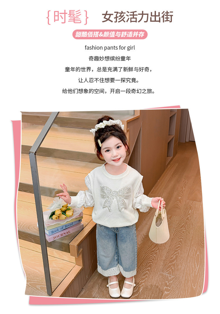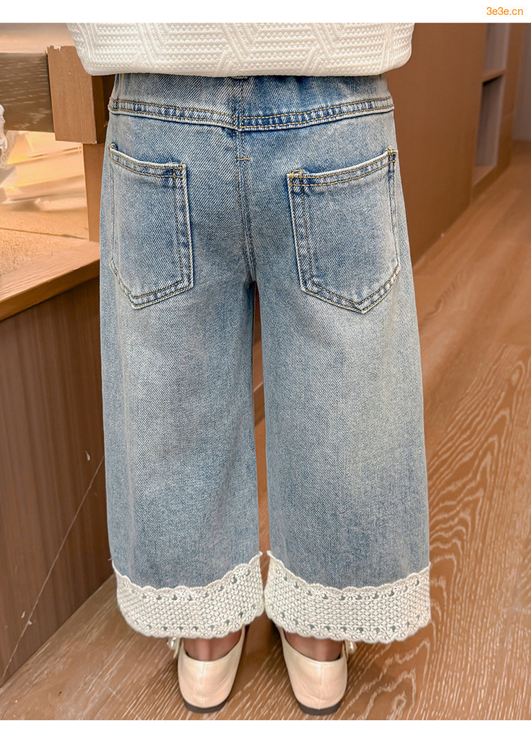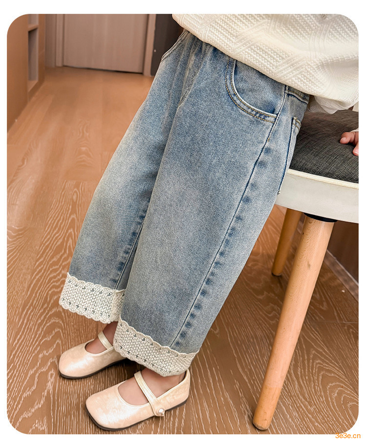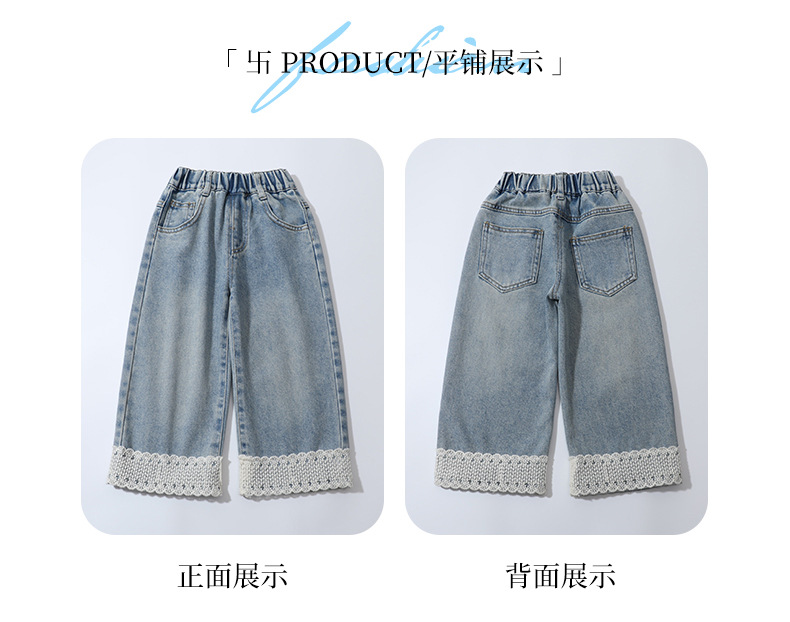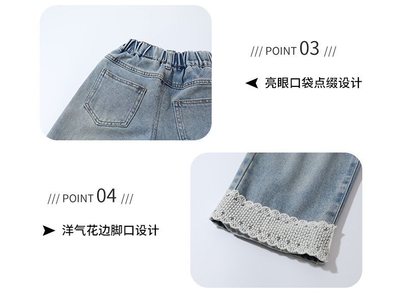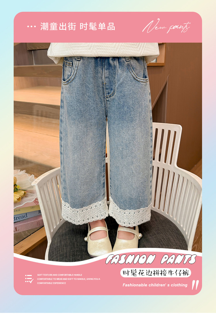 여아 한국 레이스 와이드 팬츠 2025 봄 가을 유행 아동 청바지 가을 루즈 캐주얼 바지스토어 가기
