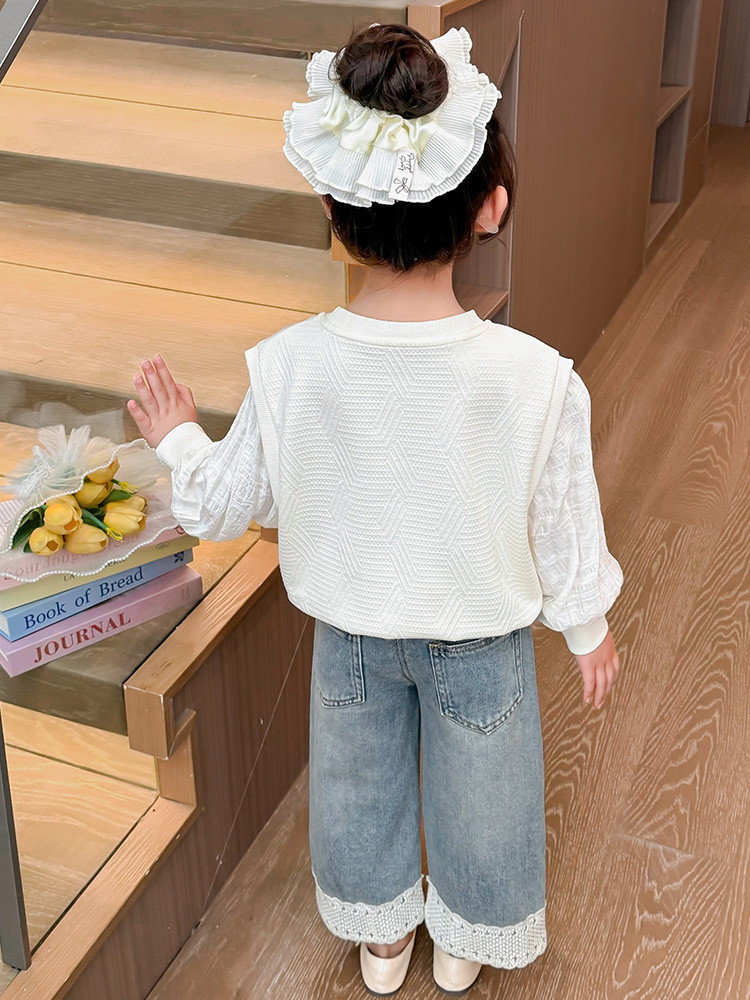 여아 한국 레이스 와이드 팬츠 2025 봄 가을 유행 아동 청바지 가을 루즈 캐주얼 바지