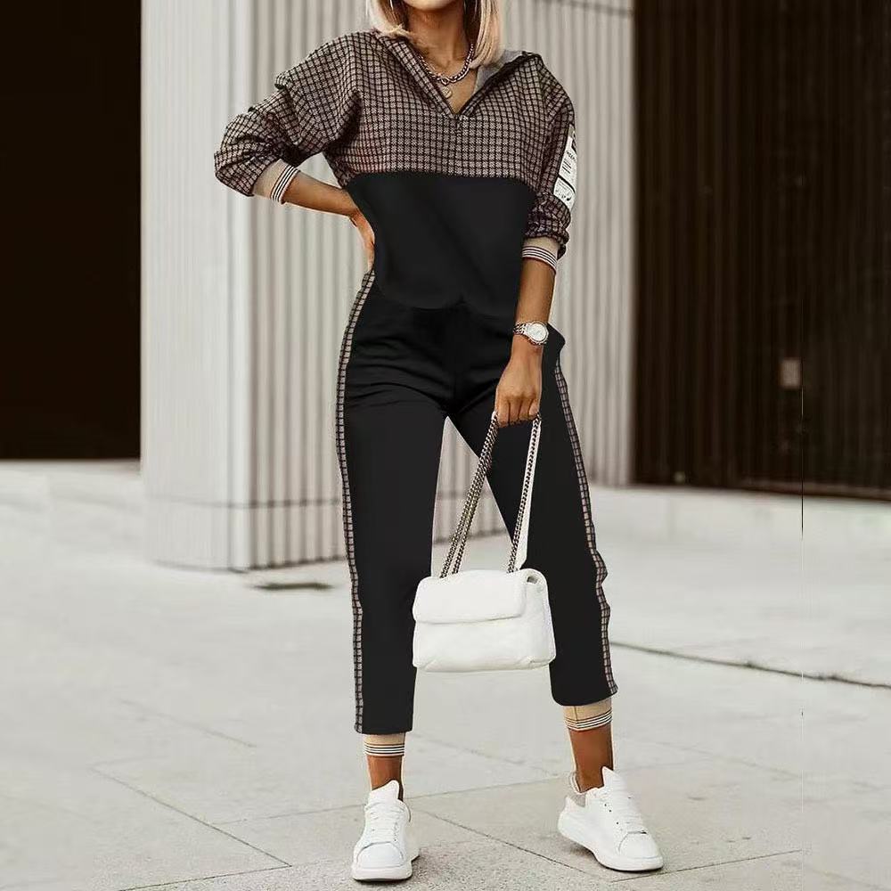 Z005 유럽과 미국 의류 아마존 국경 간 인기 인쇄 긴팔 바지 정장 고품질 스웨트 셔츠 정장