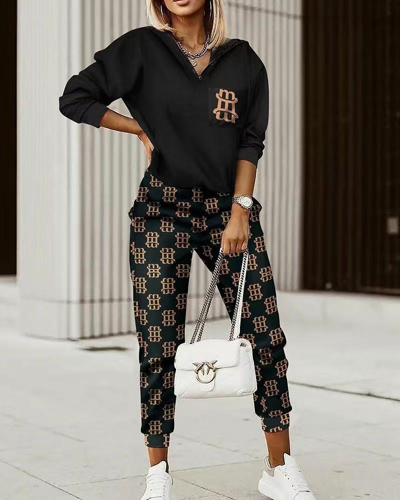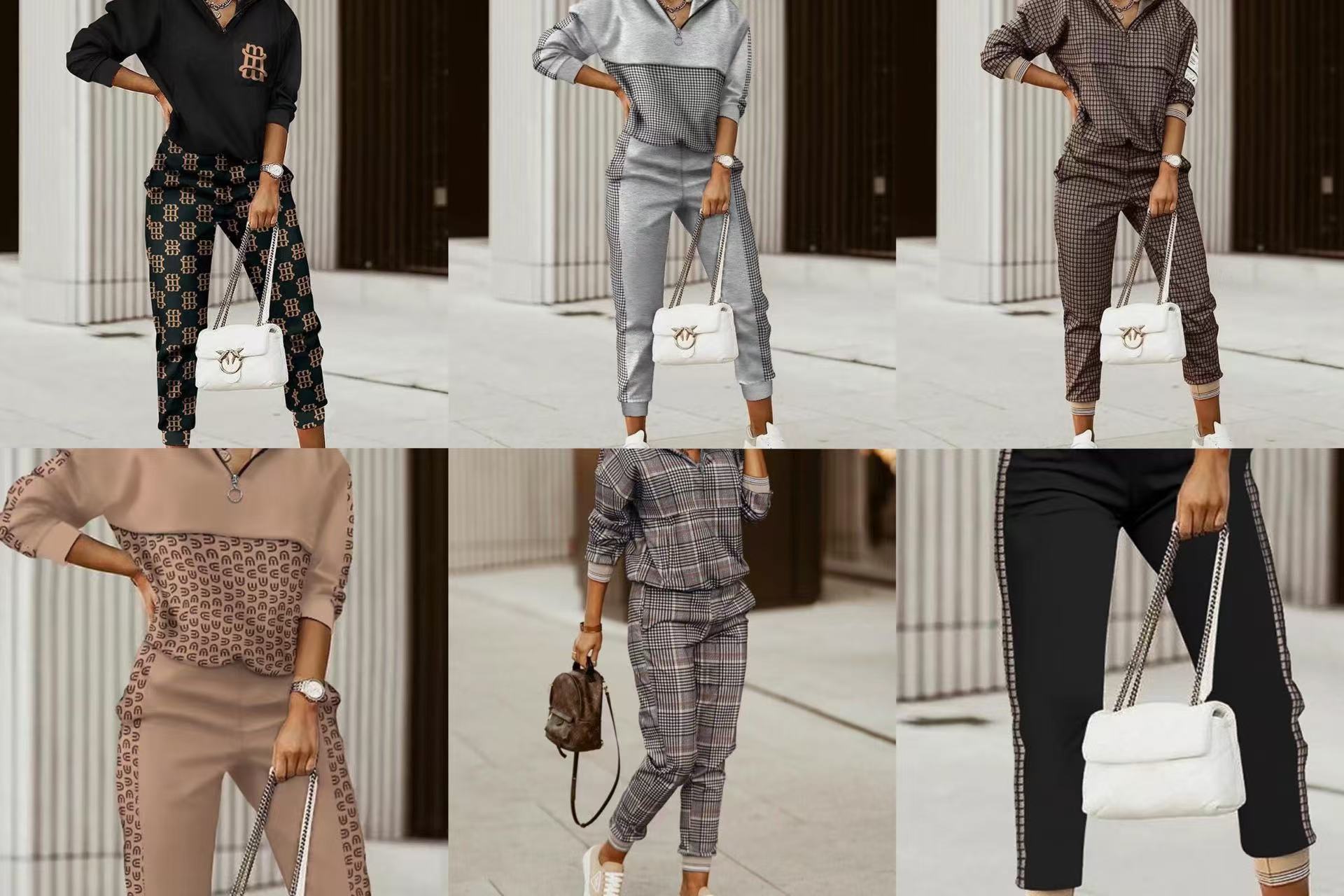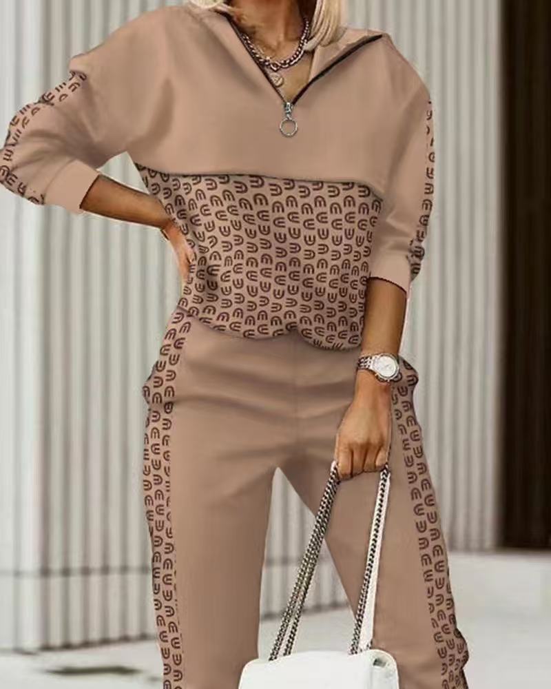 Z005 유럽과 미국 의류 아마존 국경 간 인기 인쇄 긴팔 바지 정장 고품질 스웨트 셔츠 정장스토어 가기