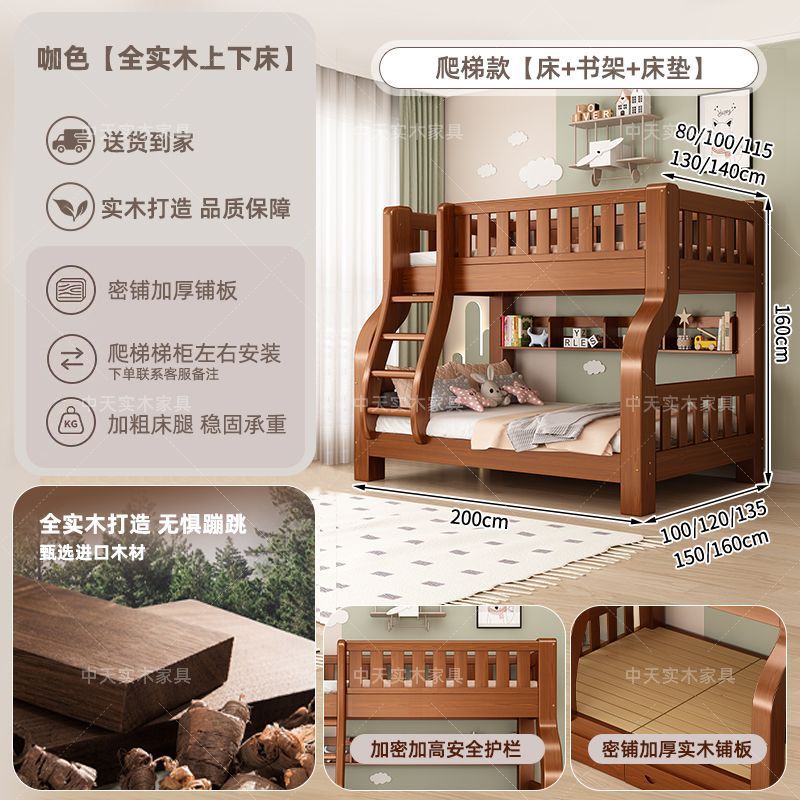 • 브라운 사다리 침대 + 책장 + 서랍 + 매트리스 - 위층 ✦ ✦