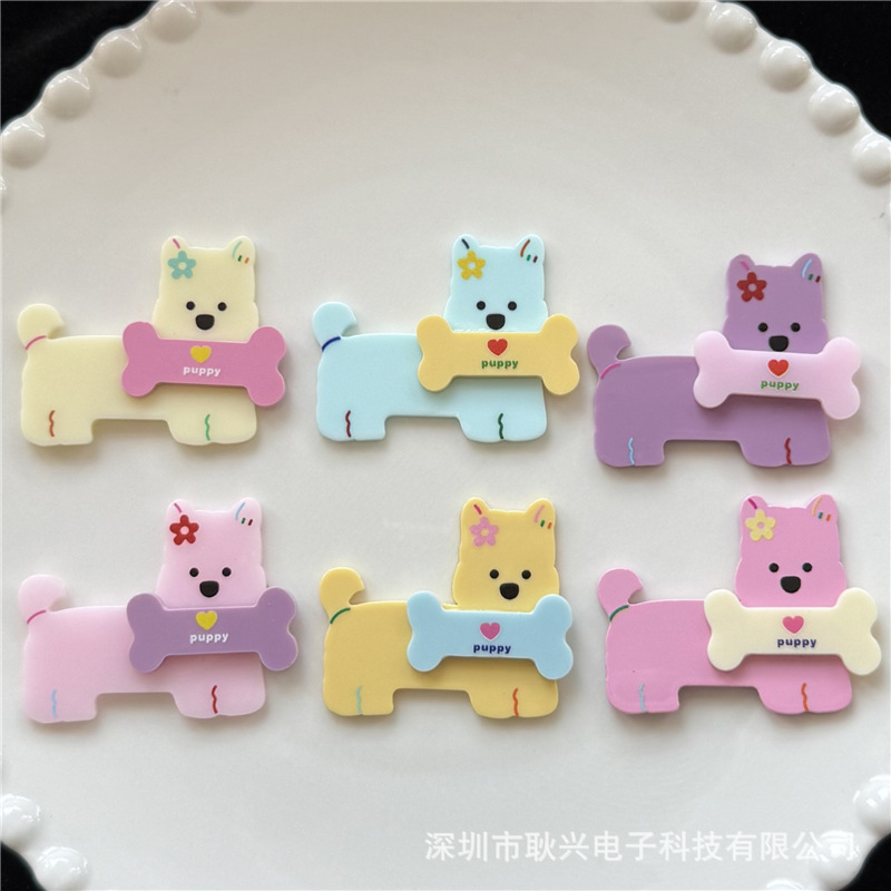 귀여운 캔디 컬러 더블 레이어 뼈 강아지 아크릴 액세서리 머리핀 머리 장식 diy 휴대 전화 케이스 장식 나막신