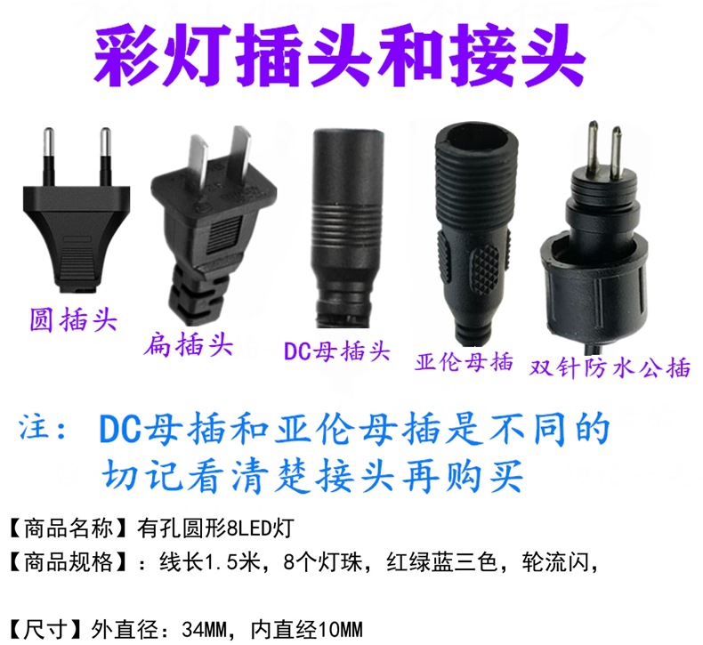 • 220V 전원 공급 장치 + 12V 12led 컬러 조명(이중 핀 수 플러그)