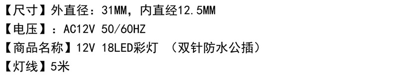 • 12V 18led 랜턴(전원 공급 장치는 포함되어 있지 않음)