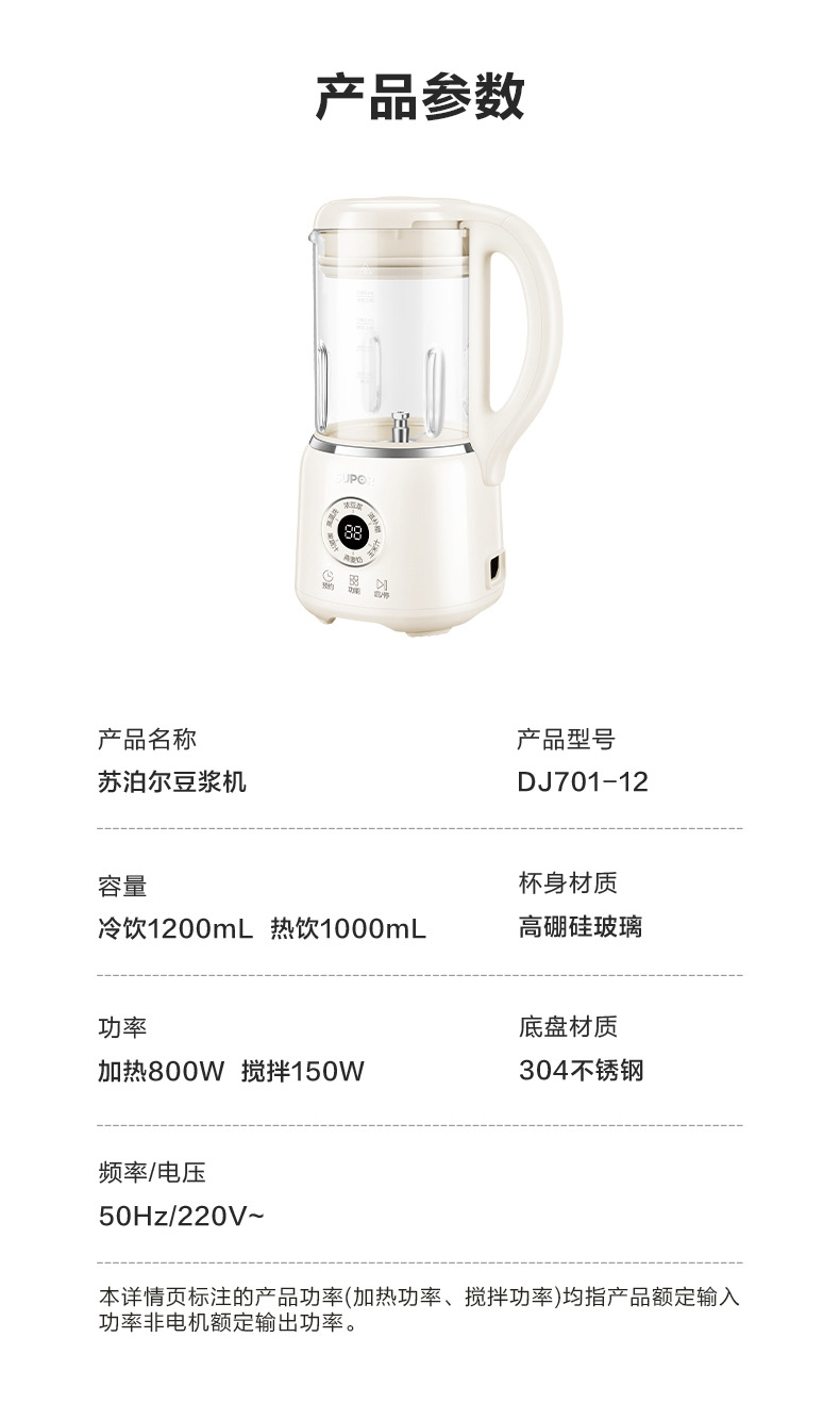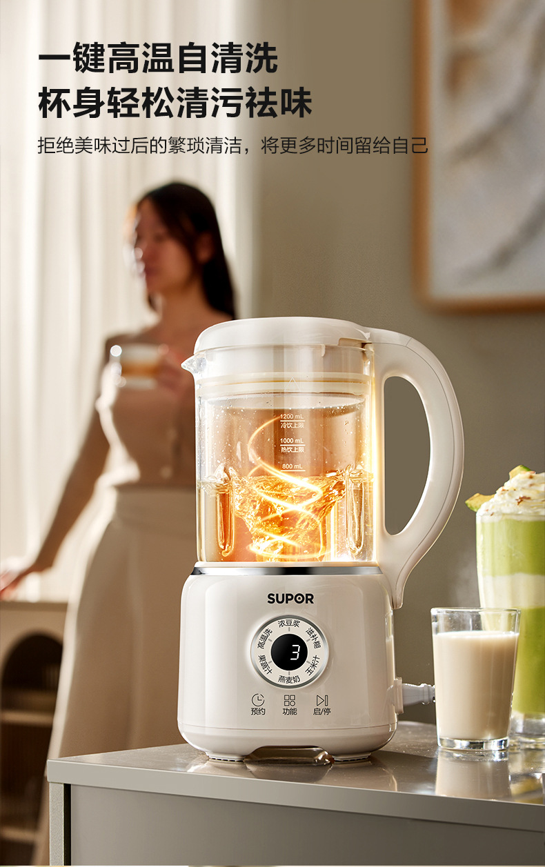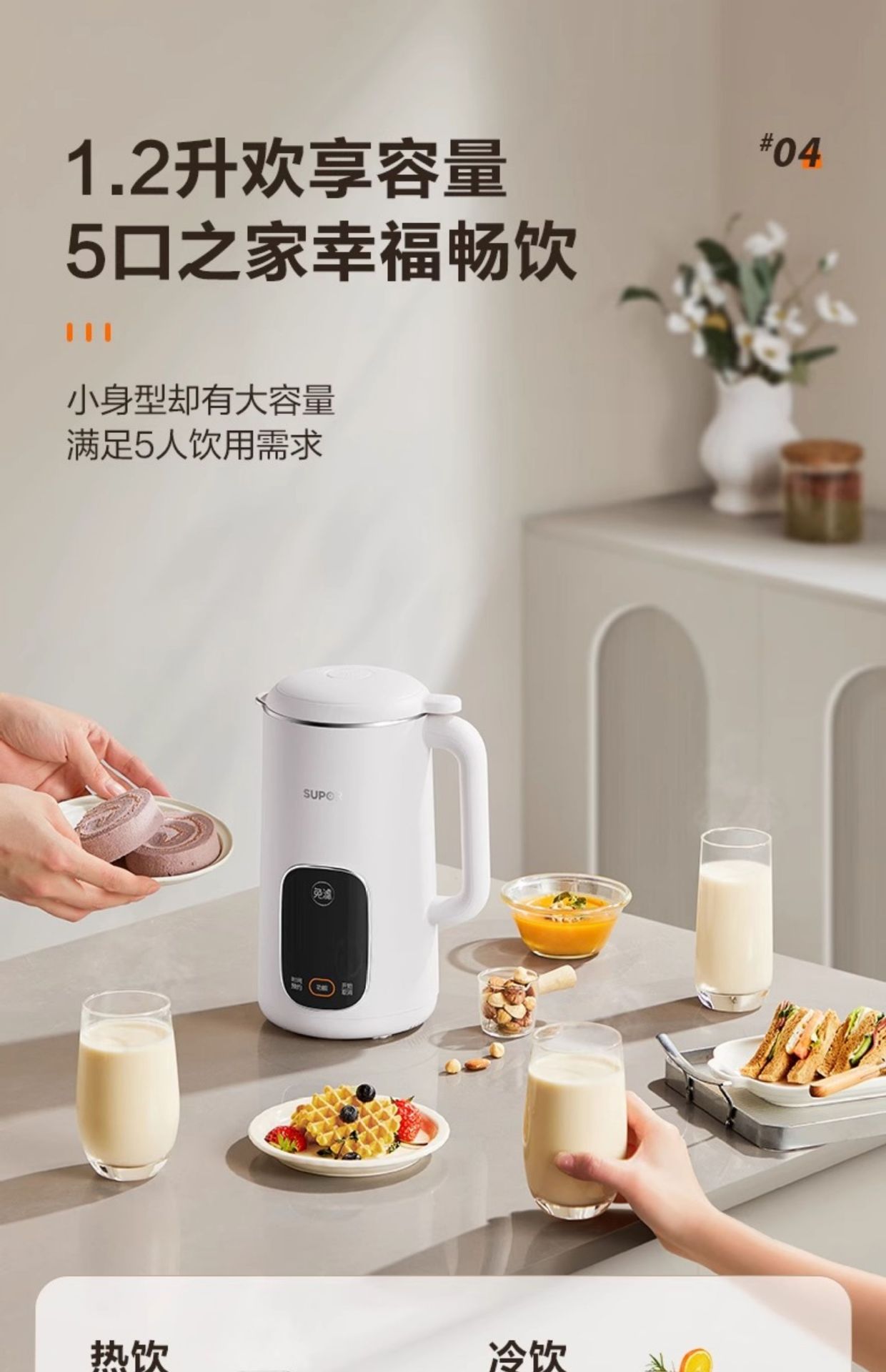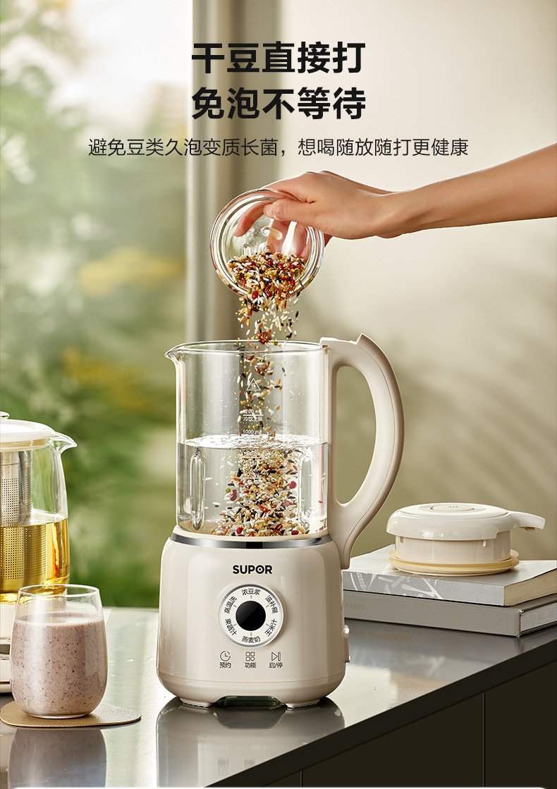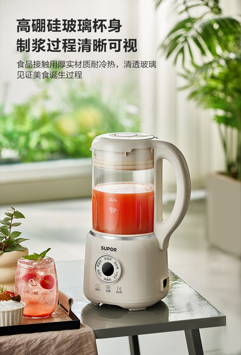 Supor 탈착식 및 세척 가능한 벽 파괴 두유 기계 가정용 자동 요리 기계 다기능 필터 프리 및 조리 프리 DJ701-12