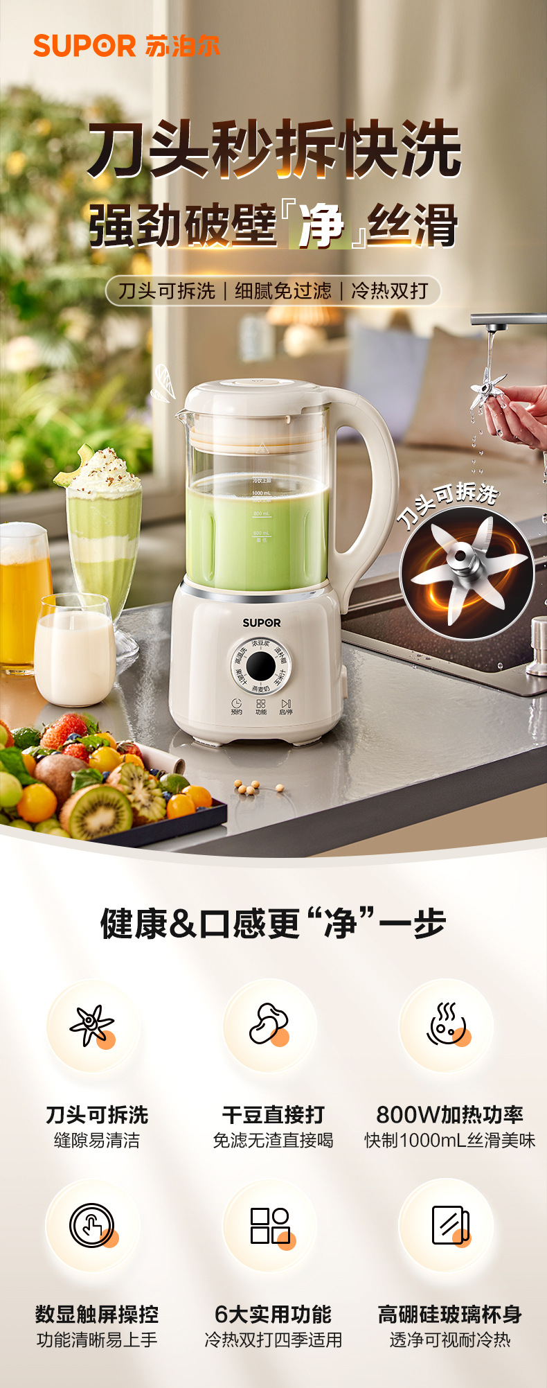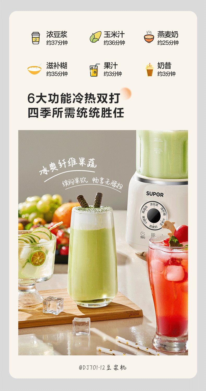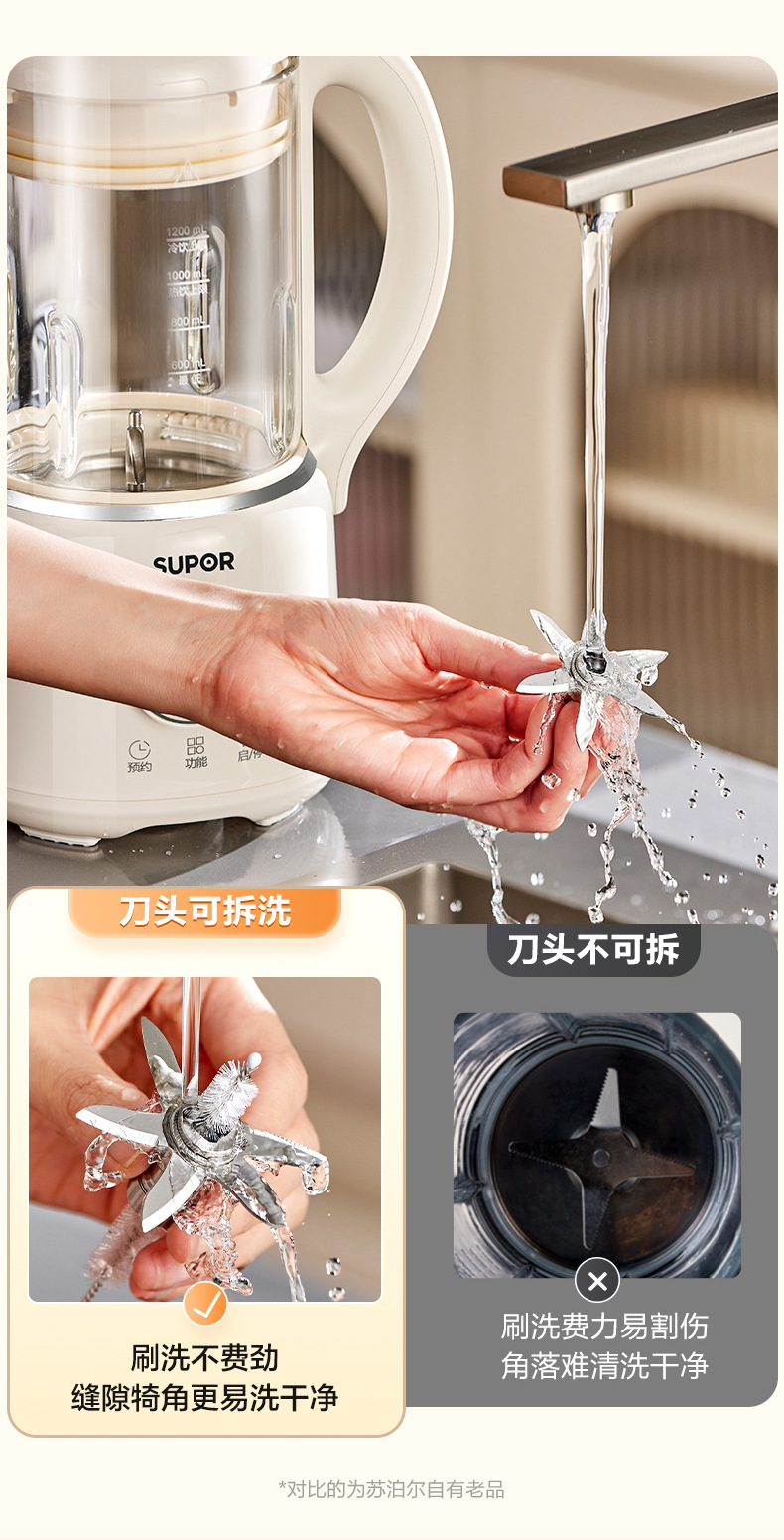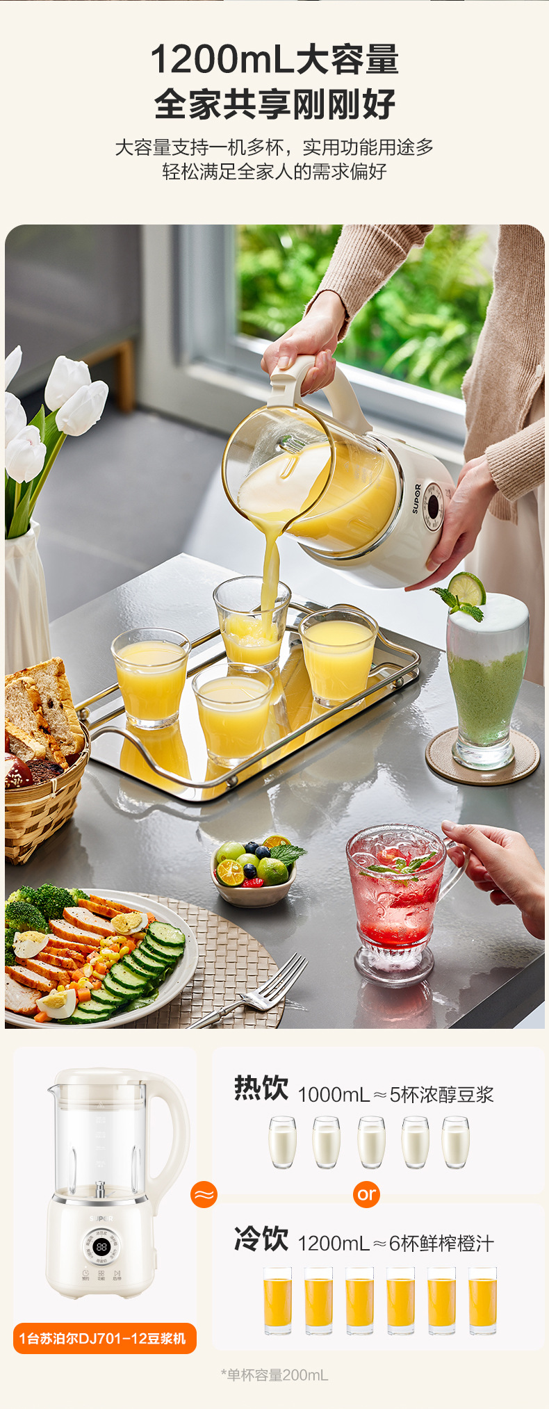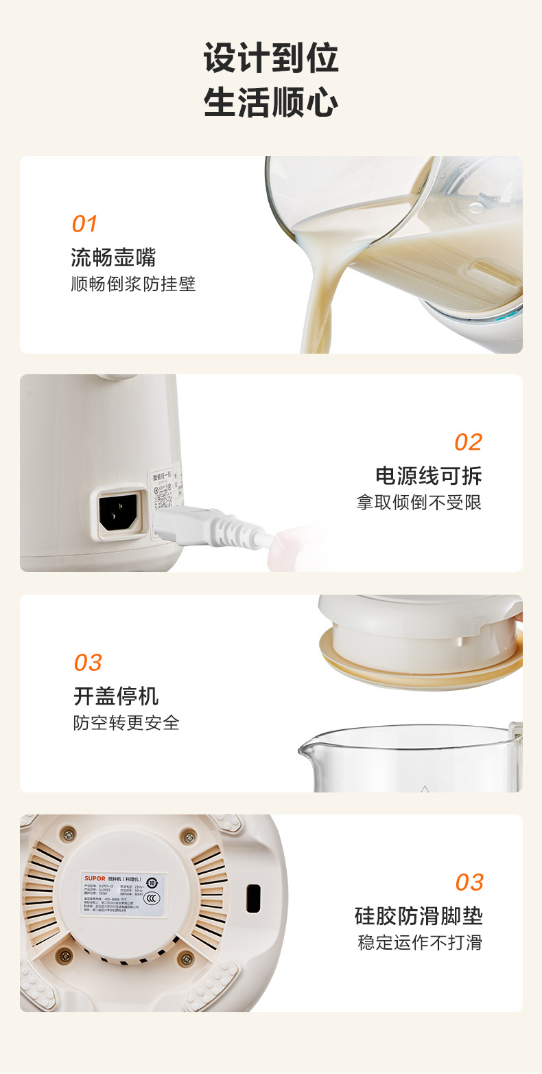Supor 탈착식 및 세척 가능한 벽 파괴 두유 기계 가정용 자동 요리 기계 다기능 필터 프리 및 조리 프리 DJ701-12