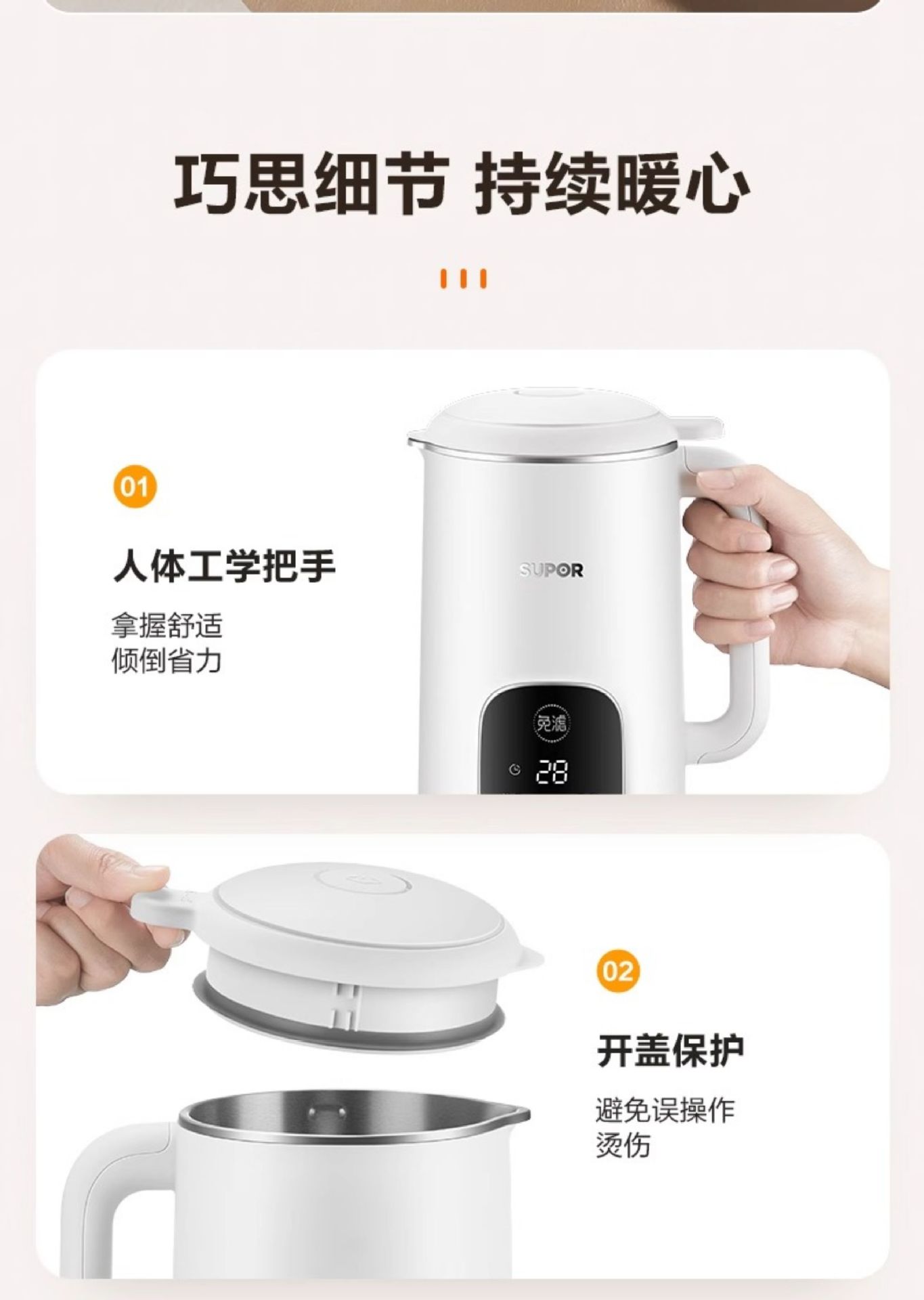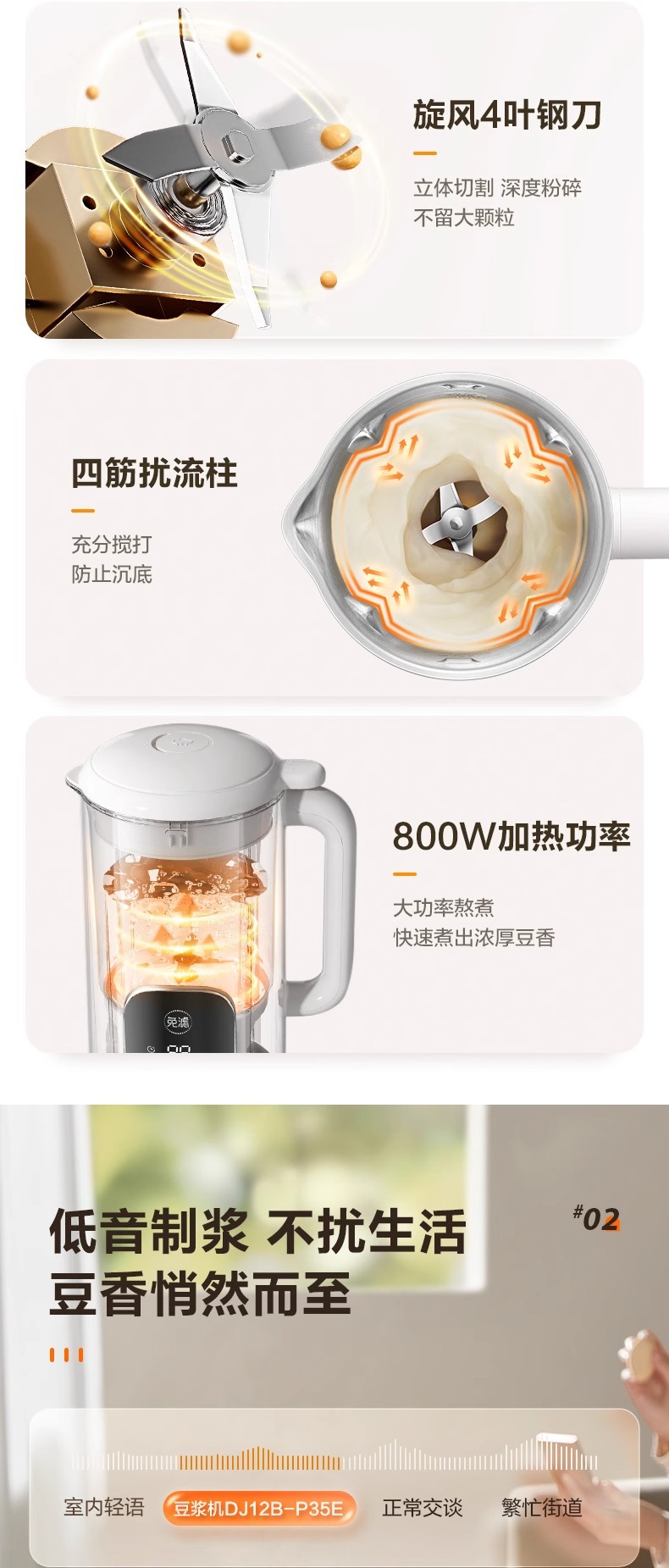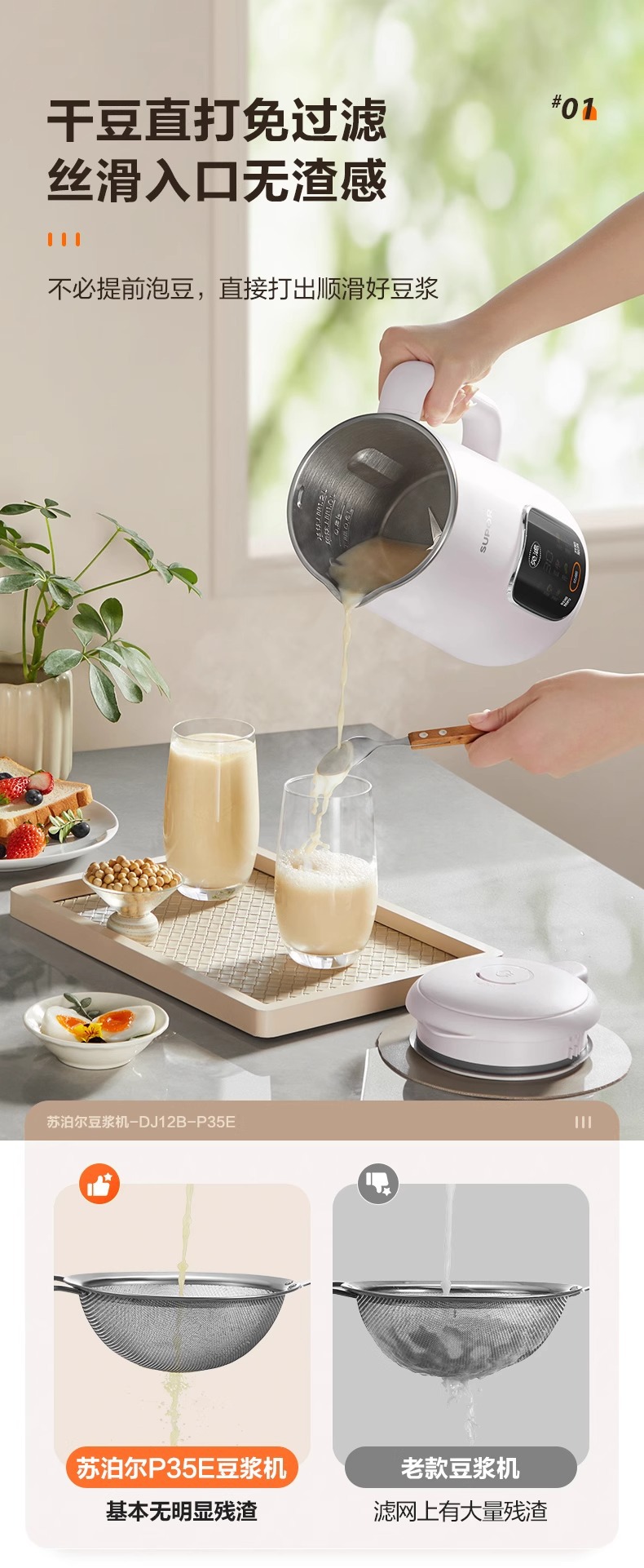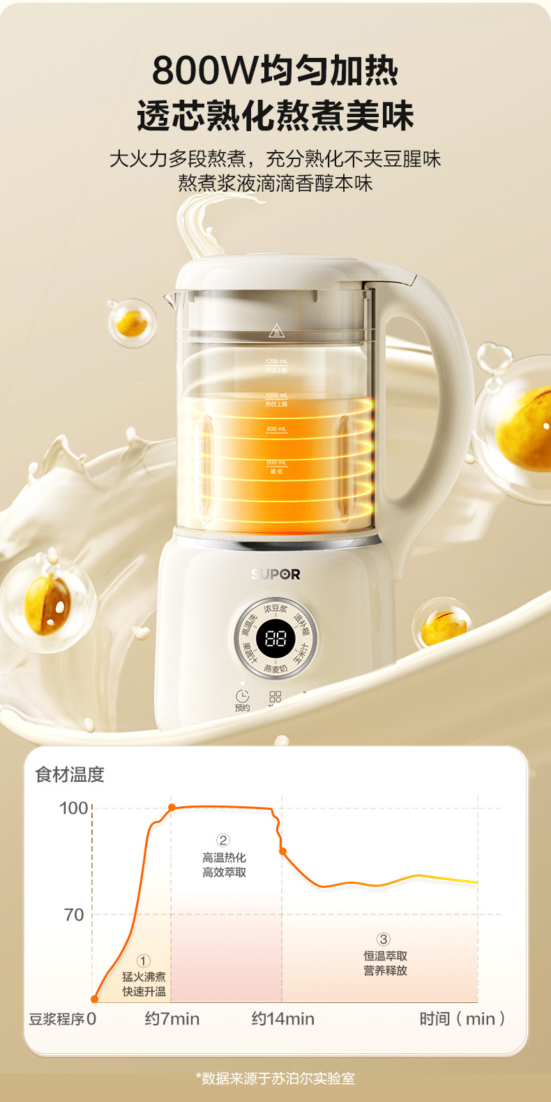 Supor 탈착식 및 세척 가능한 벽 파괴 두유 기계 가정용 자동 요리 기계 다기능 필터 프리 및 조리 프리 DJ701-12